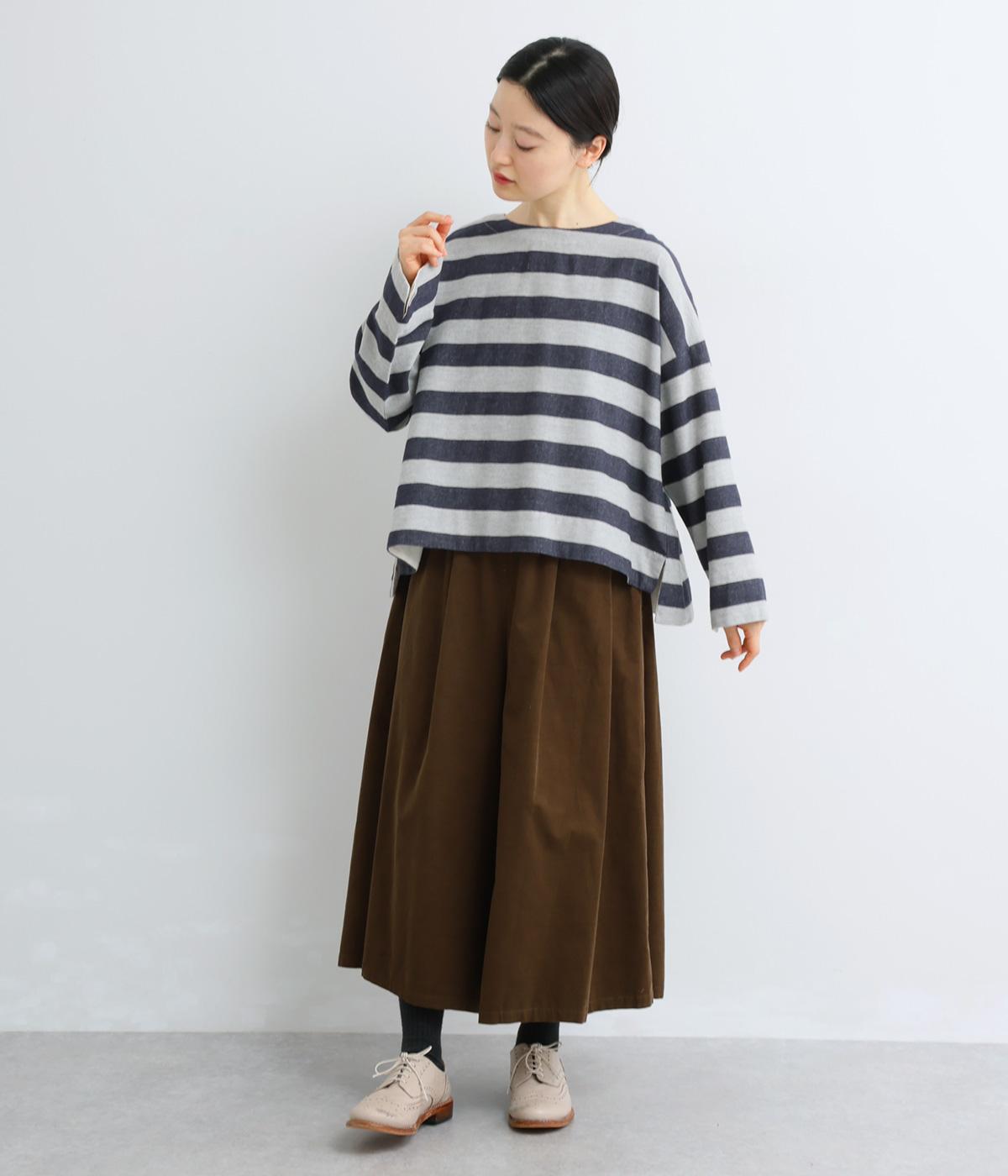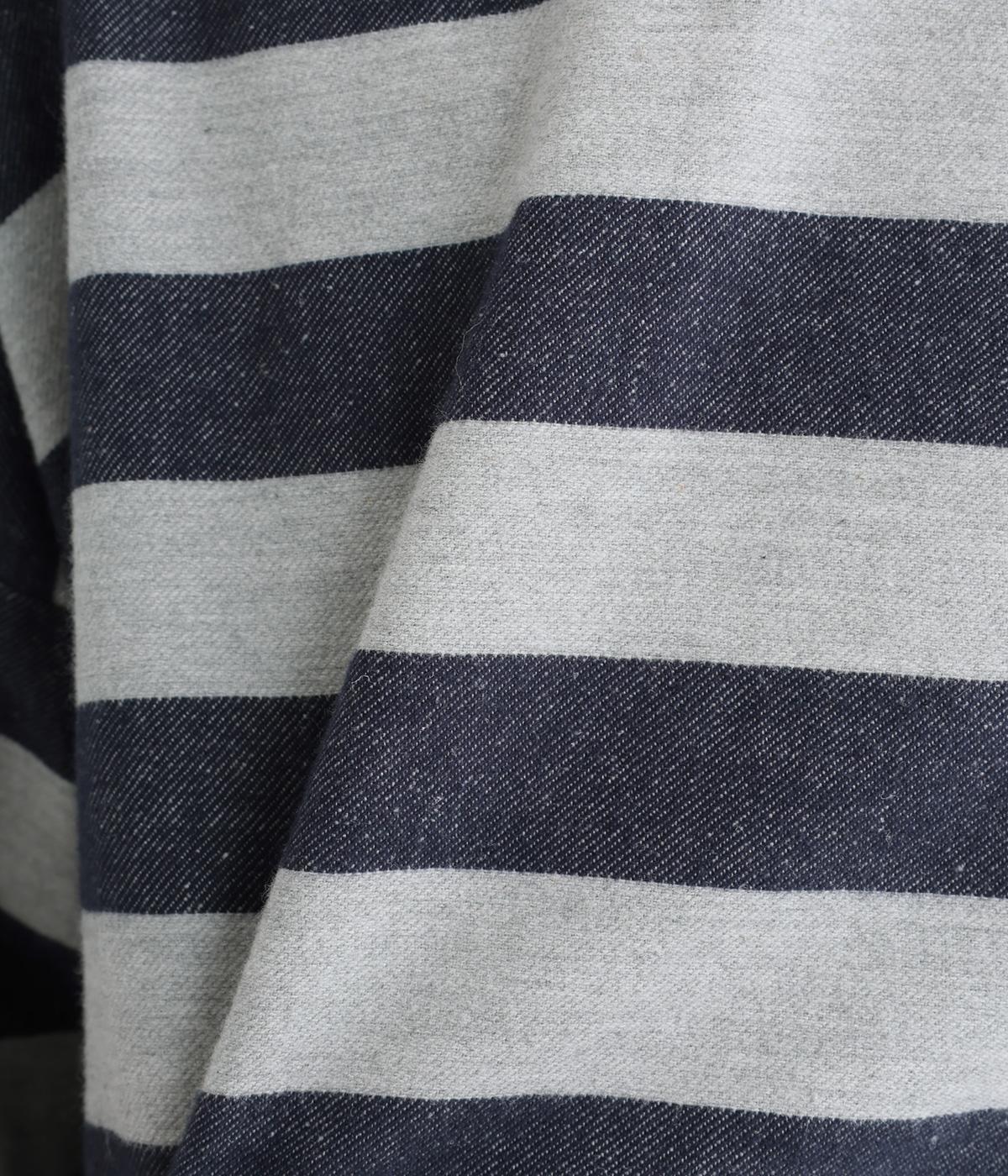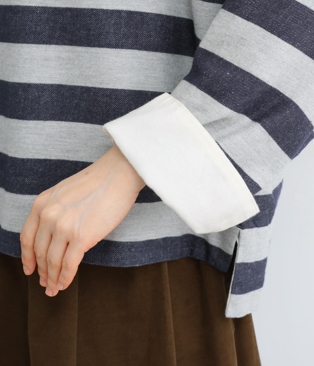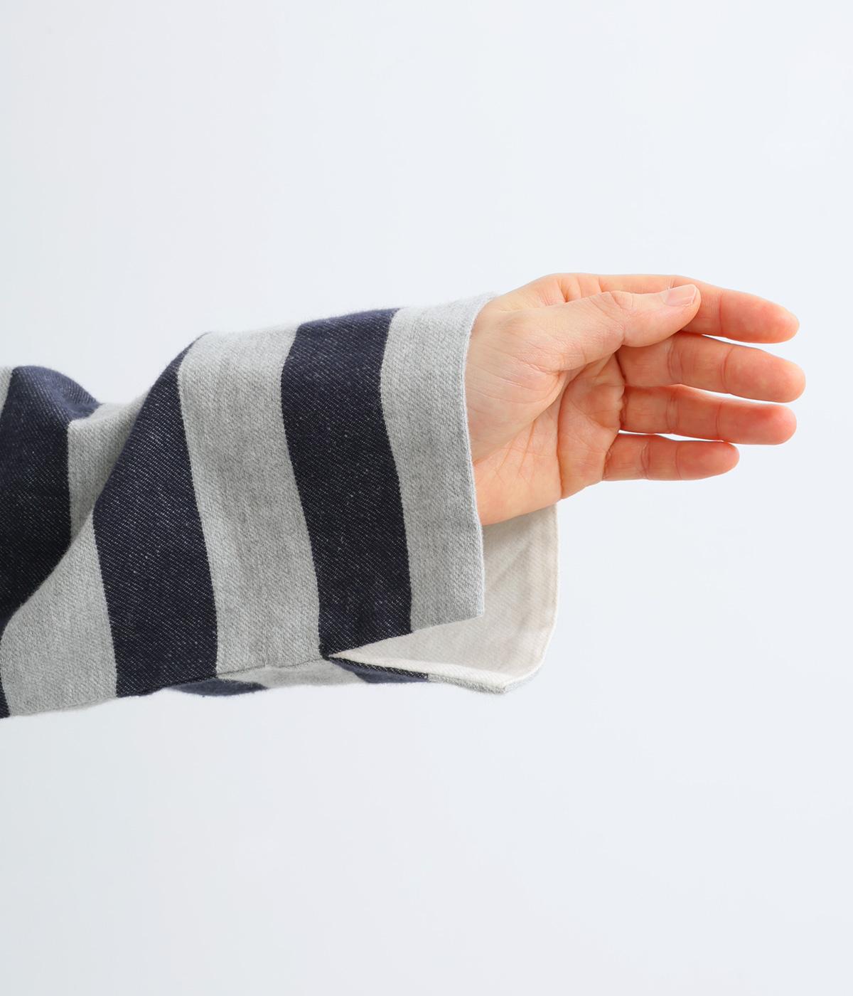 太めボーダーが映えるコットンリネンブラウス。ゆったり身頃に前後差のある着丈とサイドスリットで抜け感を演出。袖や首元は広めで締め付け感がなく、リラックスして着用できます。後ろボタン下のひだが上品なアクセントに。