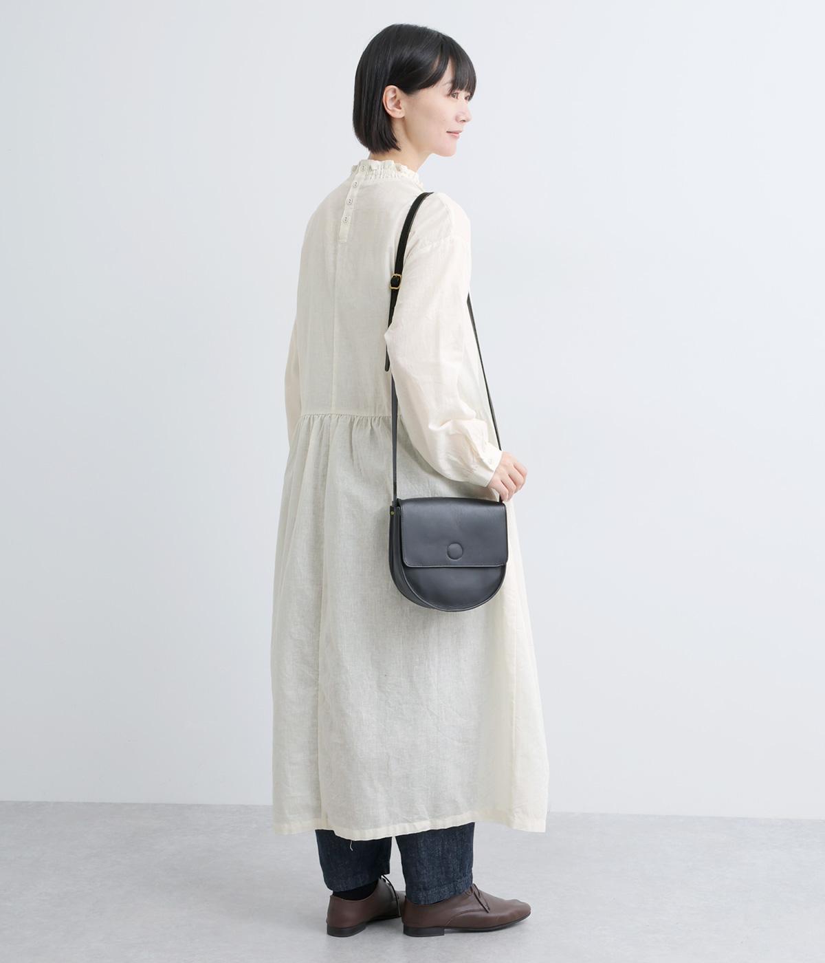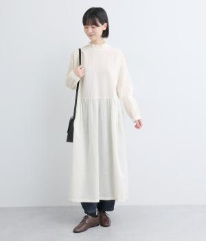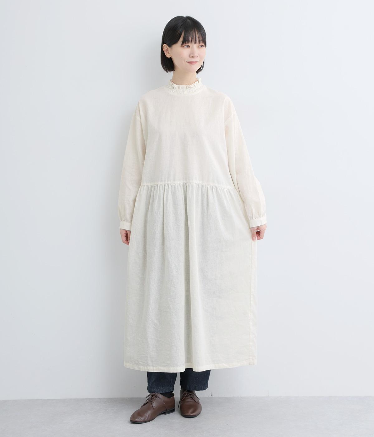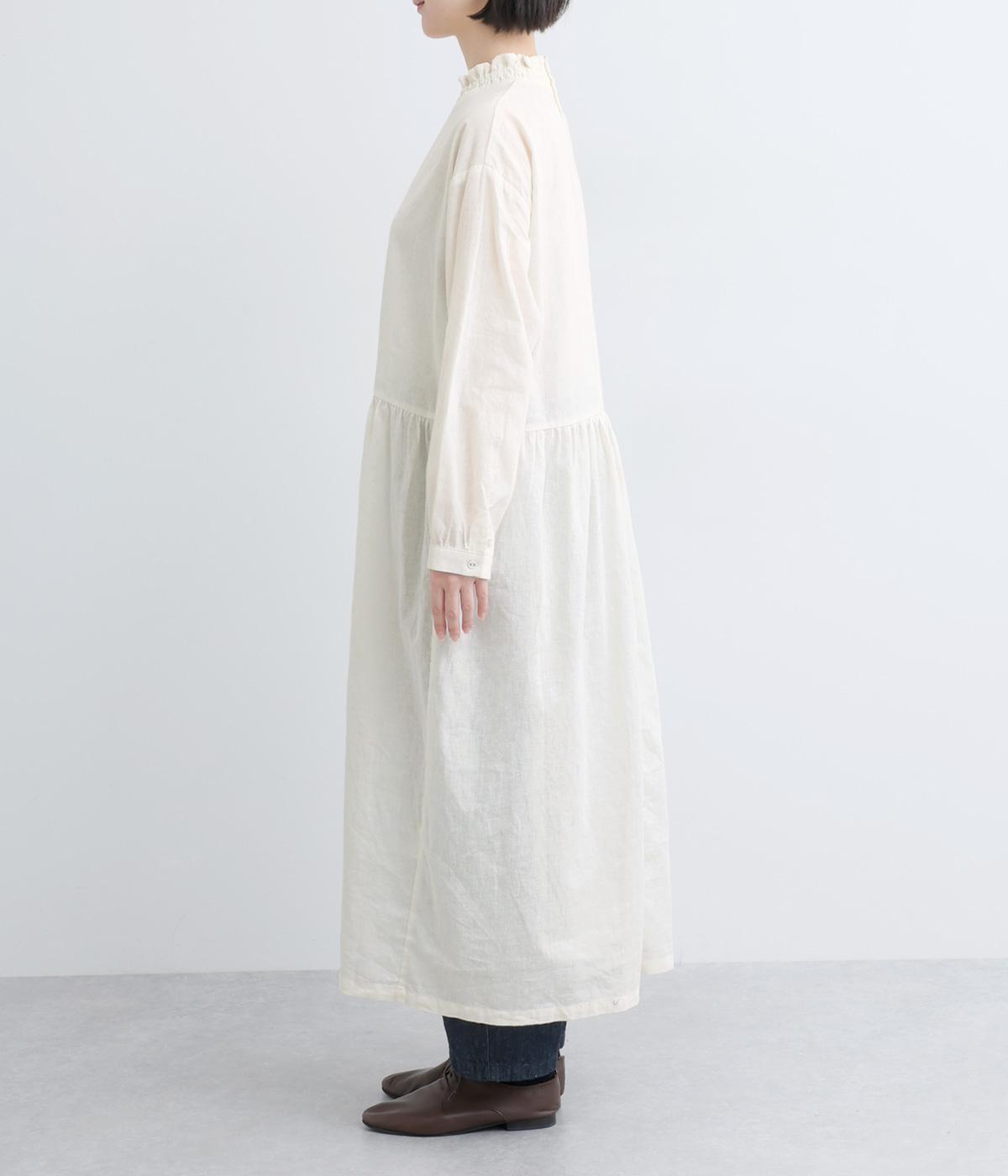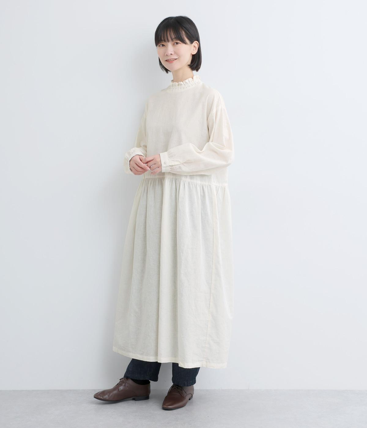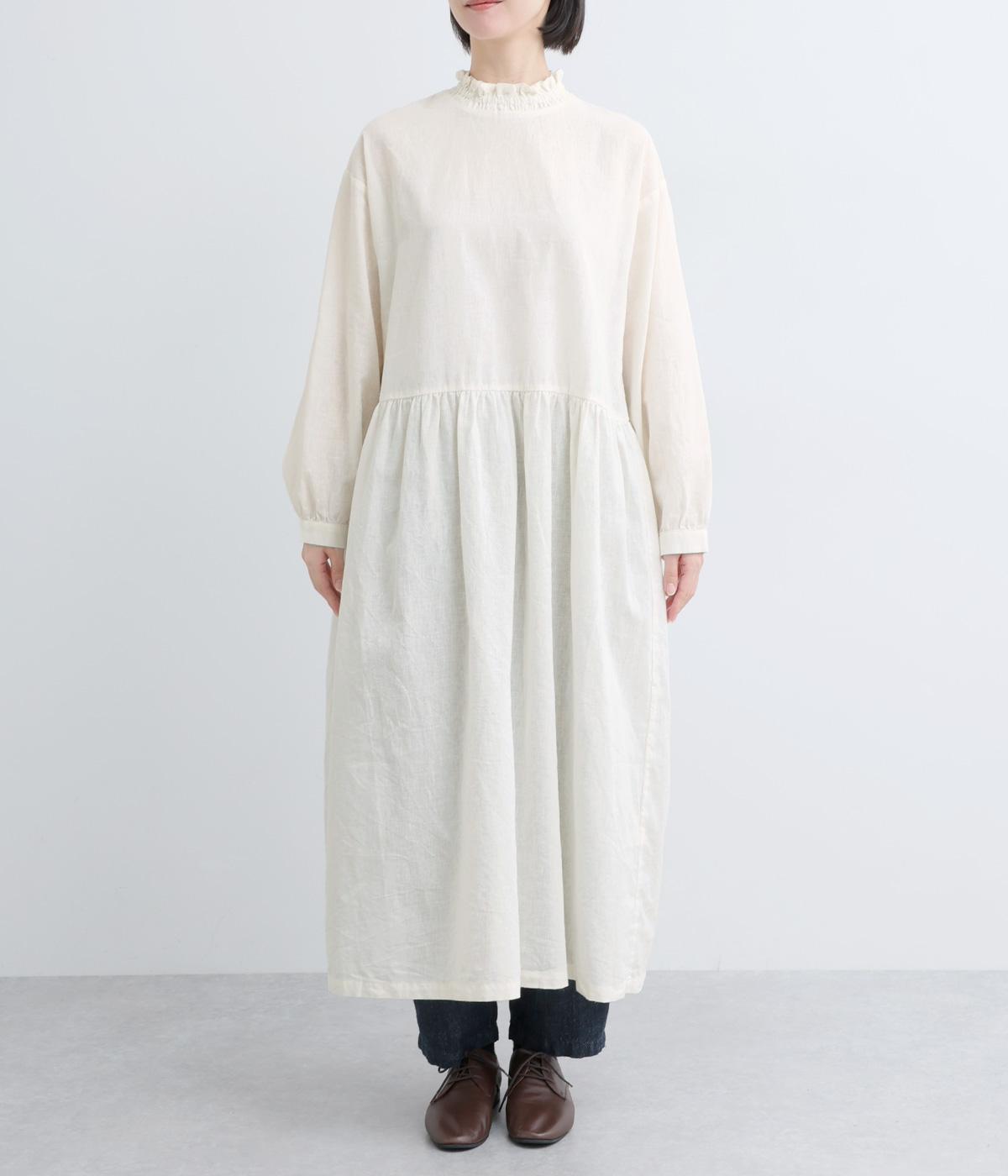 リネンならではのシャリ感とハリのある綿麻生地です。やや薄手で軽やかな生地感なので、パンツとのレイヤードスタイルにもぴったり。上からニットやアウターも着やすくロングシーズンたのしめます。