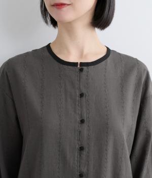 さらりとしたタッチが心地よく、ほのかに起毛させてあたたかみをもたせたコットンリネンを使用。ほどよくふくらみのある薄めの中厚手生地でロングシーズン着まわせます。