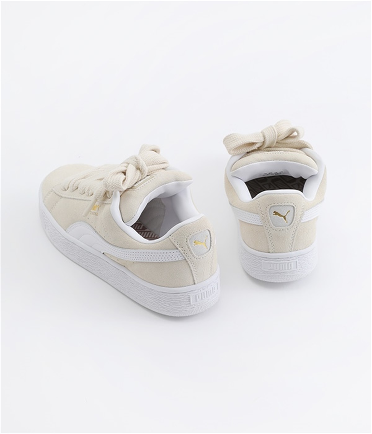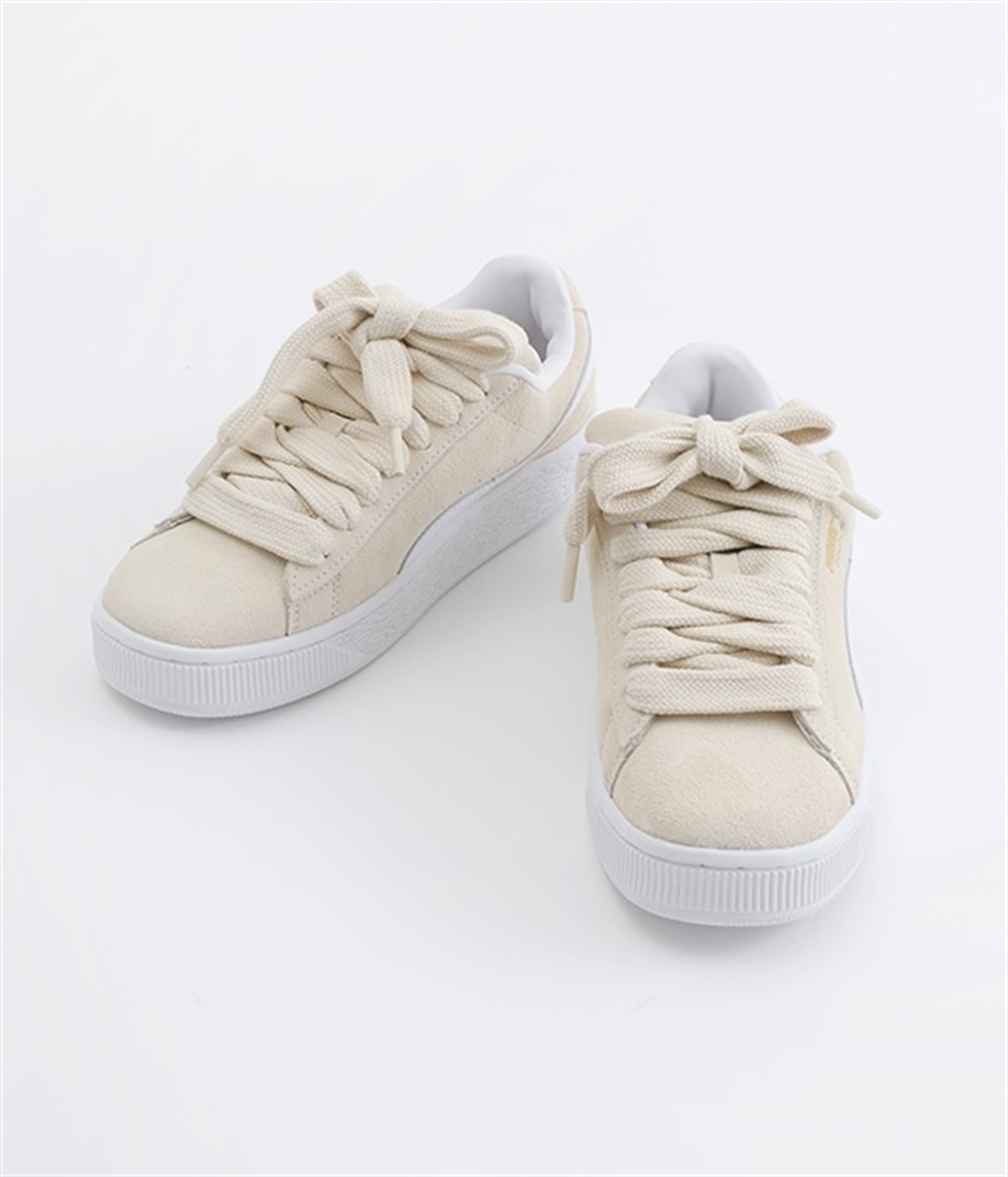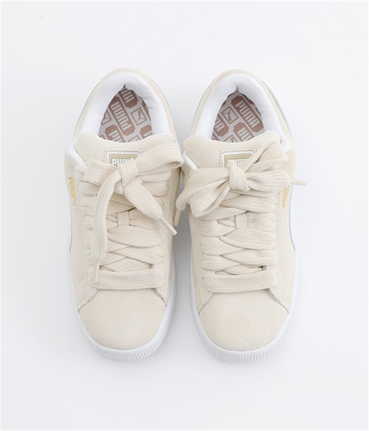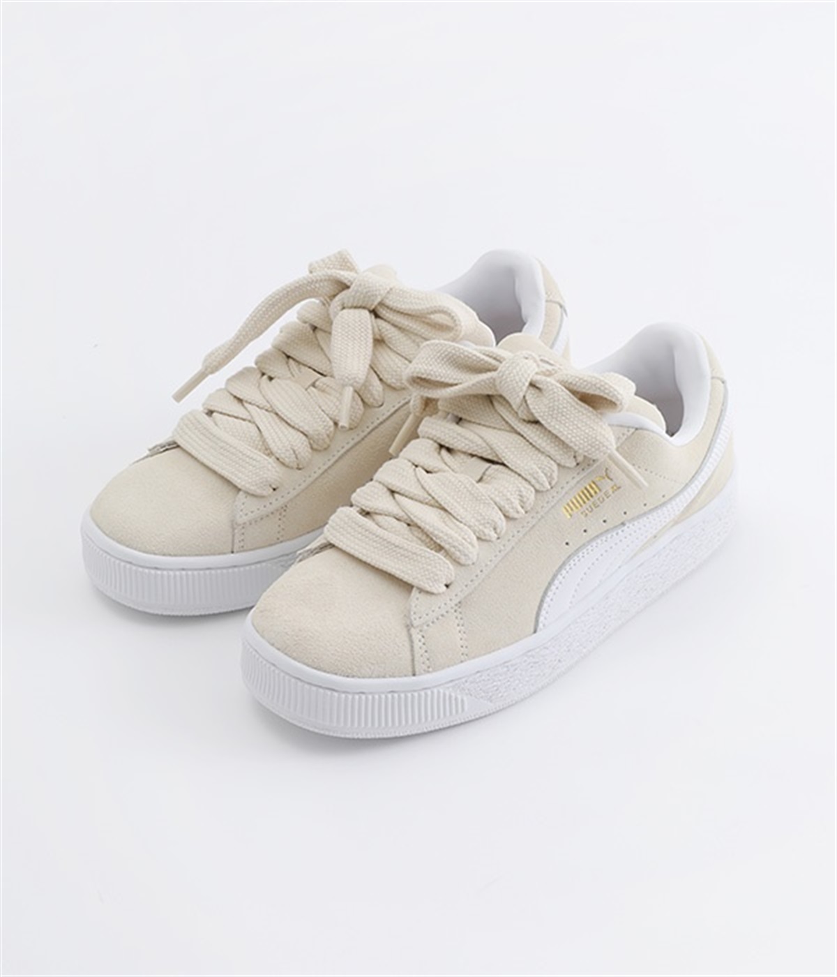 1968年にバスケットボール用シューズとして誕生したスウェードシリーズより、幅広のシューレースを採用したXLスニーカーが登場。ぬくもりを感じるスウェードをアッパーに使用した、どこかやさしい顔つきが魅力です。全体のフォルムも少しぽってりとしていて、足元にさりげなくボリュームを出してくれるデザイン。内部には適度に弾力が備わり、足を包むようにカバーする構造です。アイコニックなプーマキャットやロゴもちりばめて、ブランドの存在感を常に味わえる一足に仕上げました。