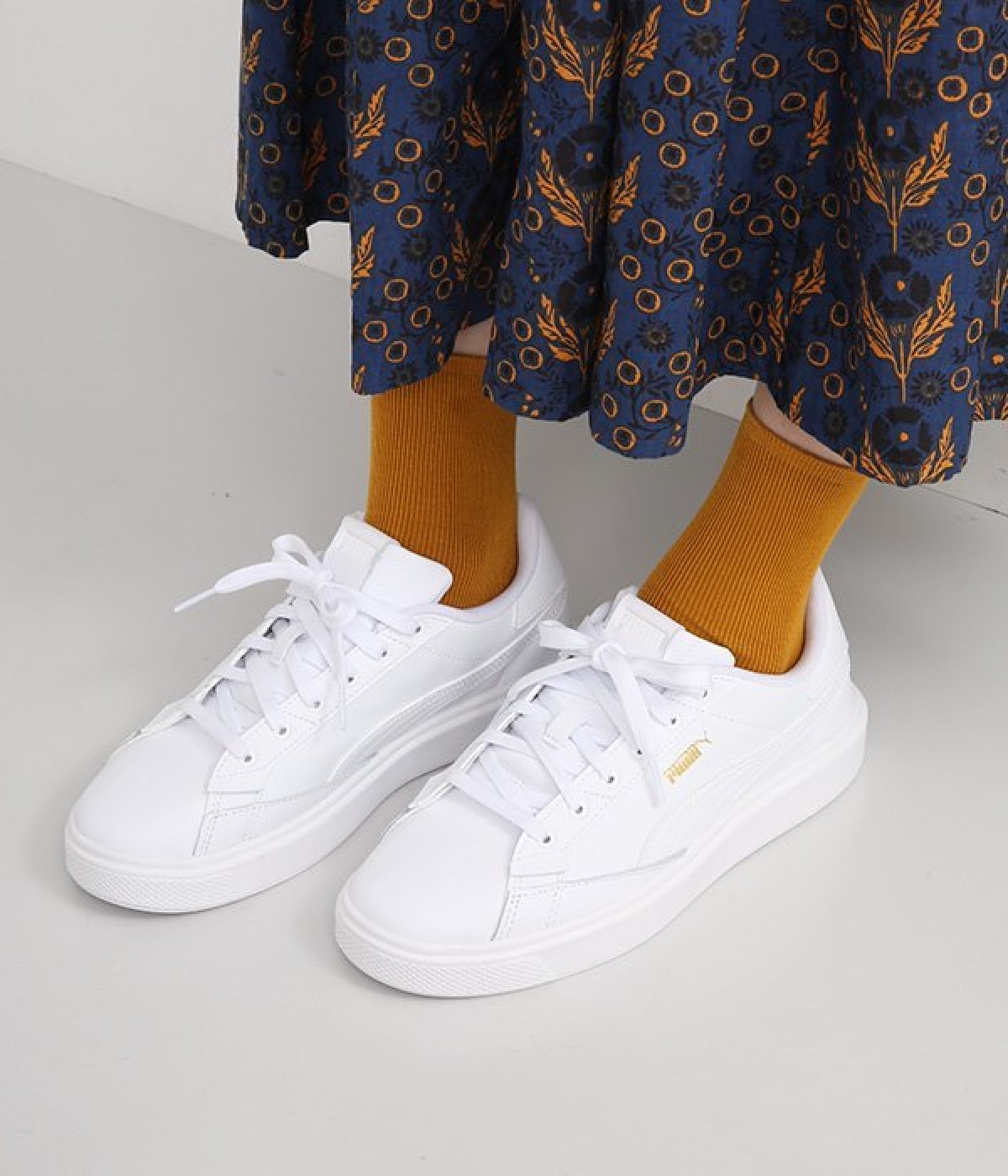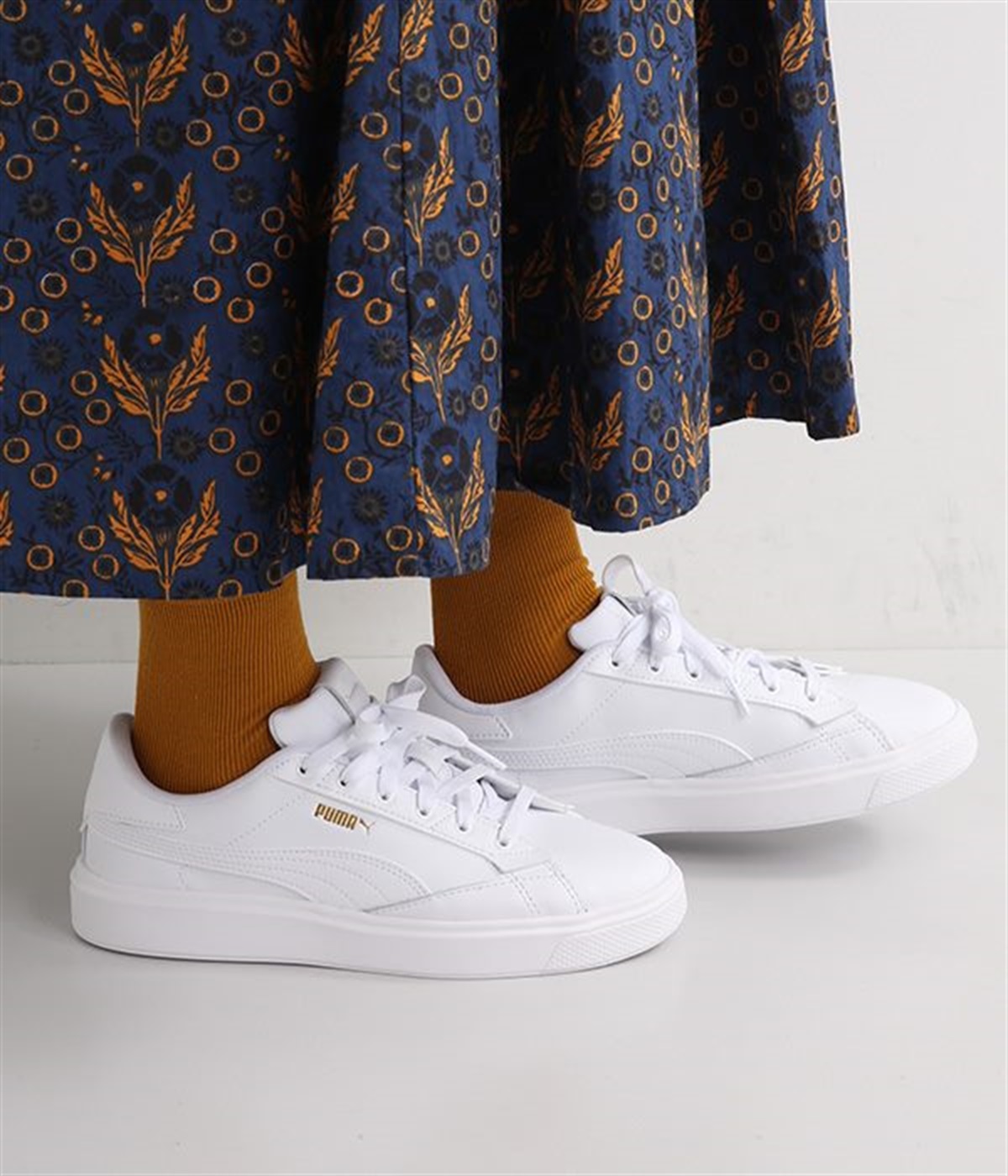 クラシックデザインながら新鮮さも漂う、プーマのライラレザースニーカーです。こだわりのオールホワイトが上品さを演出します。控えめなメタリックプーマロゴがホワイトに映える、特別な一足。無駄をそぎ落としシンプルにまとめたデザインとシルエットは様々なコーディネートに合わせやすく、汎用性の高いアイテムです。