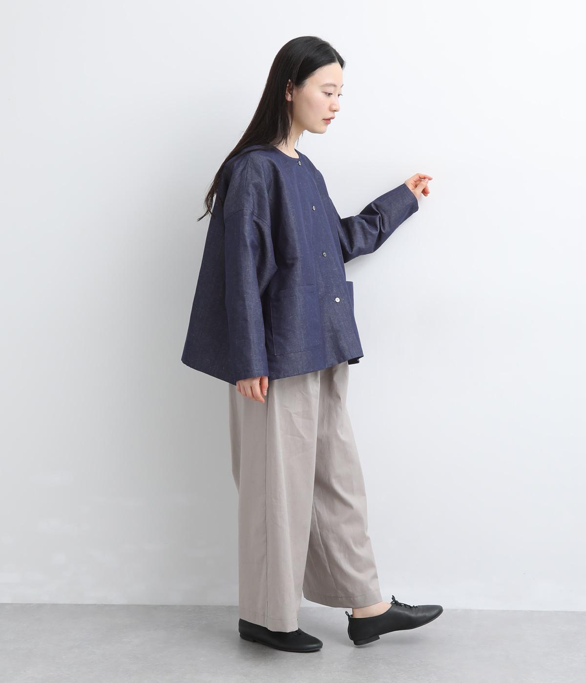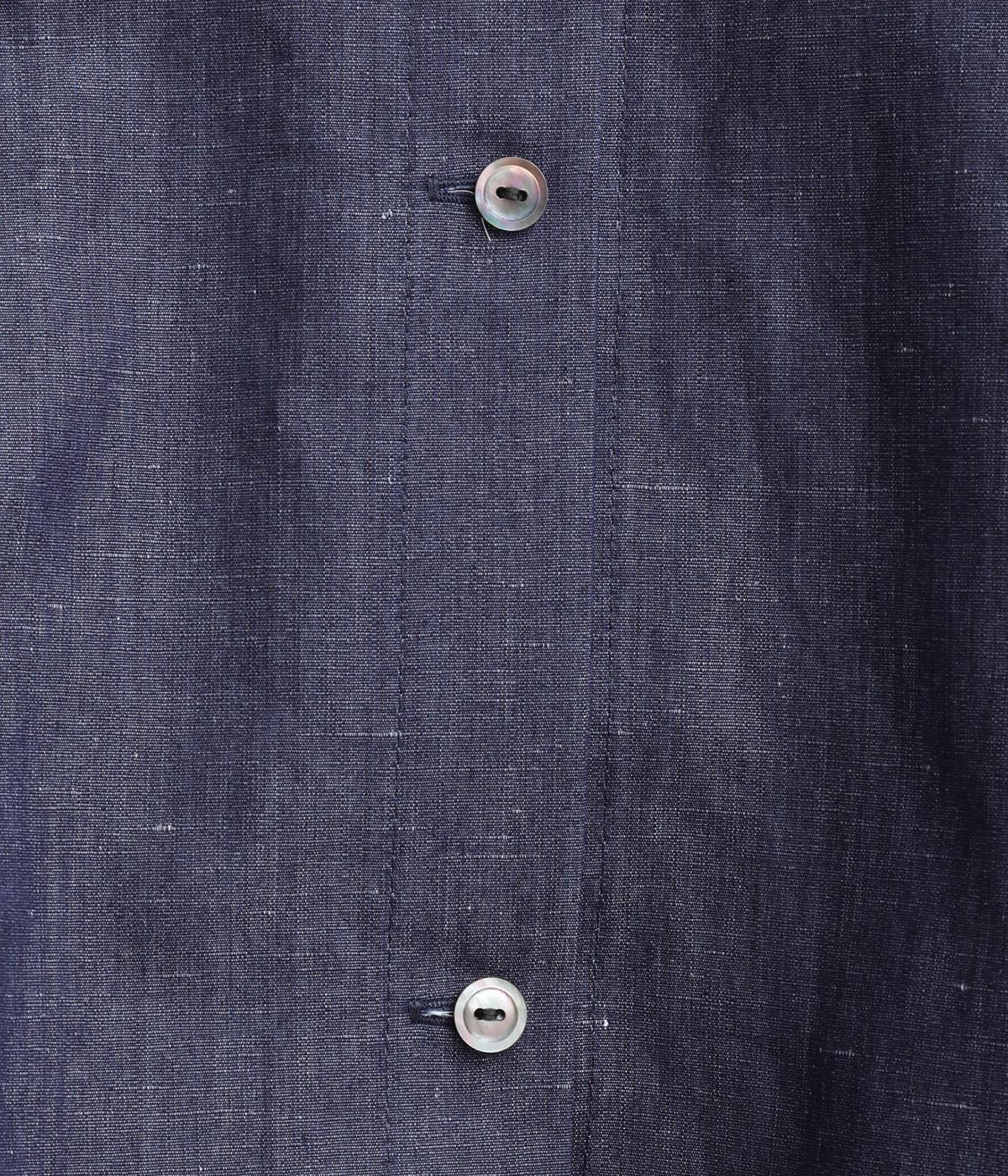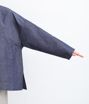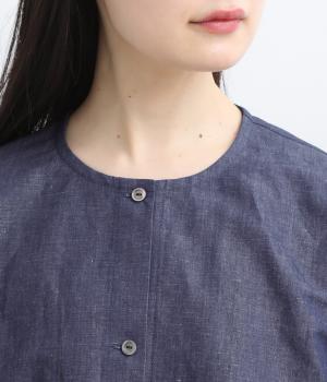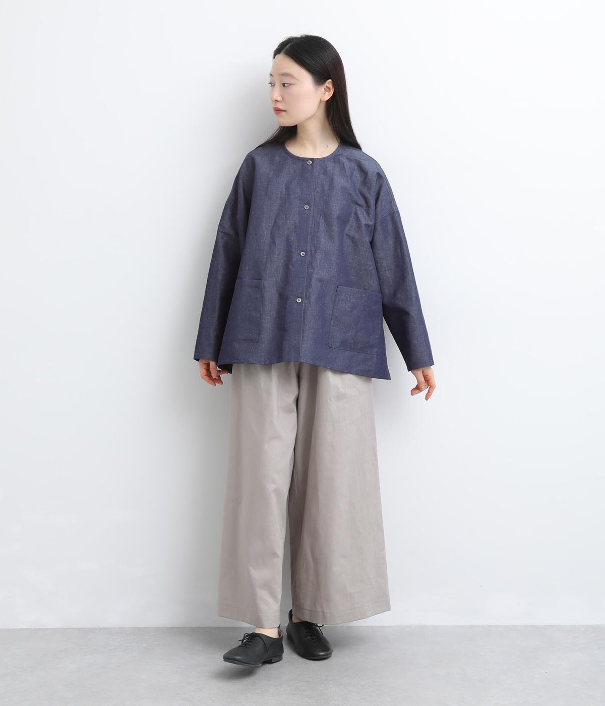 コットンとリネンを織り合わせたダンガリー生地は、ふっくらとしたほどよい厚みがありながら、軽やかな着心地が魅力。表面はさらりとした質感で、肌にやさしくなじむやわらかさも兼ね備えています。