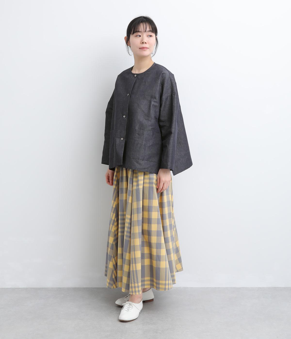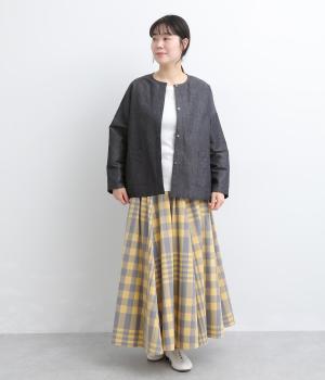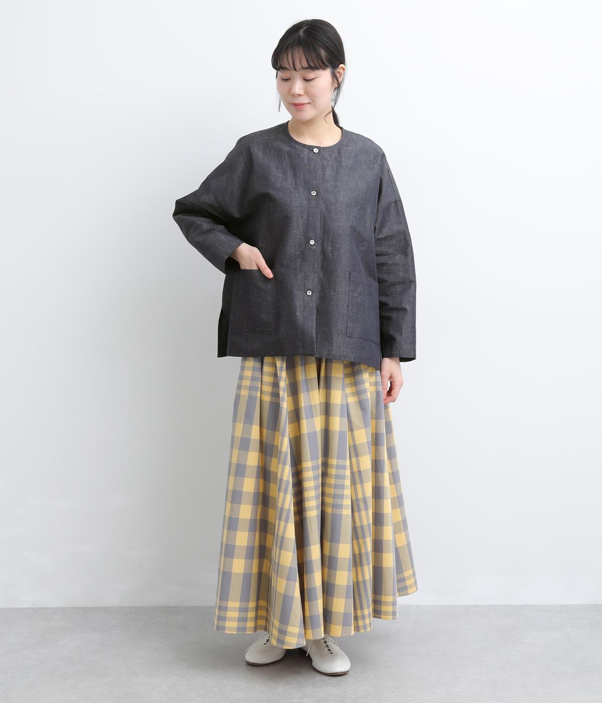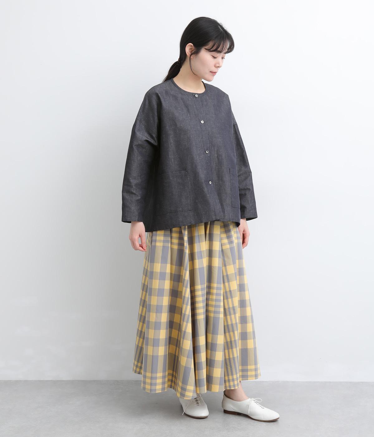 コットンとリネンを織り合わせたダンガリー生地は、ふっくらとしたほどよい厚みがありながら、軽やかな着心地が魅力。表面はさらりとした質感で、肌にやさしくなじむやわらかさも兼ね備えています。