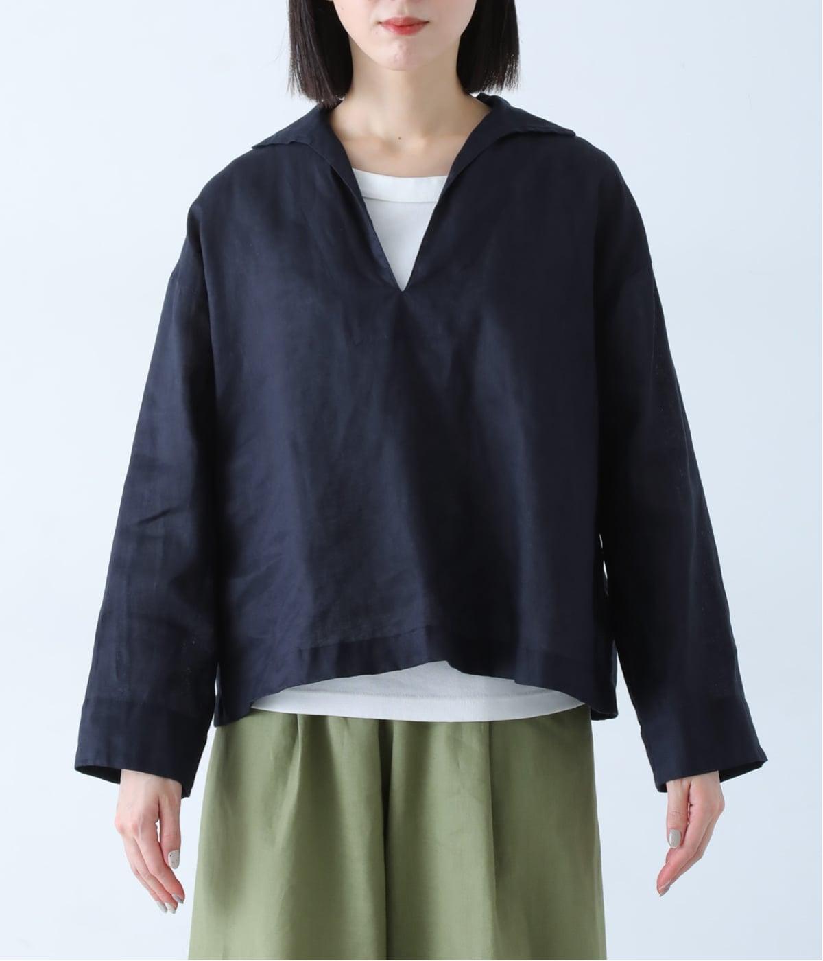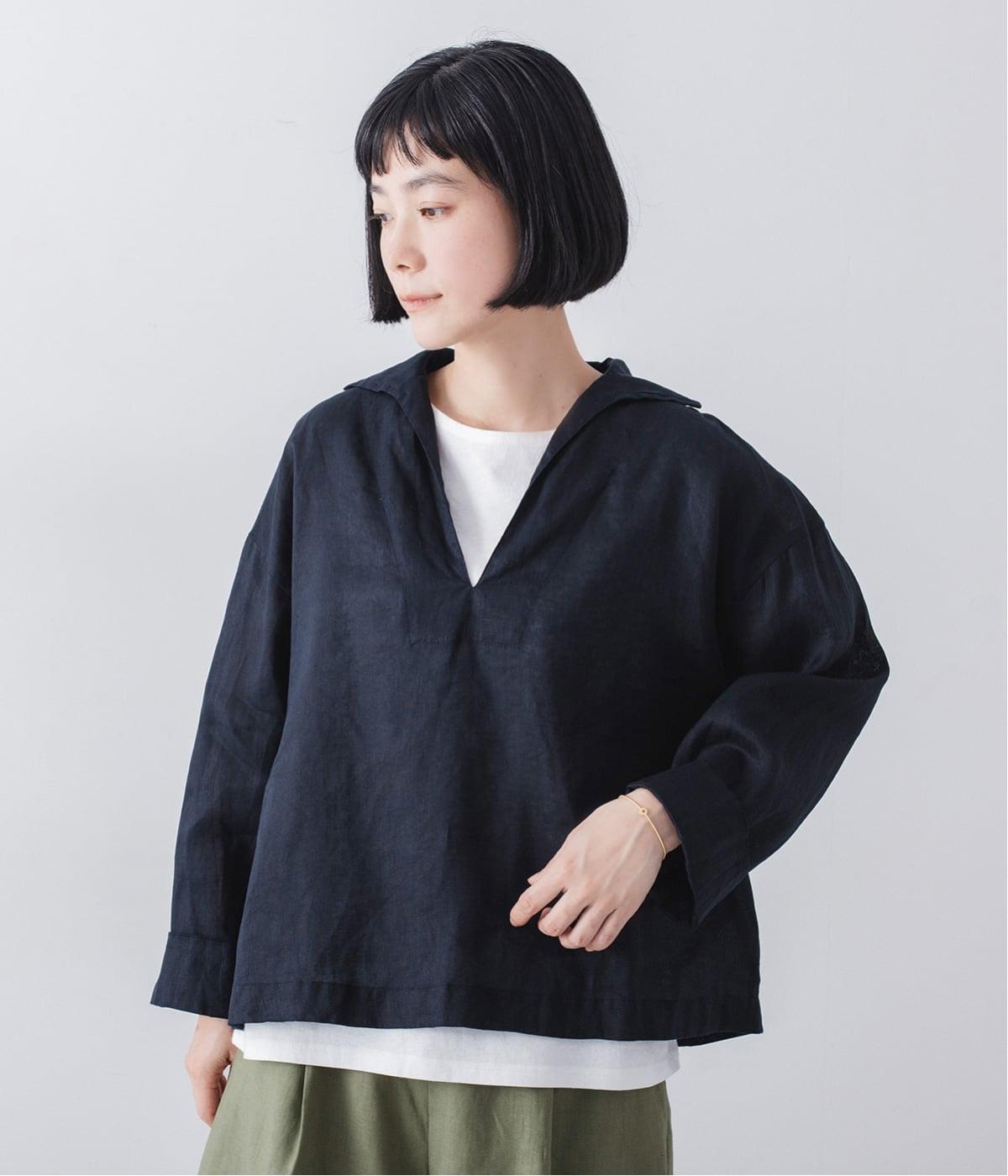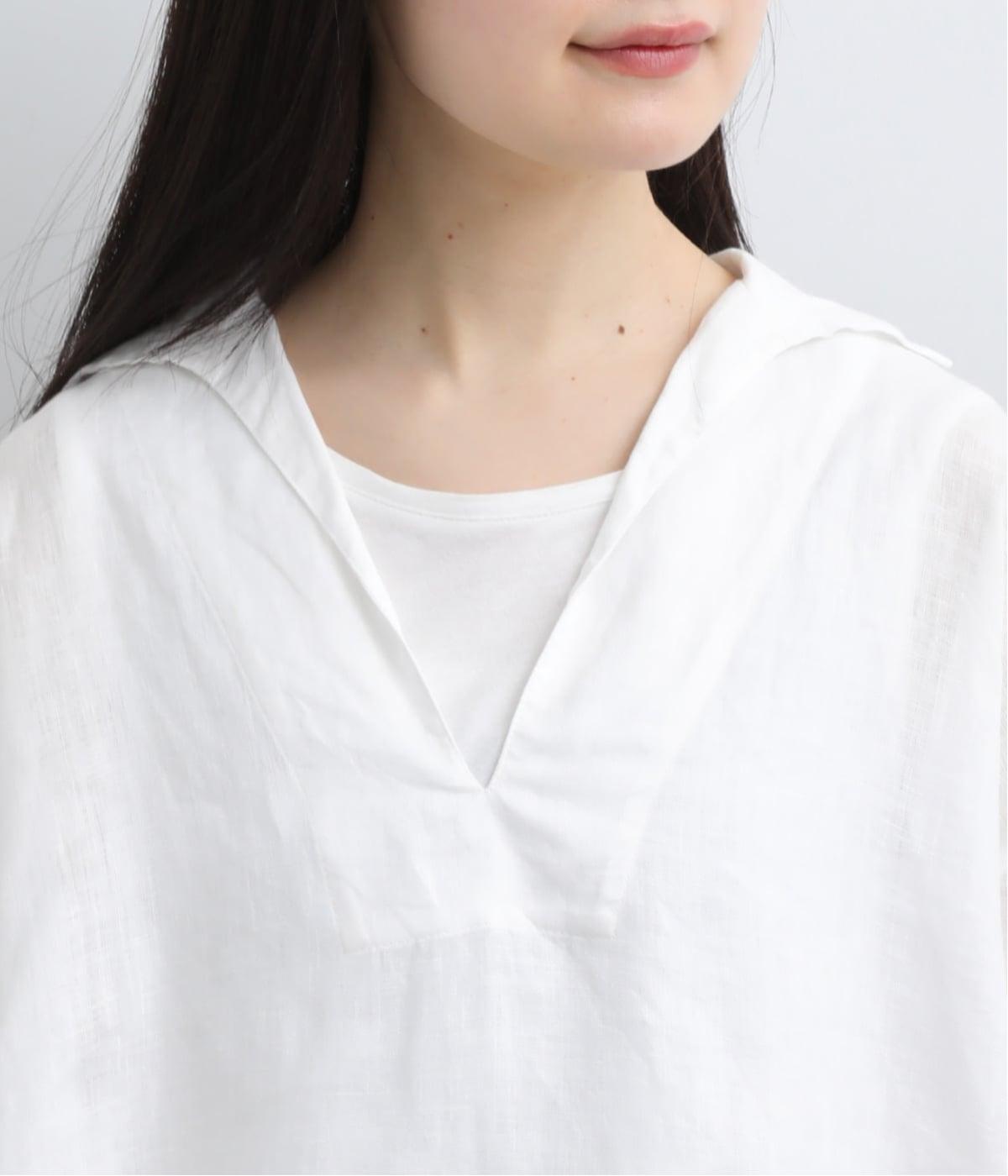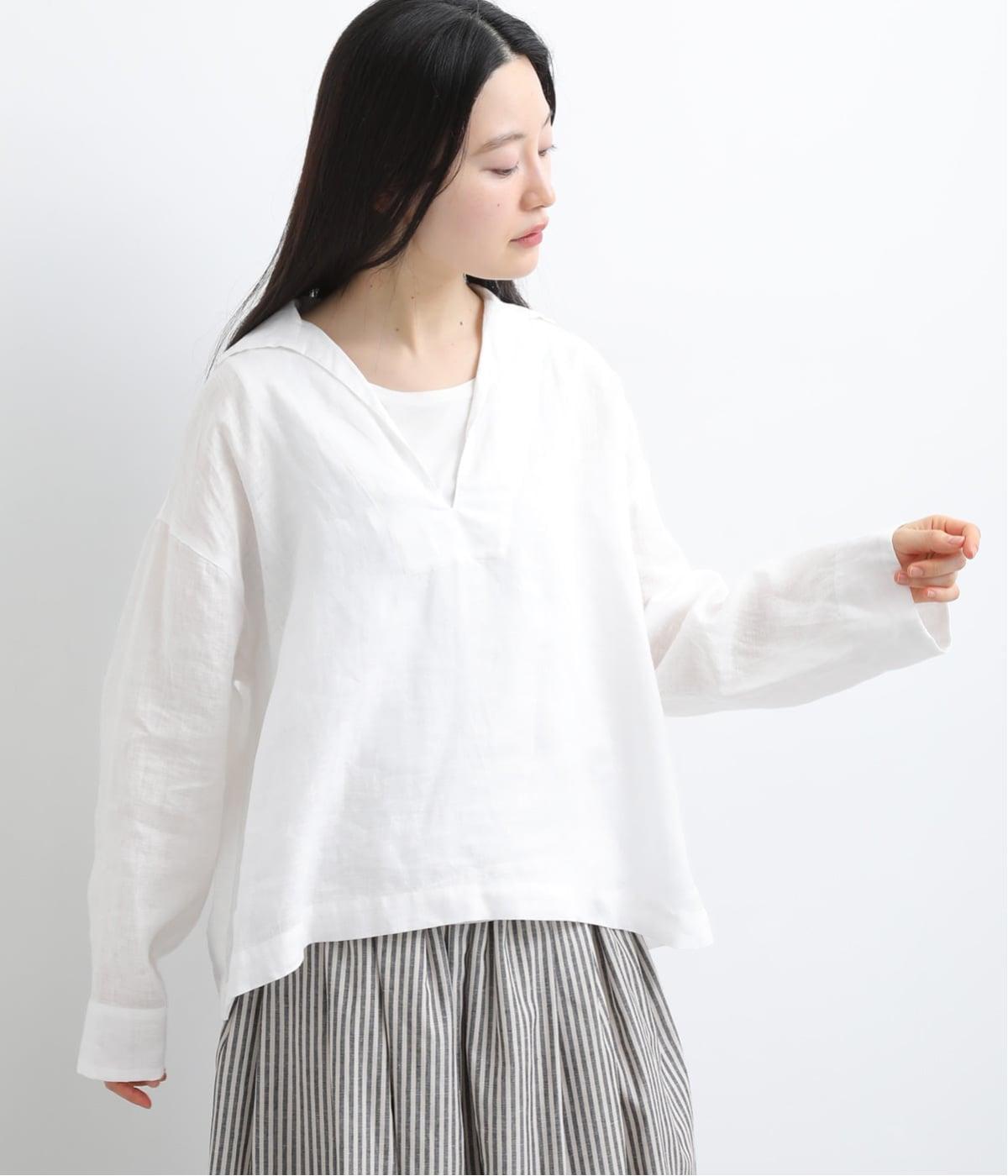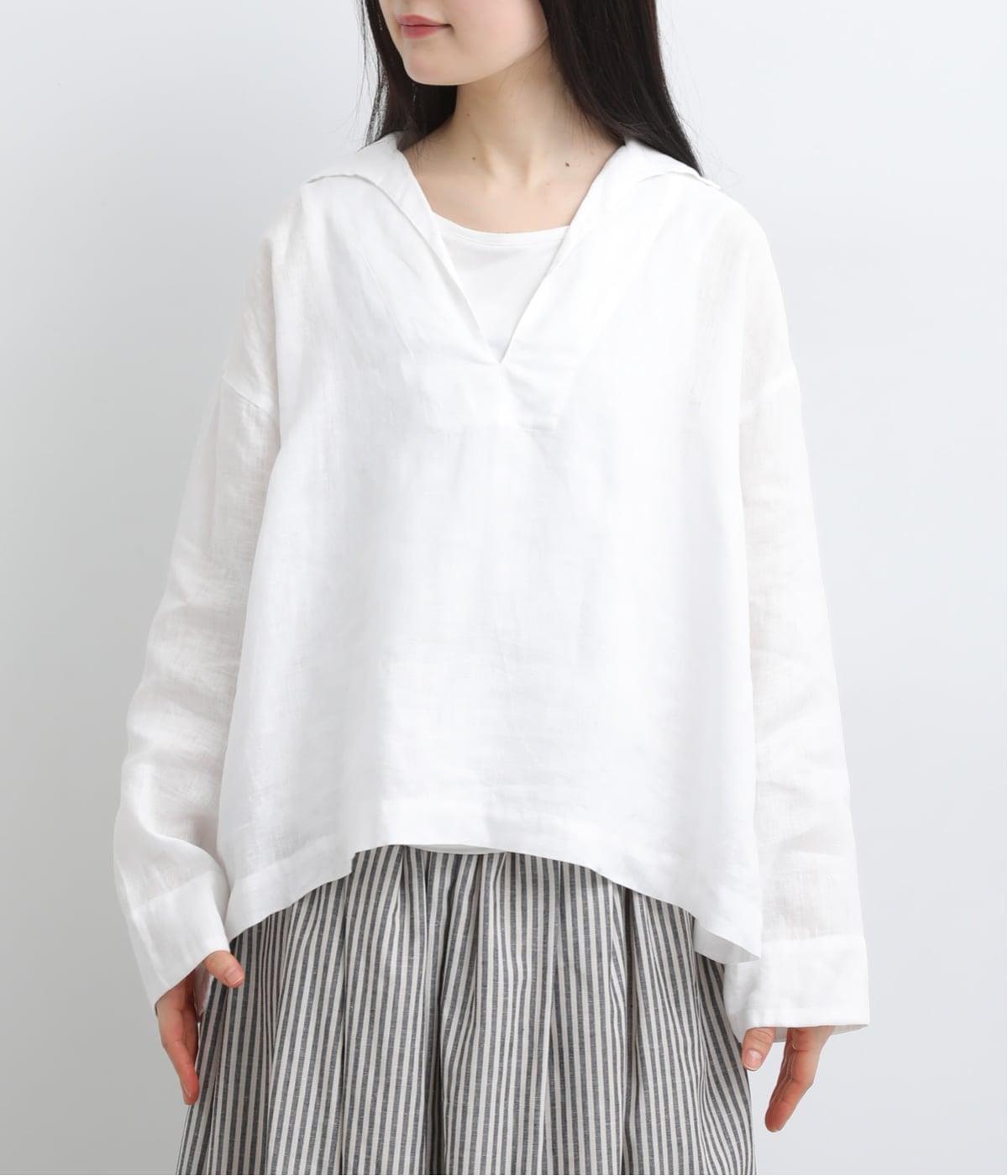 ほどよいハリとしなやかさをあわせ持つリネン生地で仕立てた、セーラーカラーブラウス。