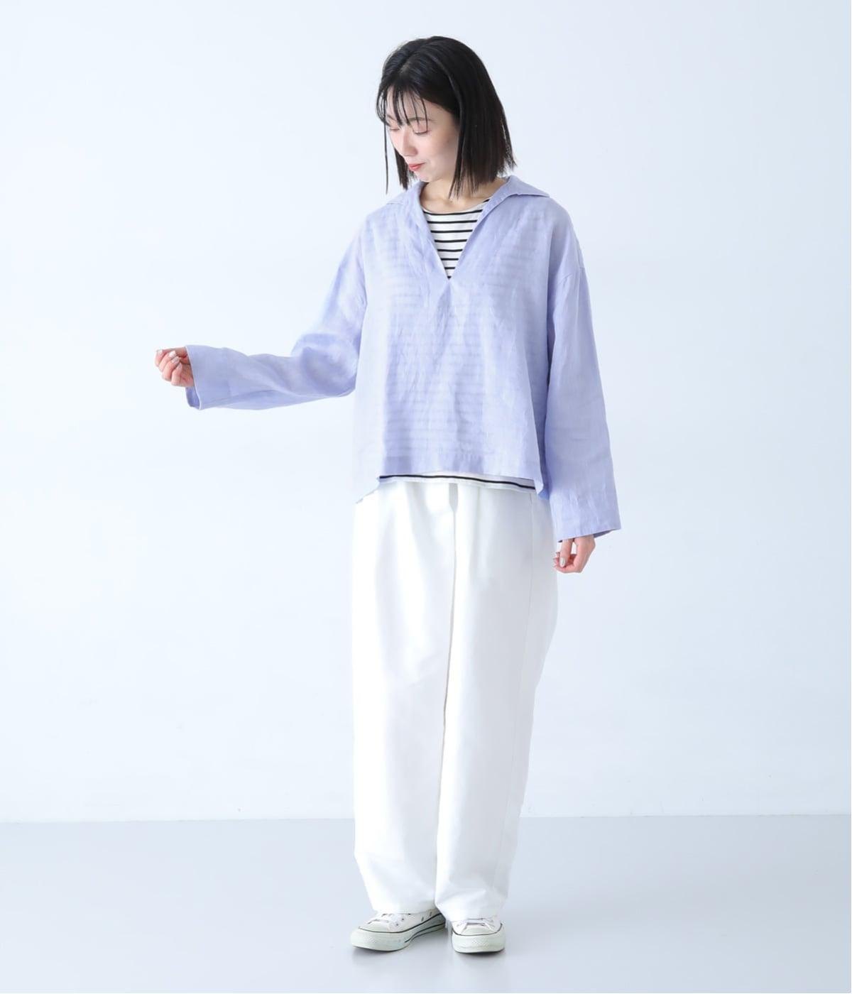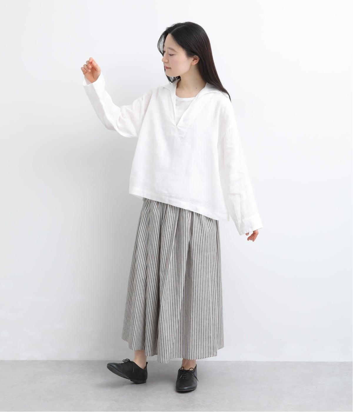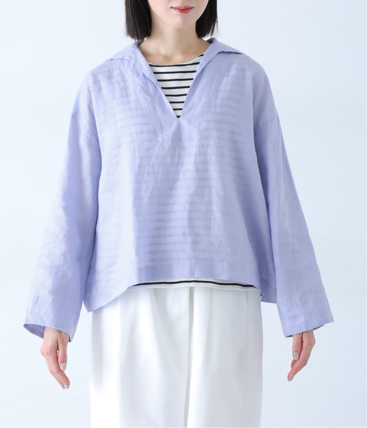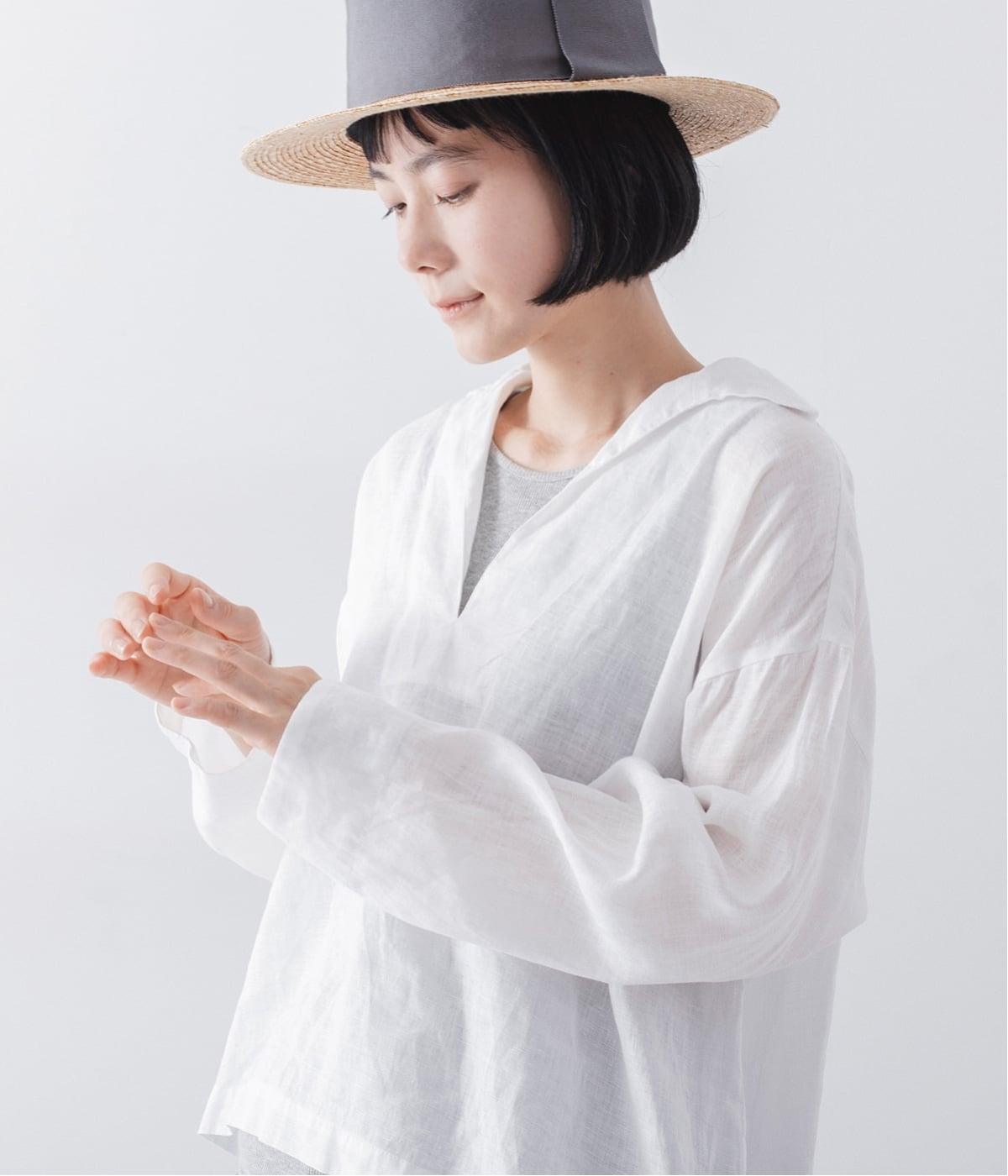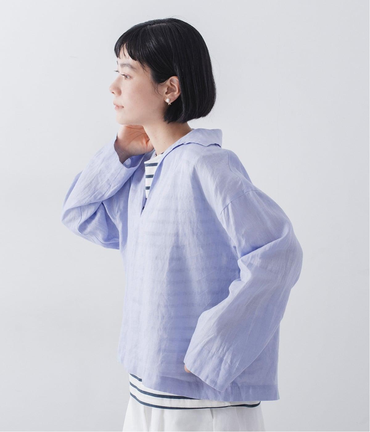 ほどよいハリとしなやかさをあわせ持つリネン生地で仕立てた、セーラーカラーブラウス。