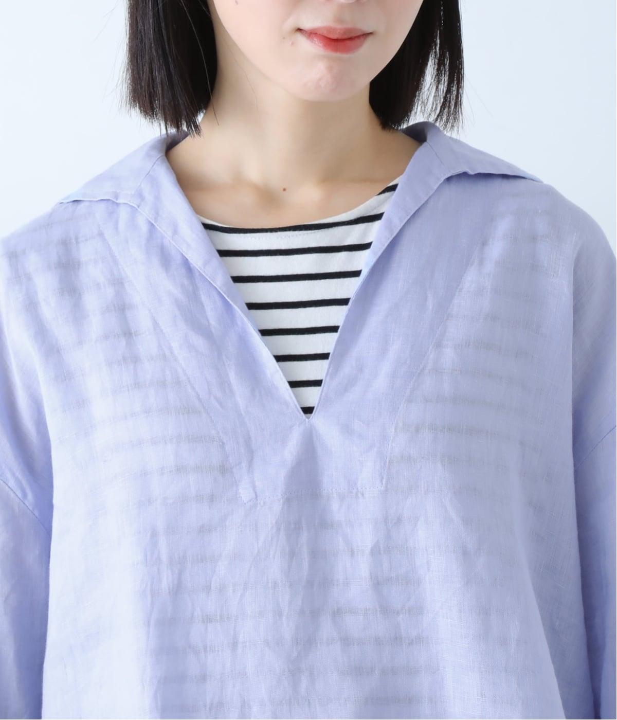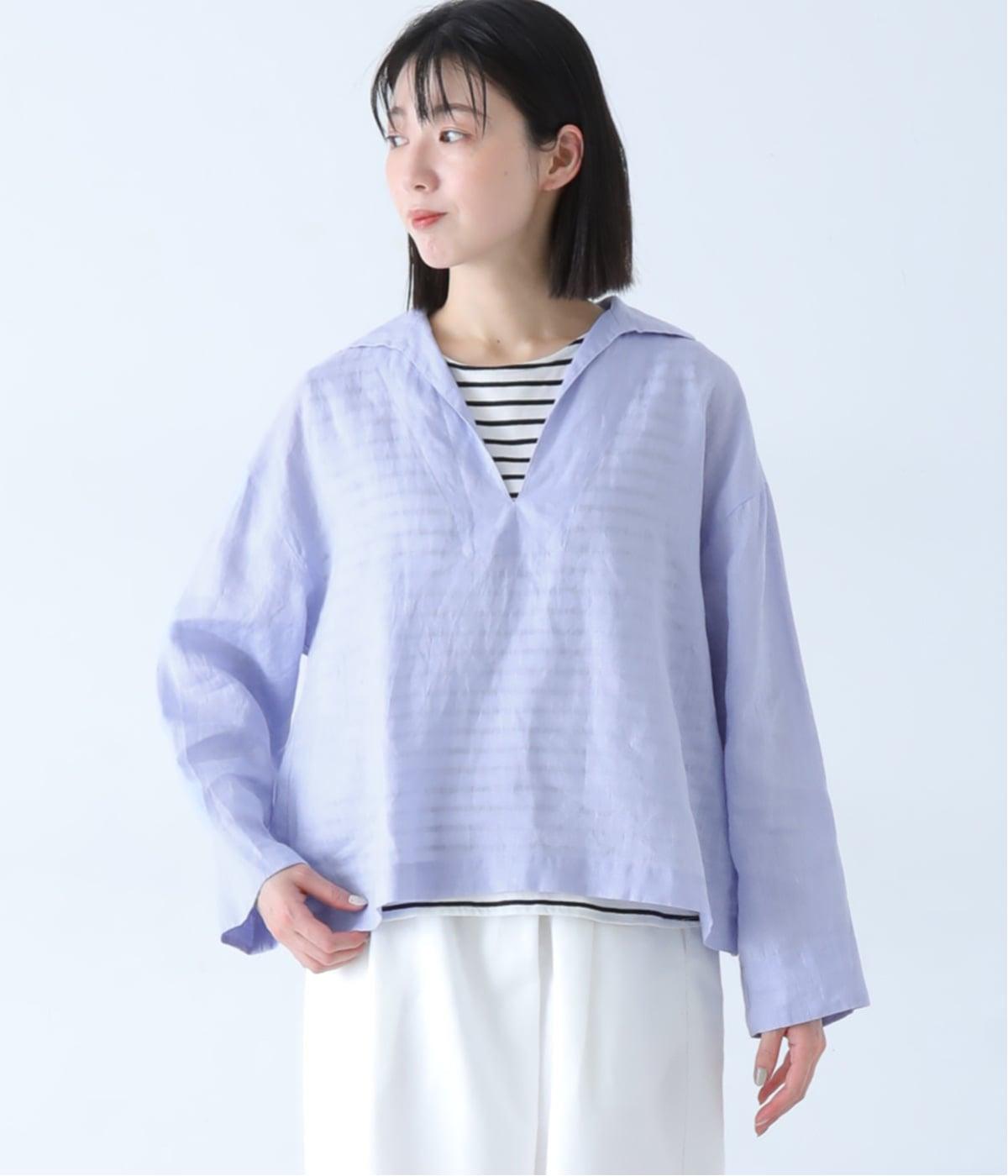 ほんのりと透け感のある軽やかなリネン生地で、暖かな季節にも心地よく着られる一枚。