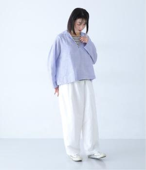 長すぎない着丈なので、ほどよくボリュームのあるパンツともバランスよく着こなせます。