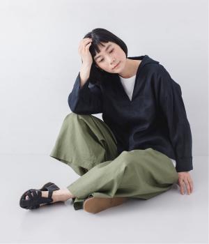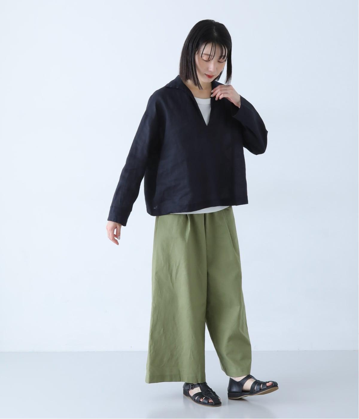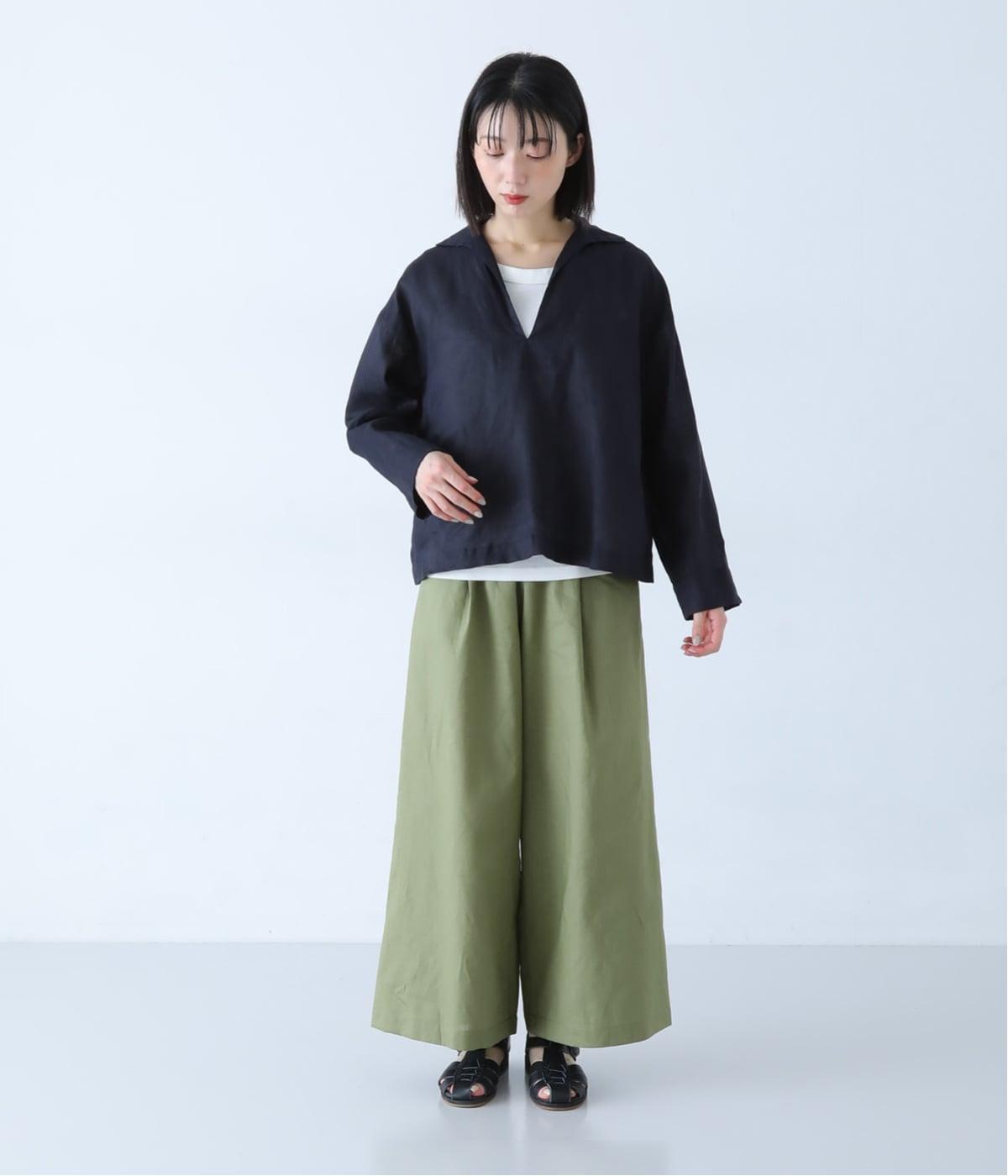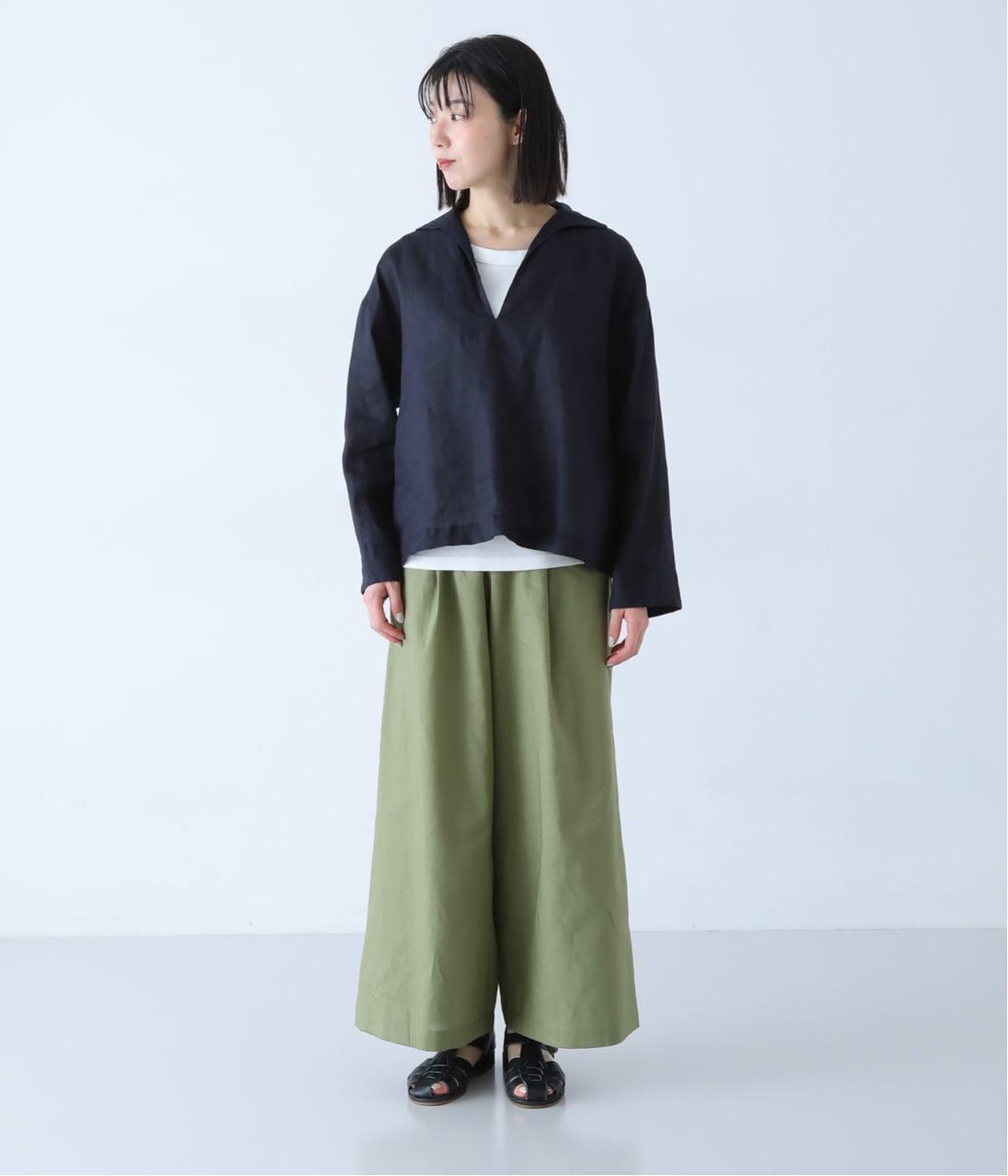 控えめな光沢を帯びたリネン素材が、リラックス感のある装いをほどよく引き締める一枚。しなやかな風合いが女性らしさを引き立て、ラフに着ても品よくまとまるのが魅力です。