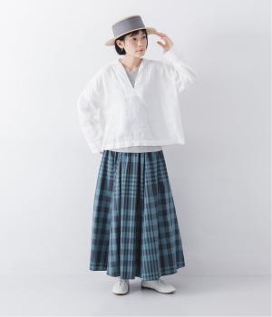 チェック柄のスカートを合わせた大人ガーリーな装いはもちろん、デニムなどのカジュアルなボトムとも好相性で、すっきりとした印象にまとまるのも魅力です。