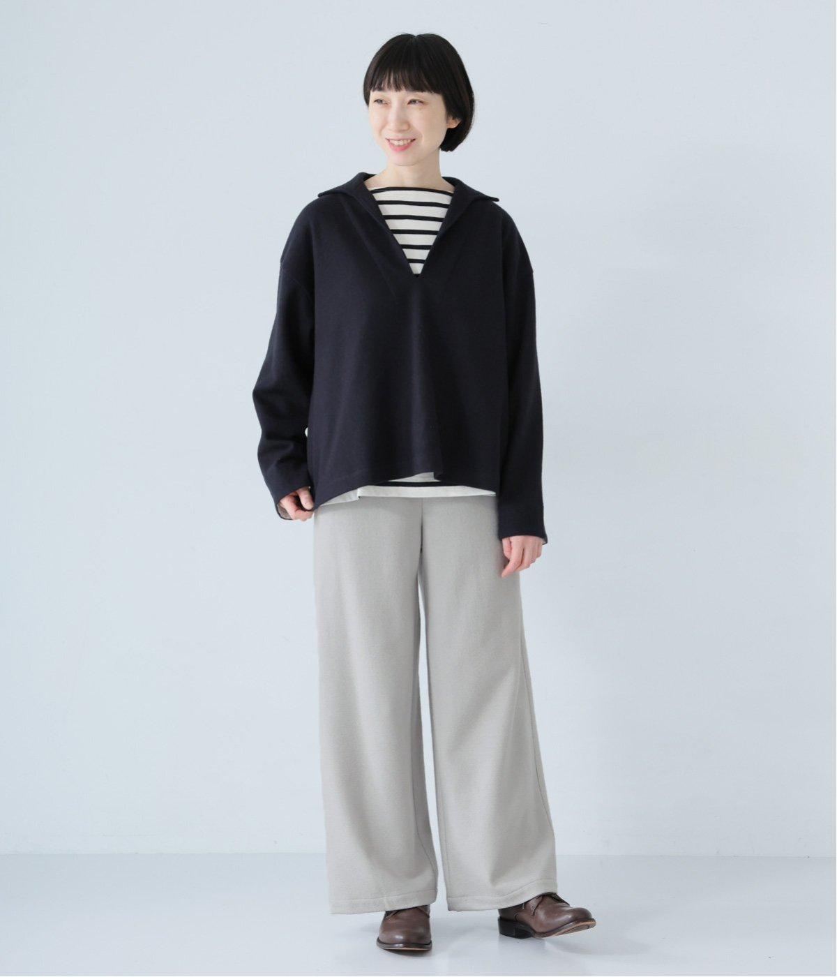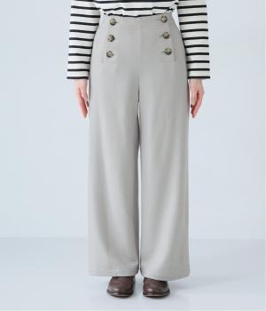 前ウエストのボタンをアクセントにしたマリンパンツ。全体にゆとりを持たせたワイドストレートシルエットがこなれ感のある着こなしを叶えます。後ろウエストはゴム仕様で、イージーな着用感にもこだわりました。