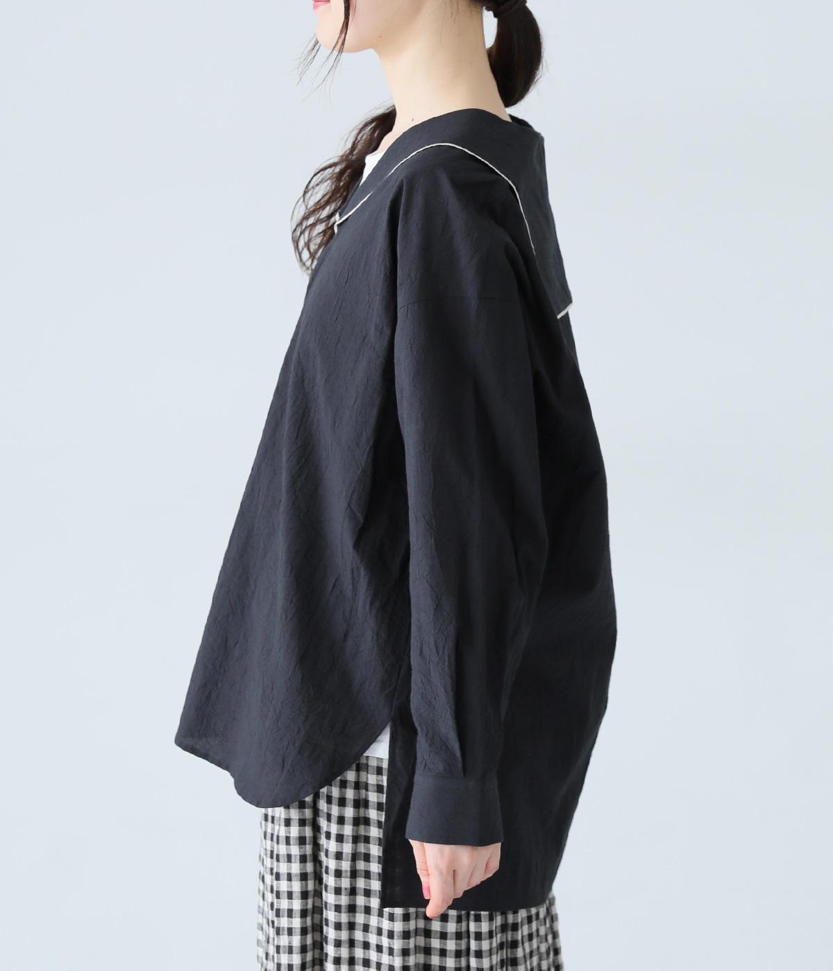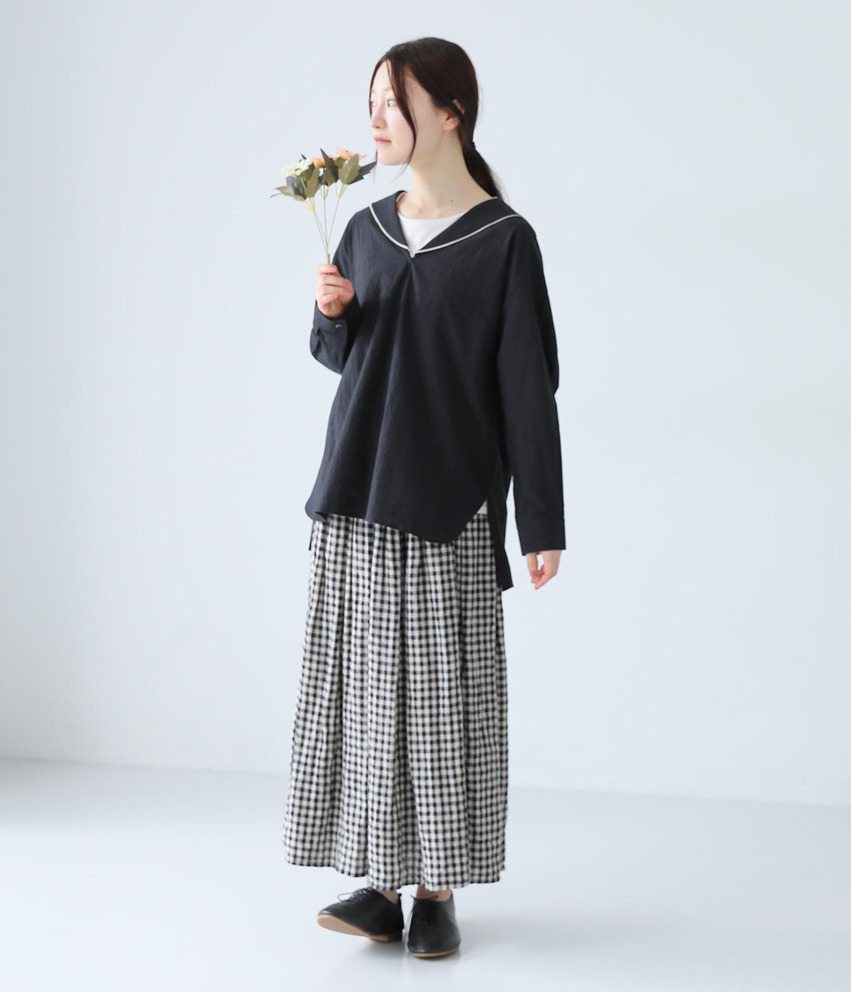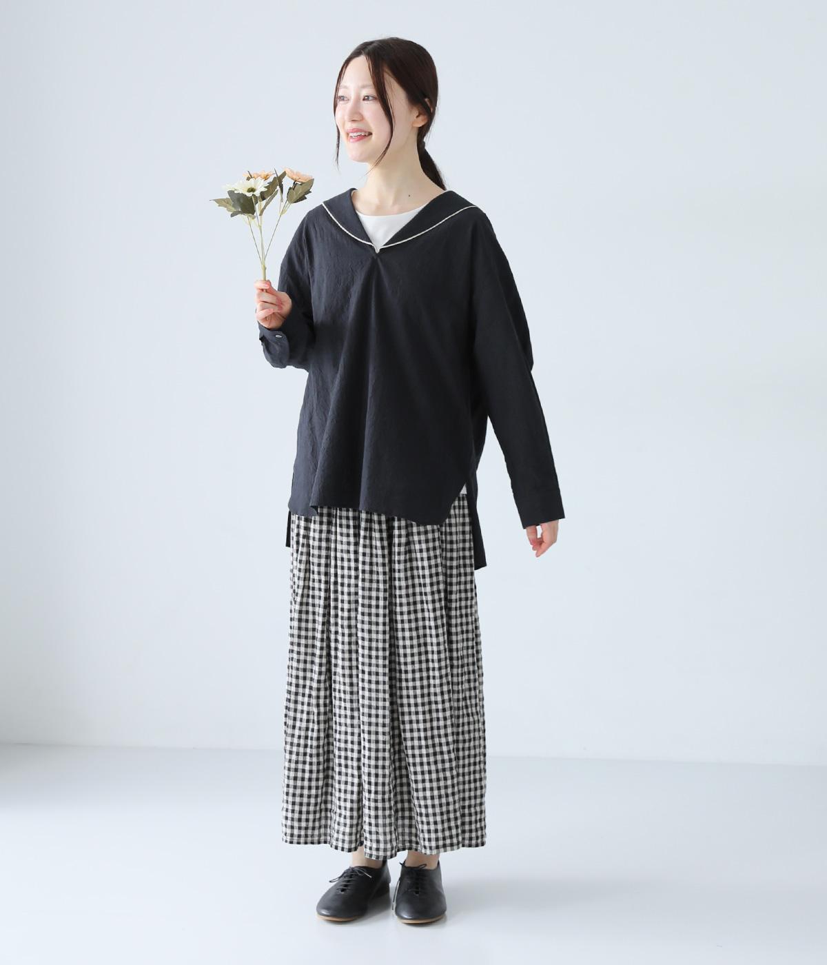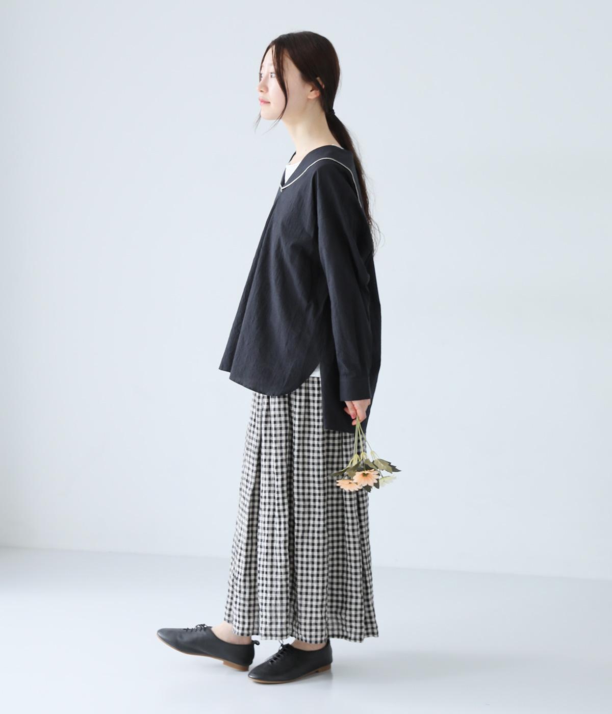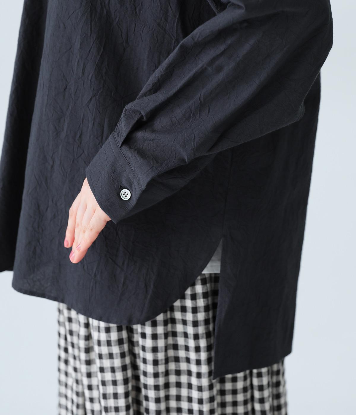 なめらかな肌触りと上品な風合いが特徴の薄手ローン生地を使用しています。とても軽く通気性が良いので、暑さの残る時期にもぴったり。さりげないシワ感がナチュラルな印象を与えてくれます。