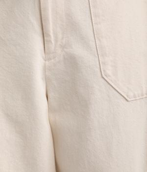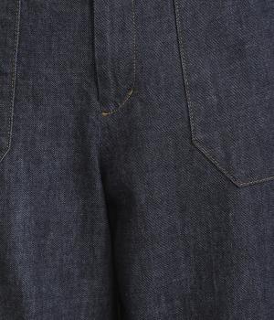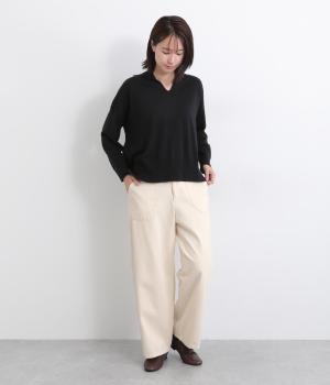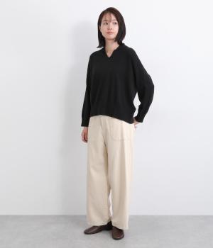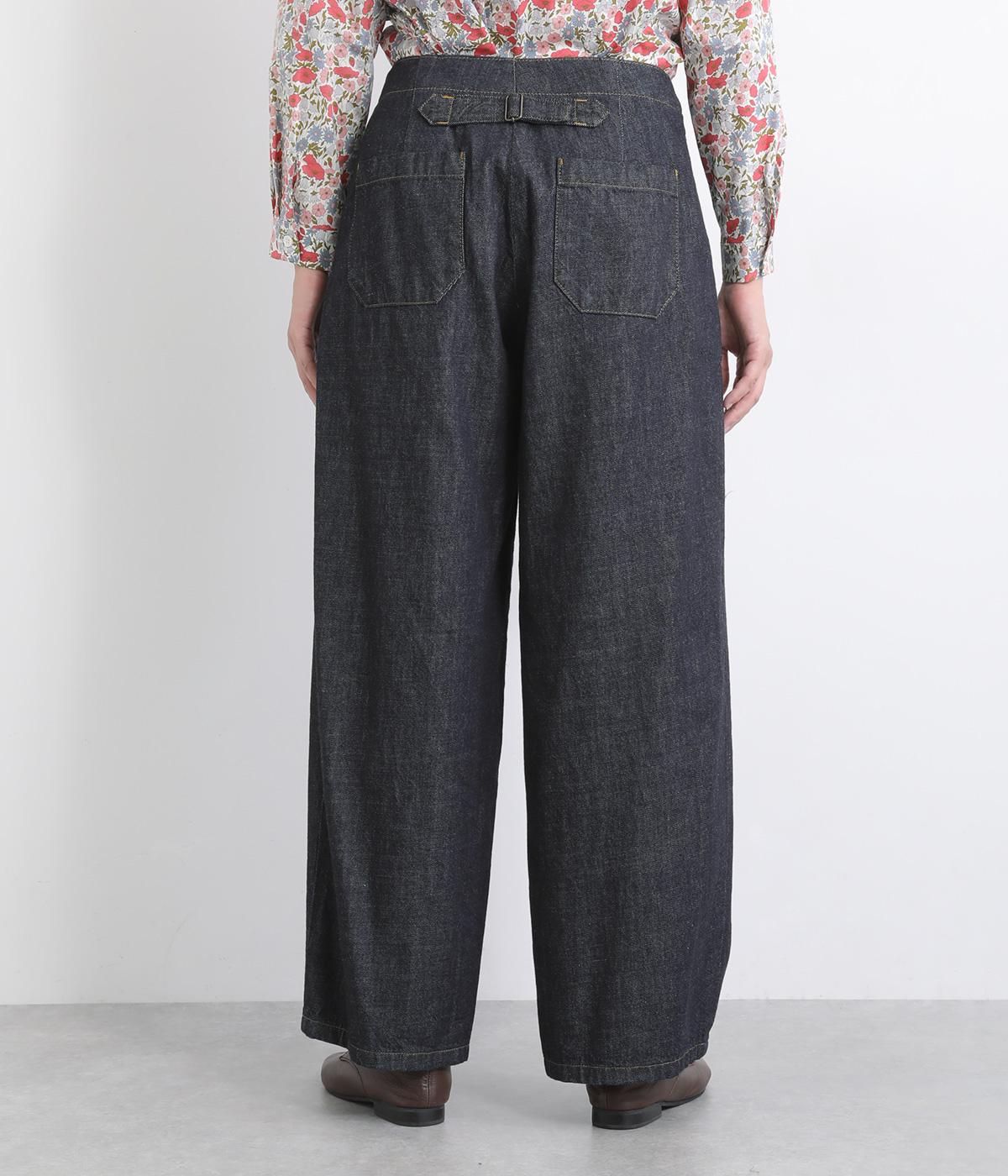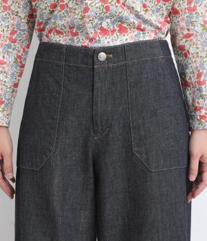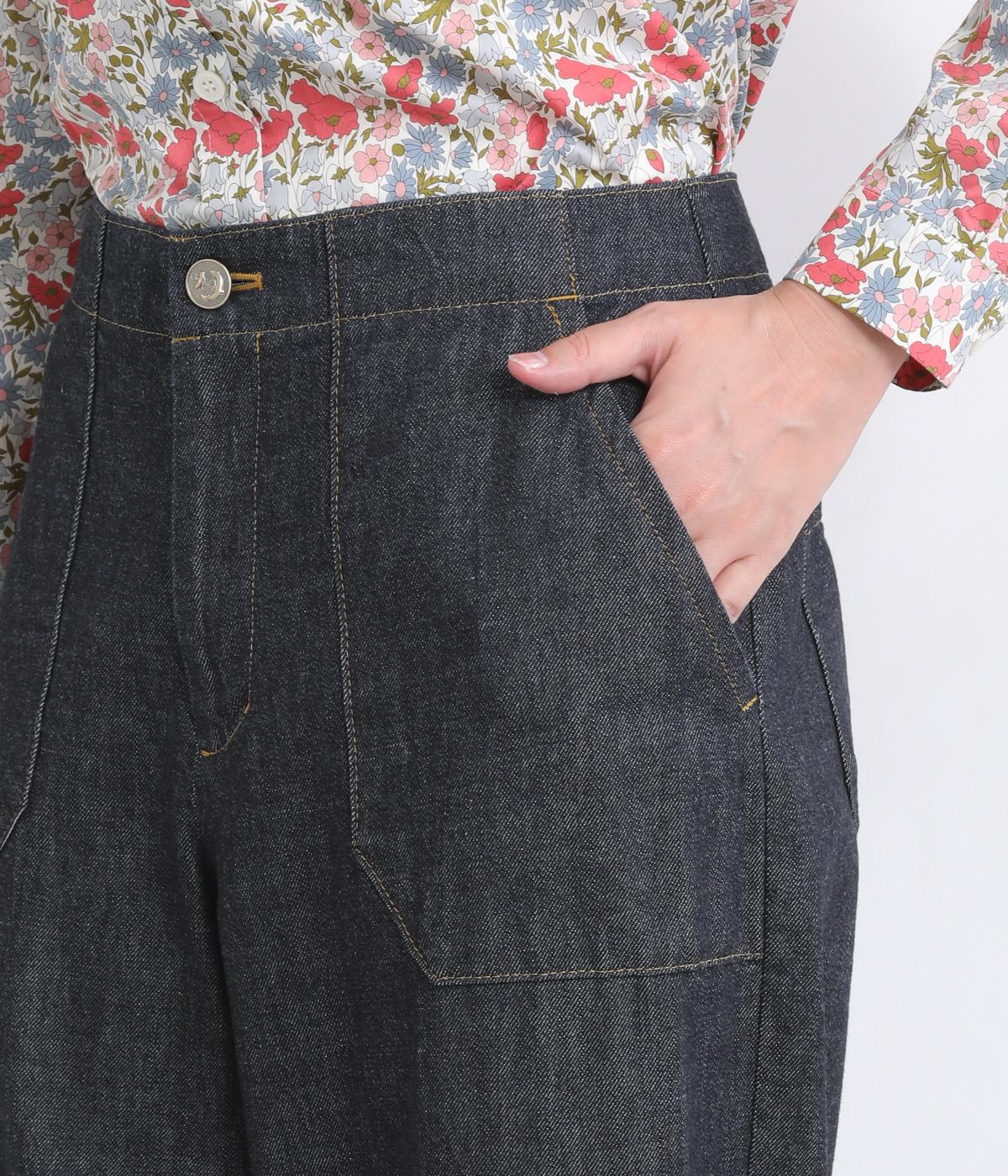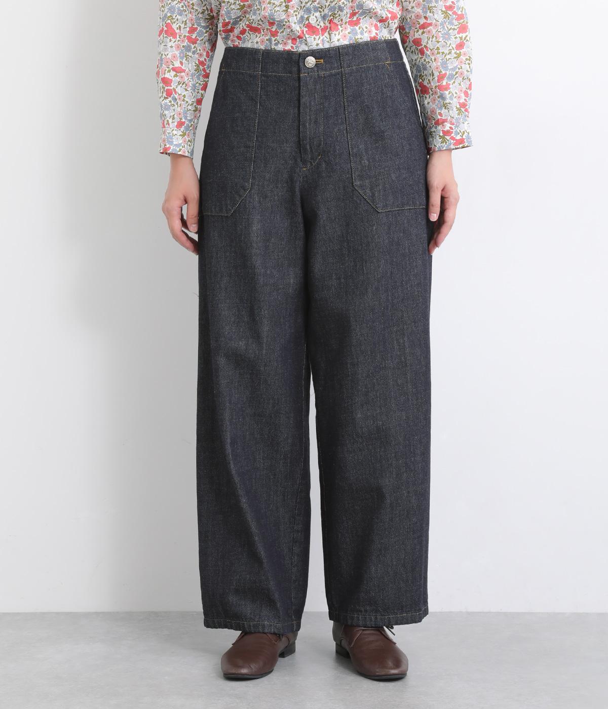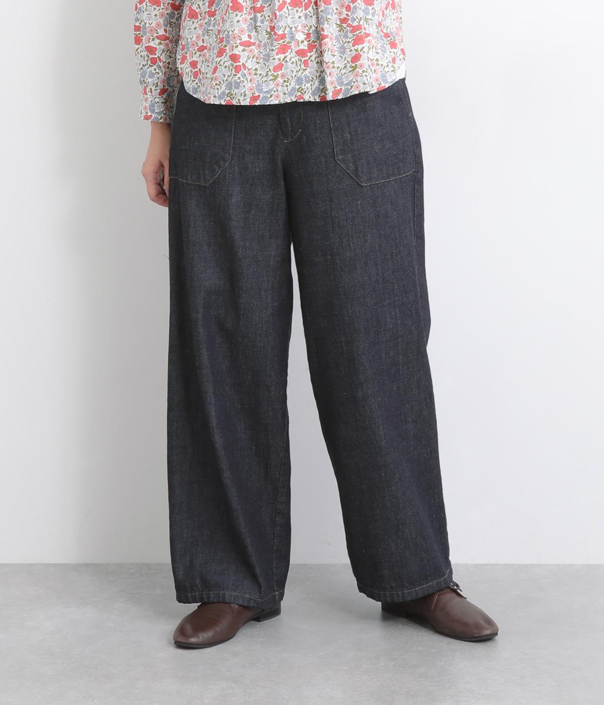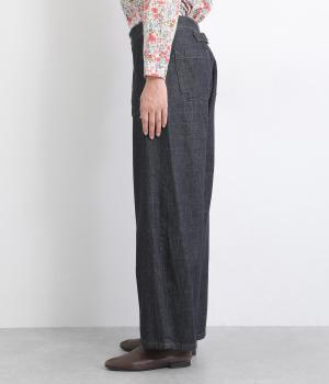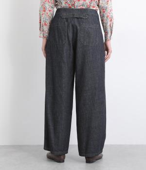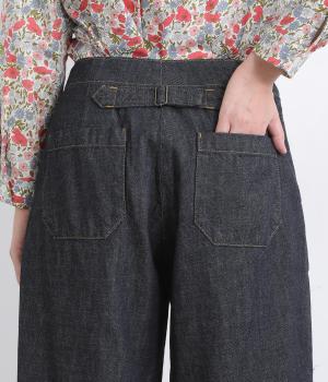 大きなポケットが特徴的なベーカーパンツ。ゆったりとしたストレートラインにウエストの碇マークボタンがメンズライクな印象。ウエストまわりはトップスインがさまになるすっきりとした仕立てで、腰のベルトで微調整ができます。