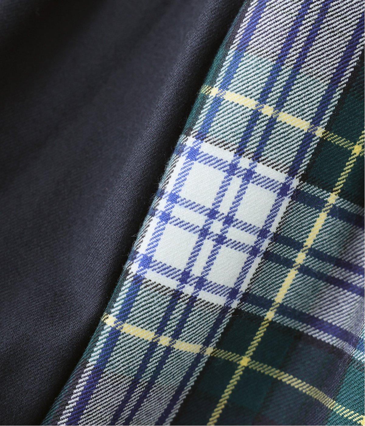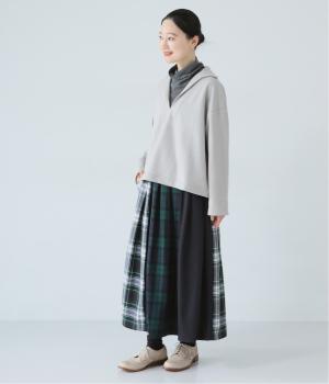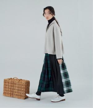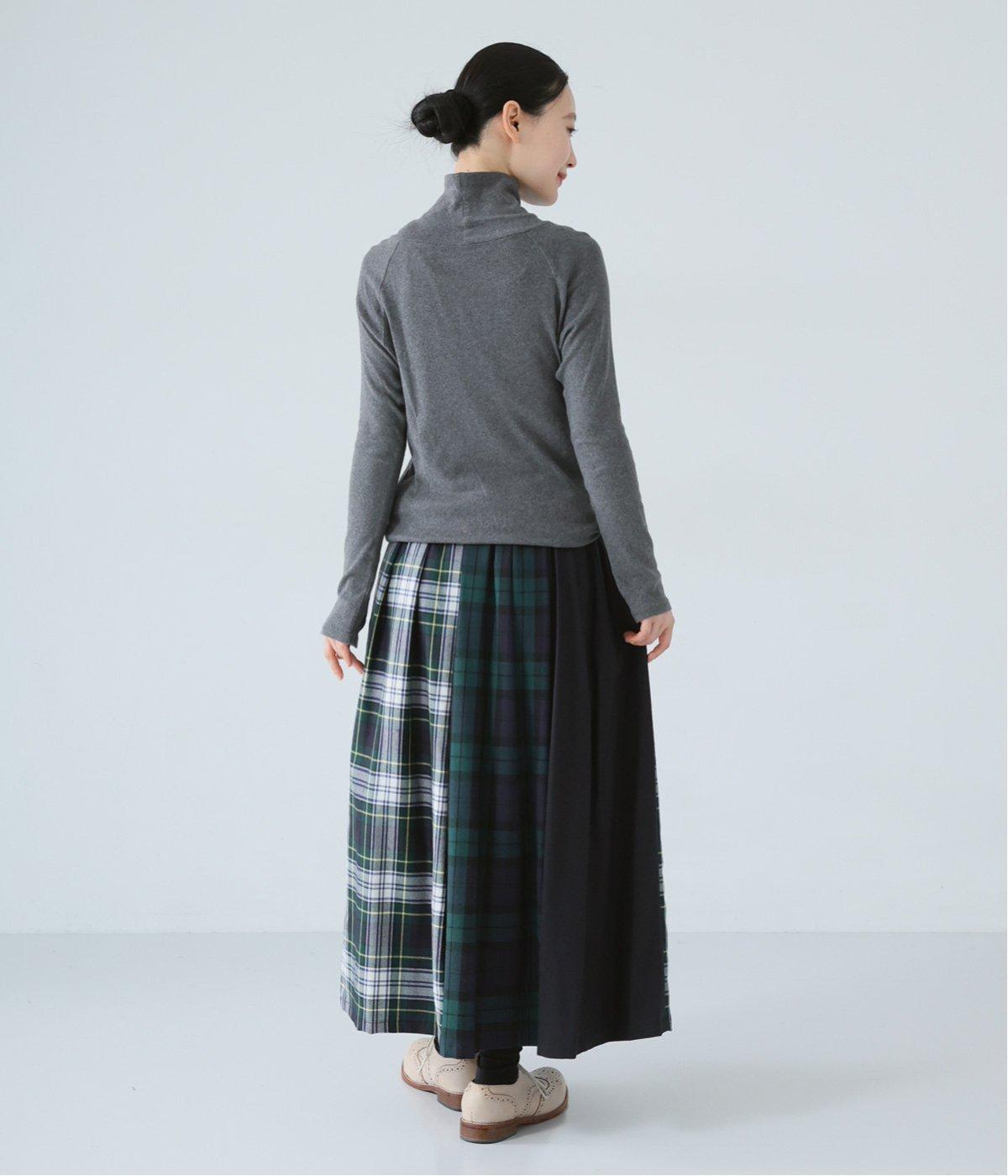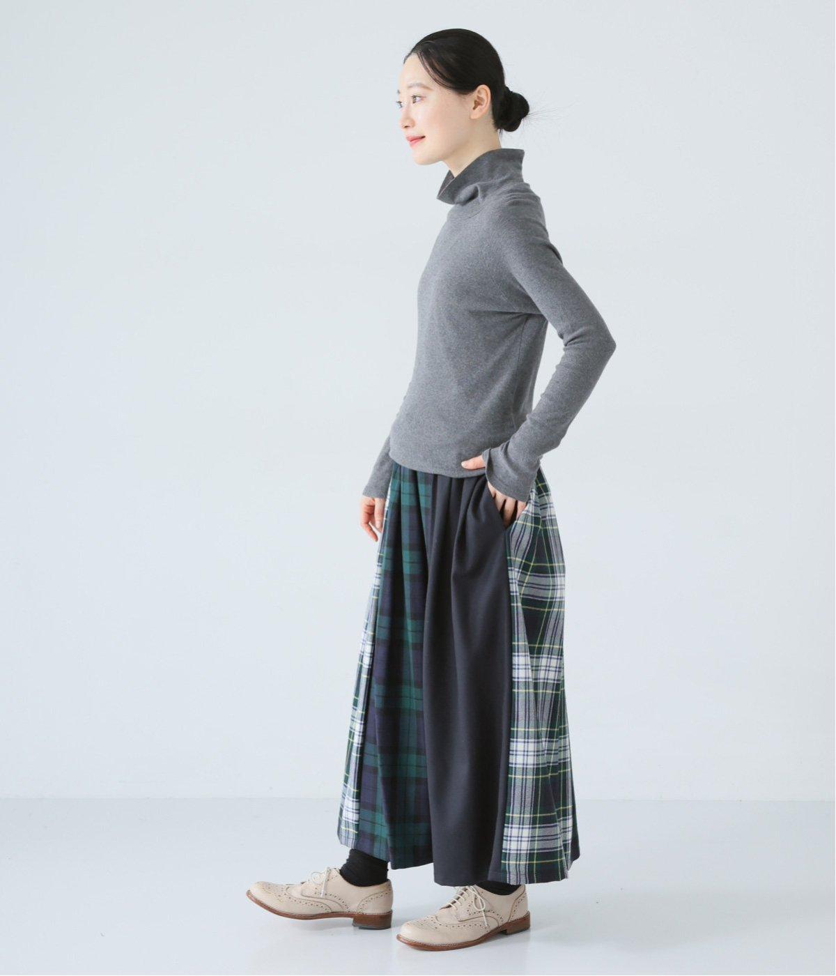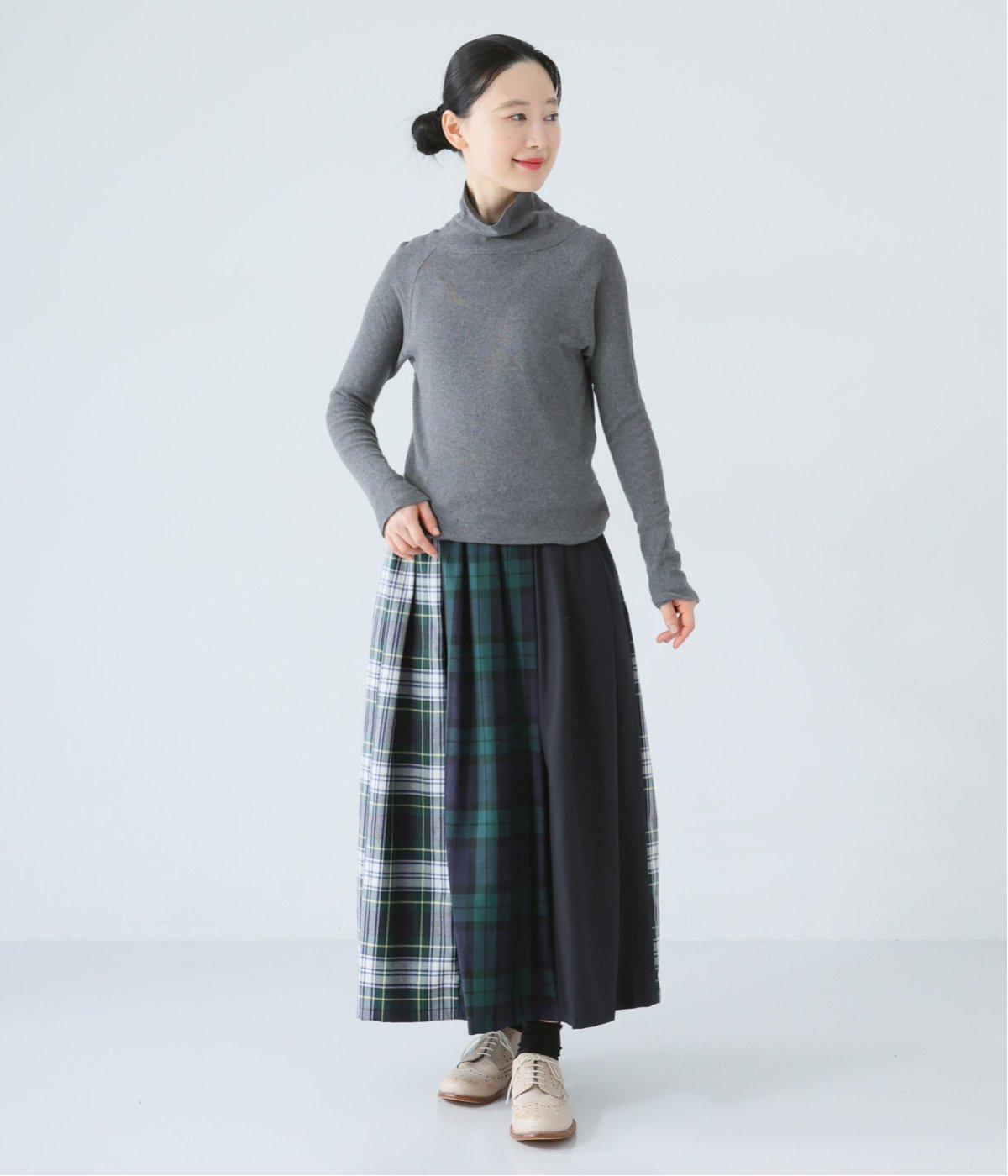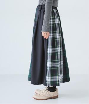 2種類のタータンチェックと無地生地を組み合わせた飽きの来ないデザインが魅力。一点投入でトラッド感漂う着こなしが叶います。ウエストのタックからドレープを広げたほどよいボリューム感が素敵。お腹まわりにやさしくフィットするゴム仕様のウエストもポイントです。