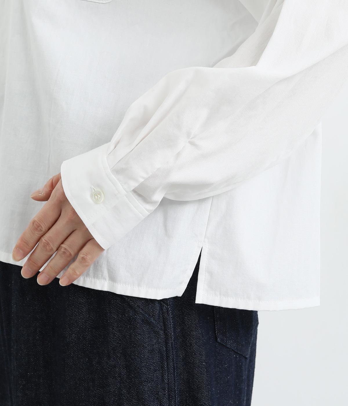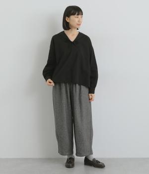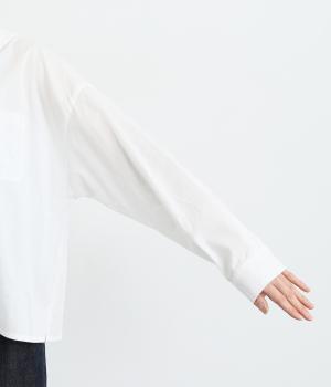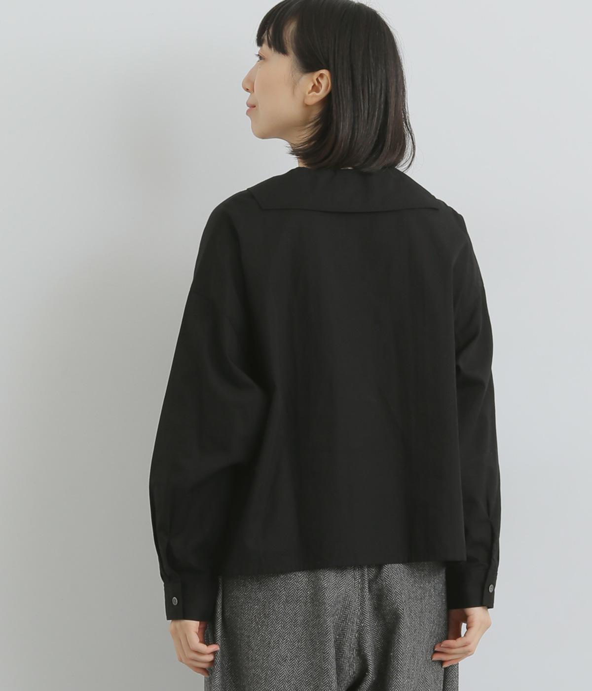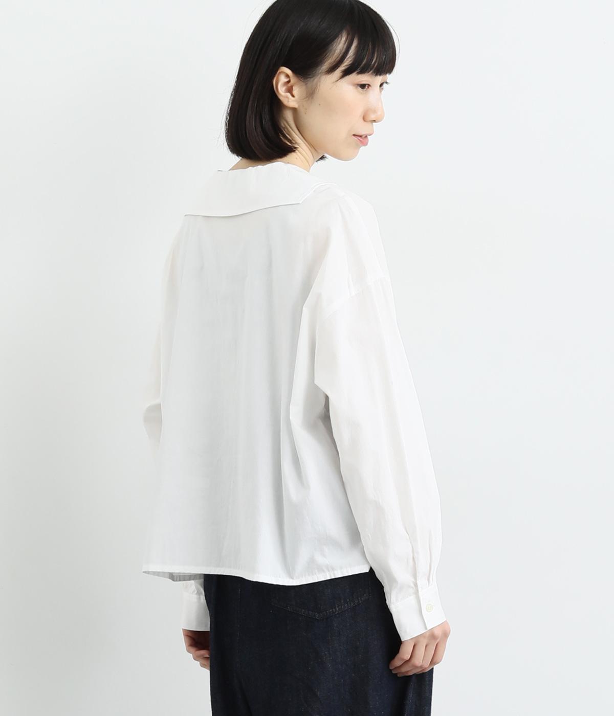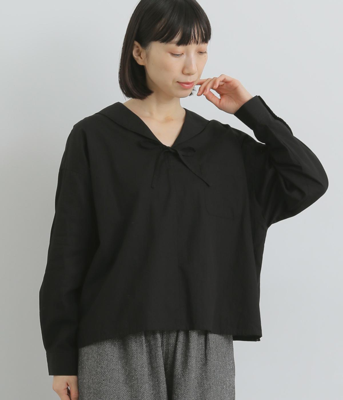 小さめのセーラーカラーで子どもっぽさをおさえた、大人の女性にぴったりなシャツ。すっきりとしたやや深めのVネックに愛らしいリボンを添えました。左胸に配したポケットがアクセントに。身幅にゆとりを持たせた分、着丈は短めに設定してバランス良く仕上げています。