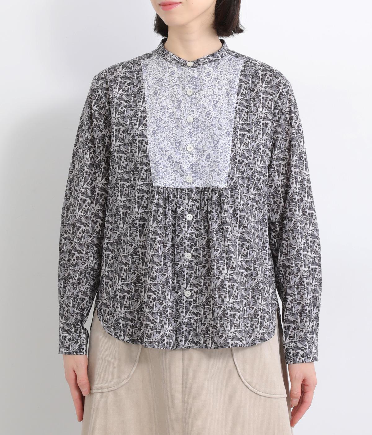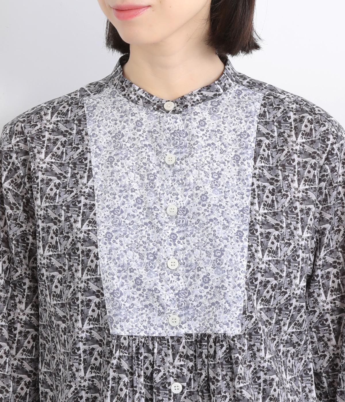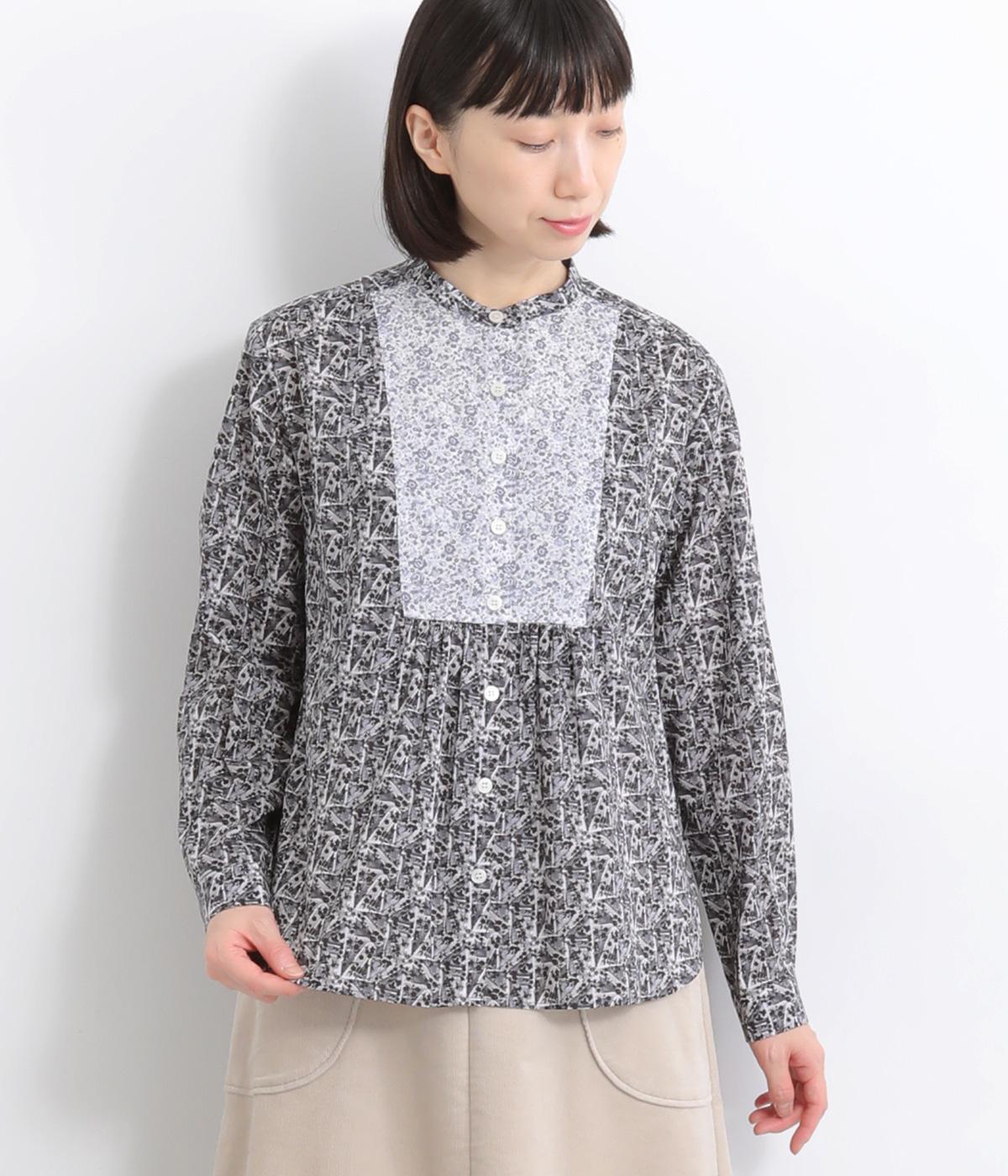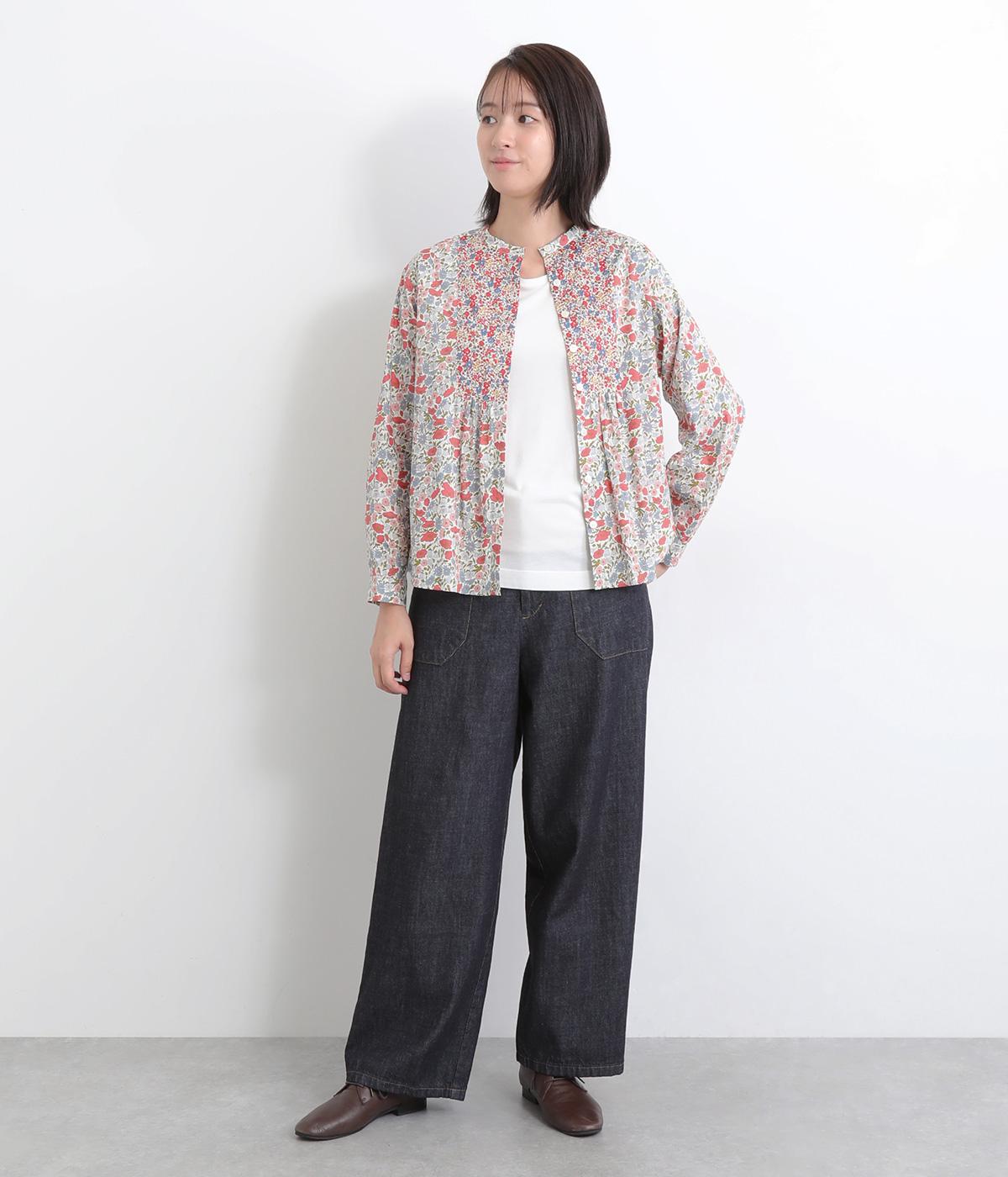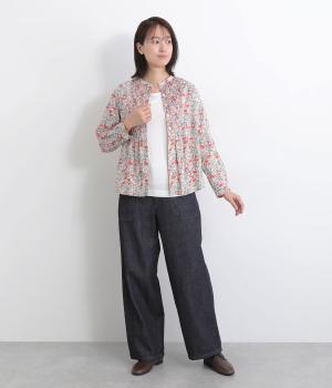 鮮やかなリバティプリントが目を惹くブラウス。フロントのヨーク切り替えは別柄をチョイスしてデザイン性もアップ。着こなしの主役になる存在感があり、サロペットのインに着たり、羽織り物を合わせたり、チラ見せ要素としても活躍します。