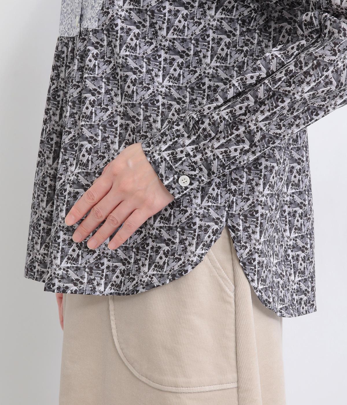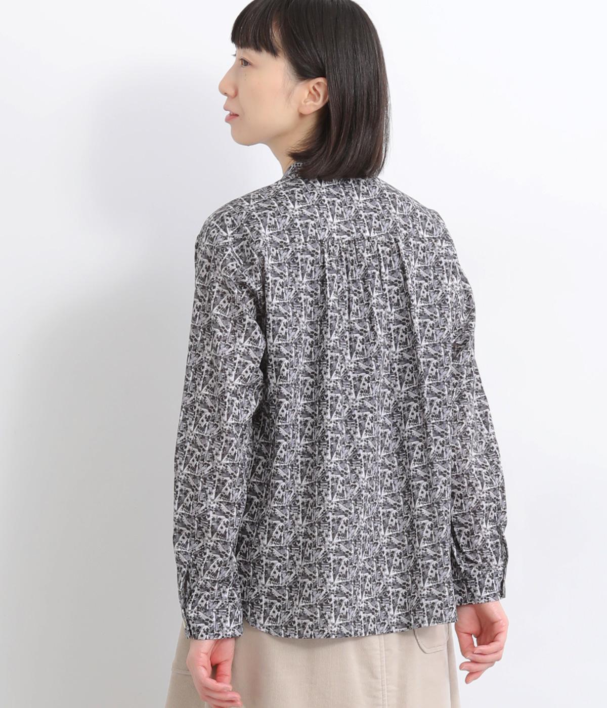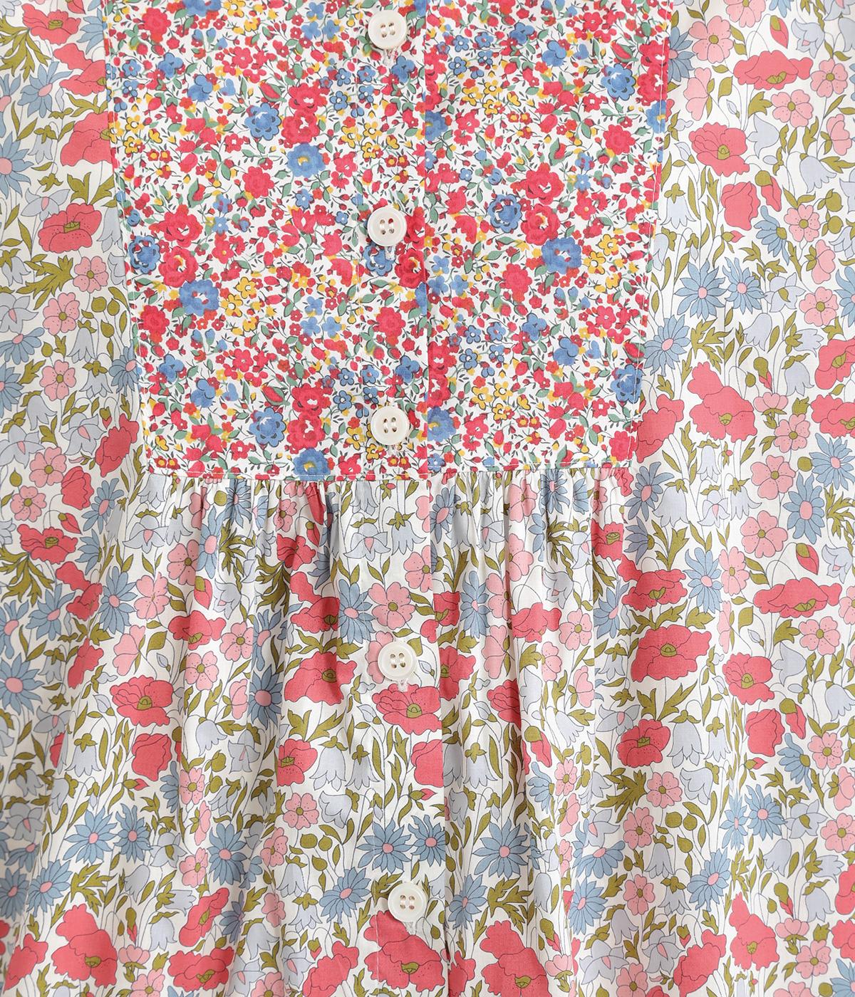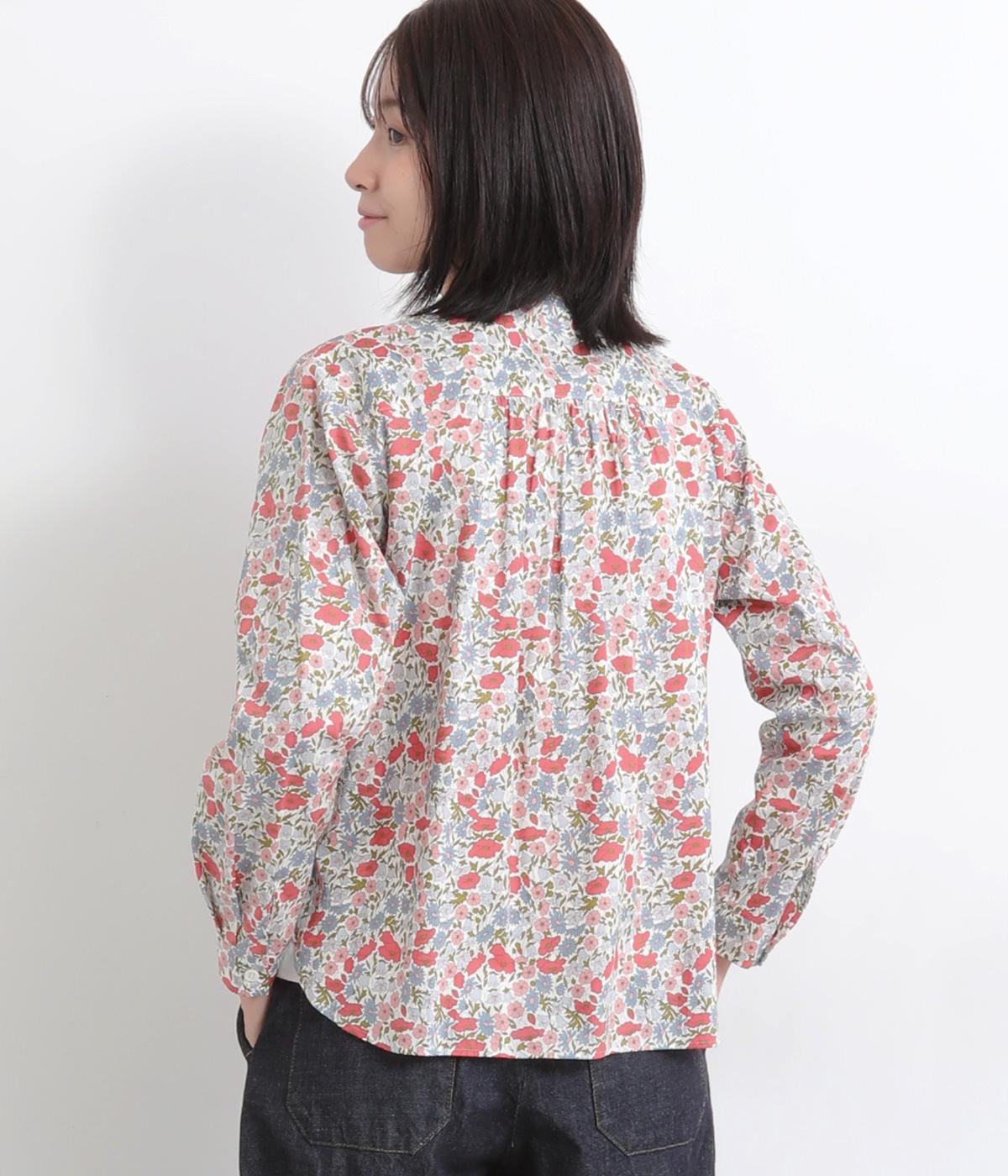 鮮やかなリバティプリントが目を惹くブラウス。フロントのヨーク切り替えは別柄をチョイスしてデザイン性もアップ。着こなしの主役になる存在感があり、サロペットのインに着たり、羽織り物を合わせたり、チラ見せ要素としても活躍します。