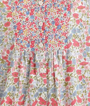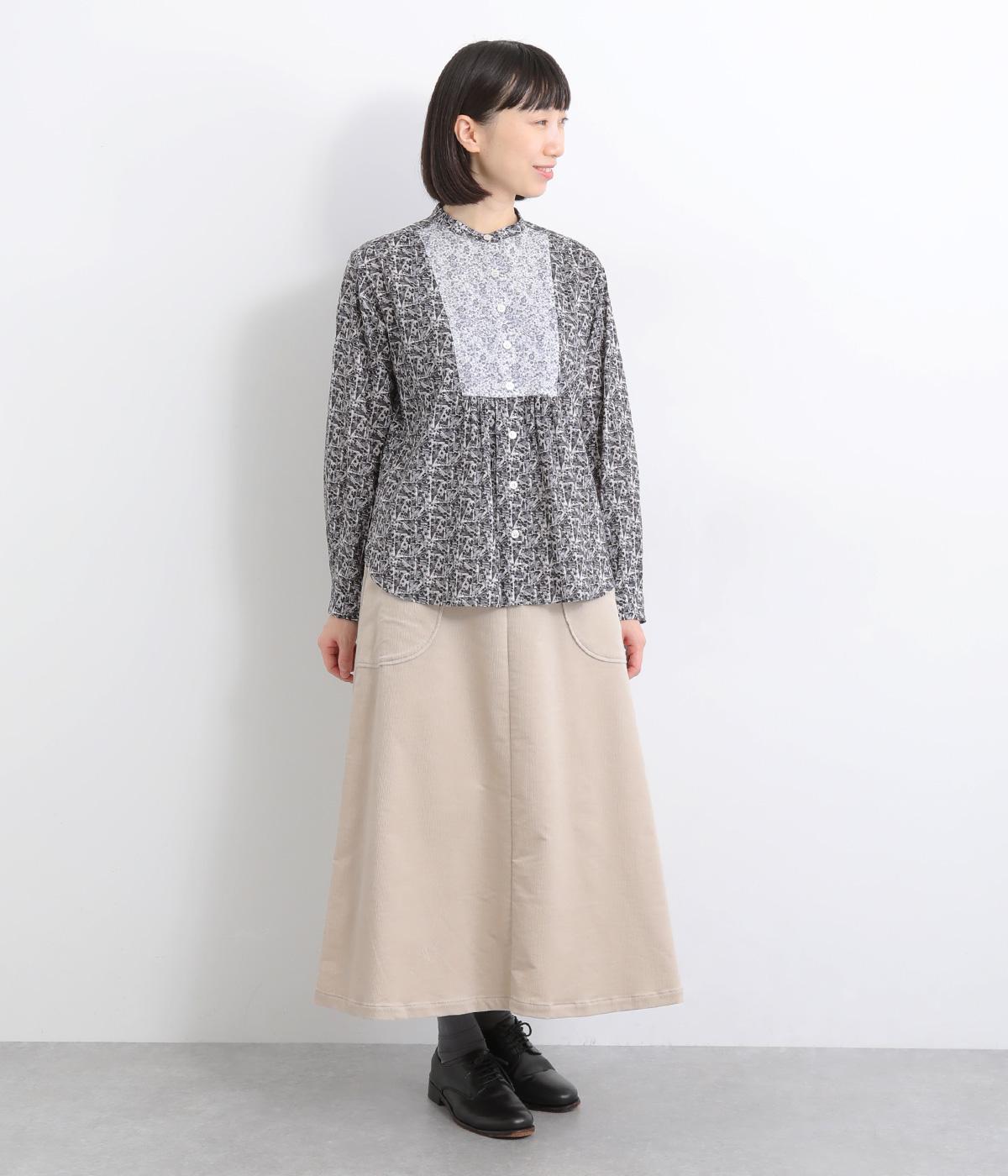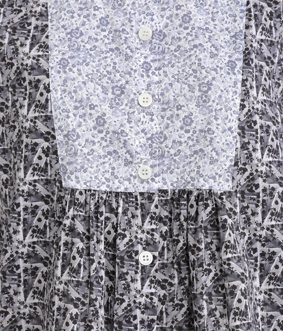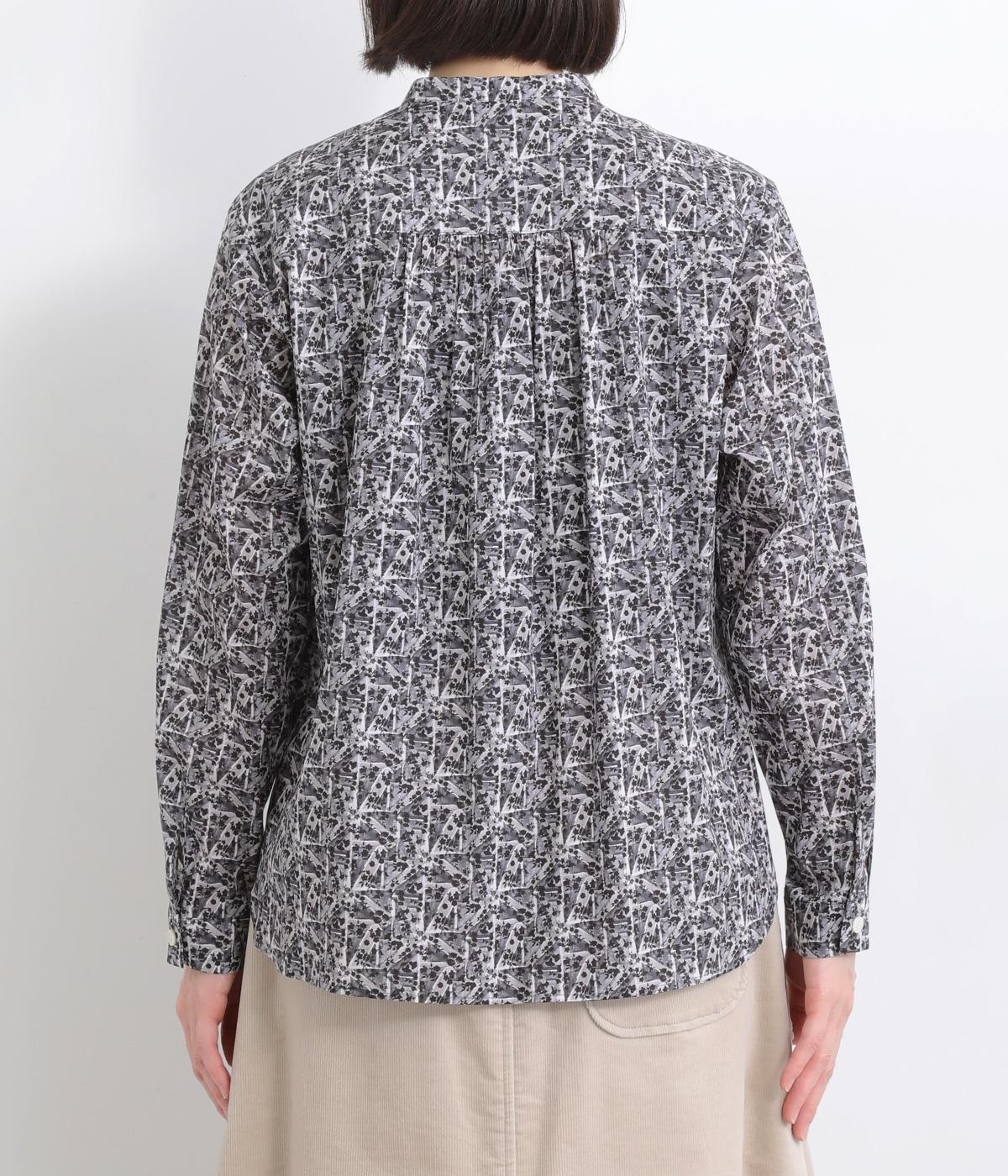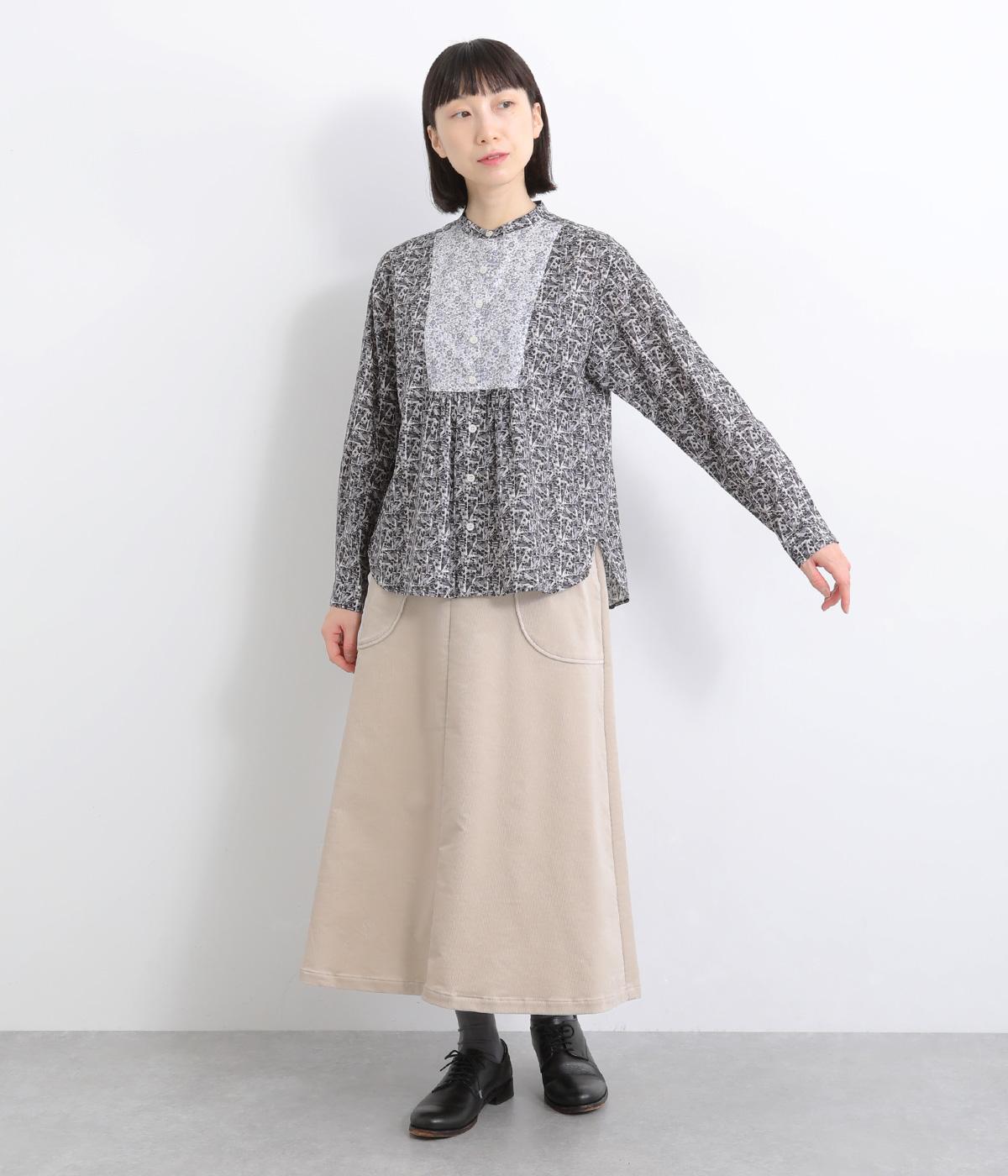 鮮やかなリバティプリントが目を惹くブラウス。フロントのヨーク切り替えは別柄をチョイスしてデザイン性もアップ。着こなしの主役になる存在感があり、サロペットのインに着たり、羽織り物を合わせたり、チラ見せ要素としても活躍します。