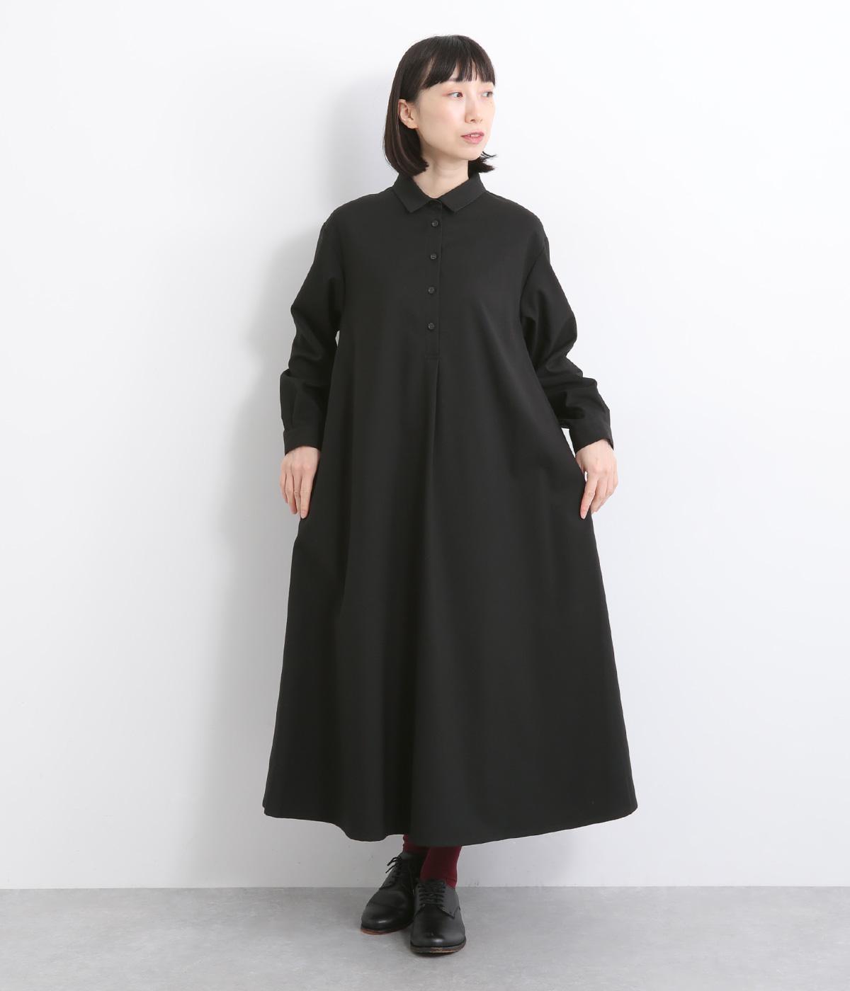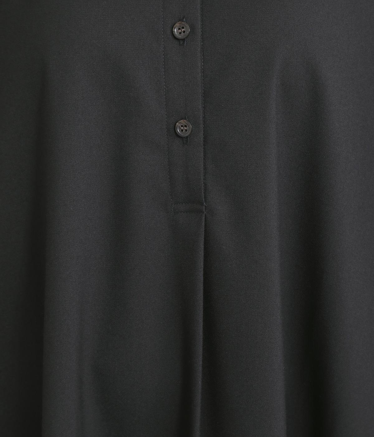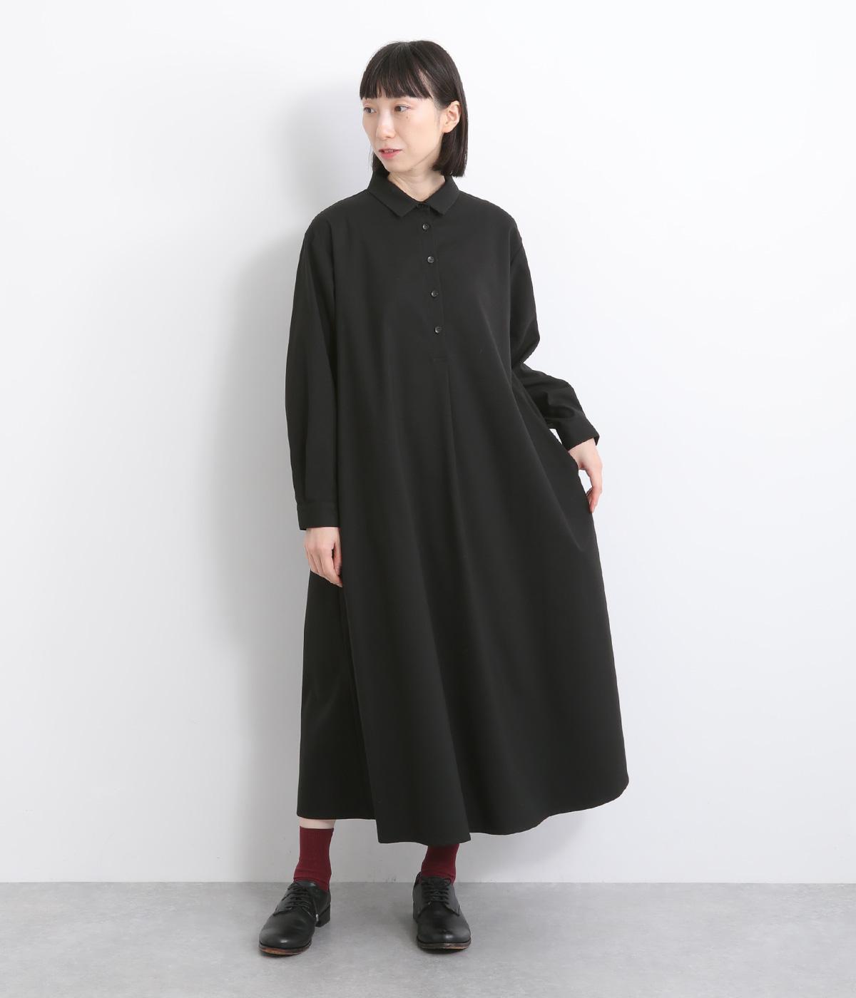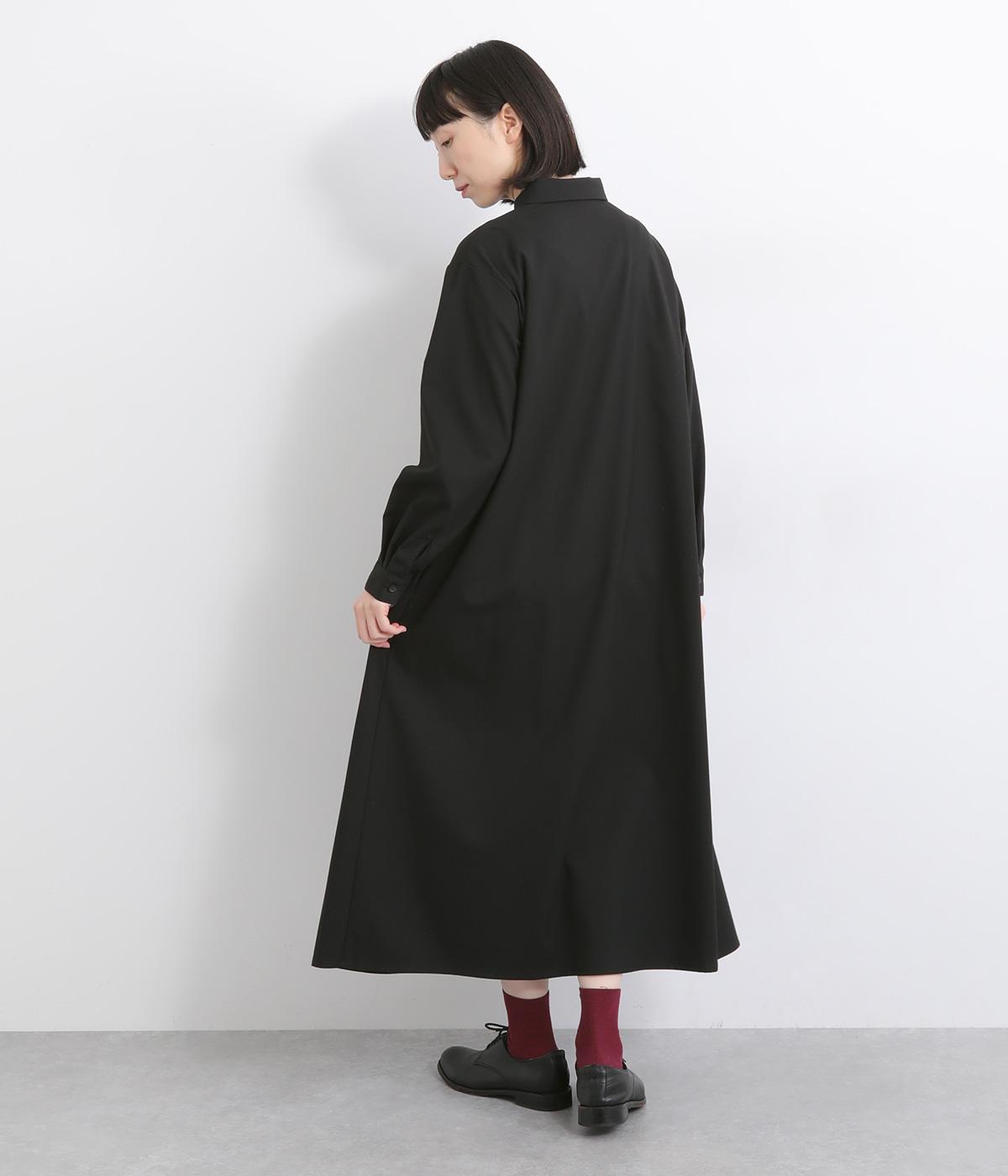 ボタン下にタックを入れて裾に向かってフレア感を出したシルエットが優雅な一着。小さめの襟やカフスつきの袖がクラシカルテイストなデザインで、レースアップブーツなどとも好相性。シンプルながらも素材感が良く、一枚着でも雰囲気のいい装いが完成します。