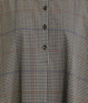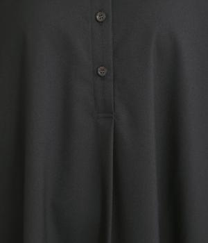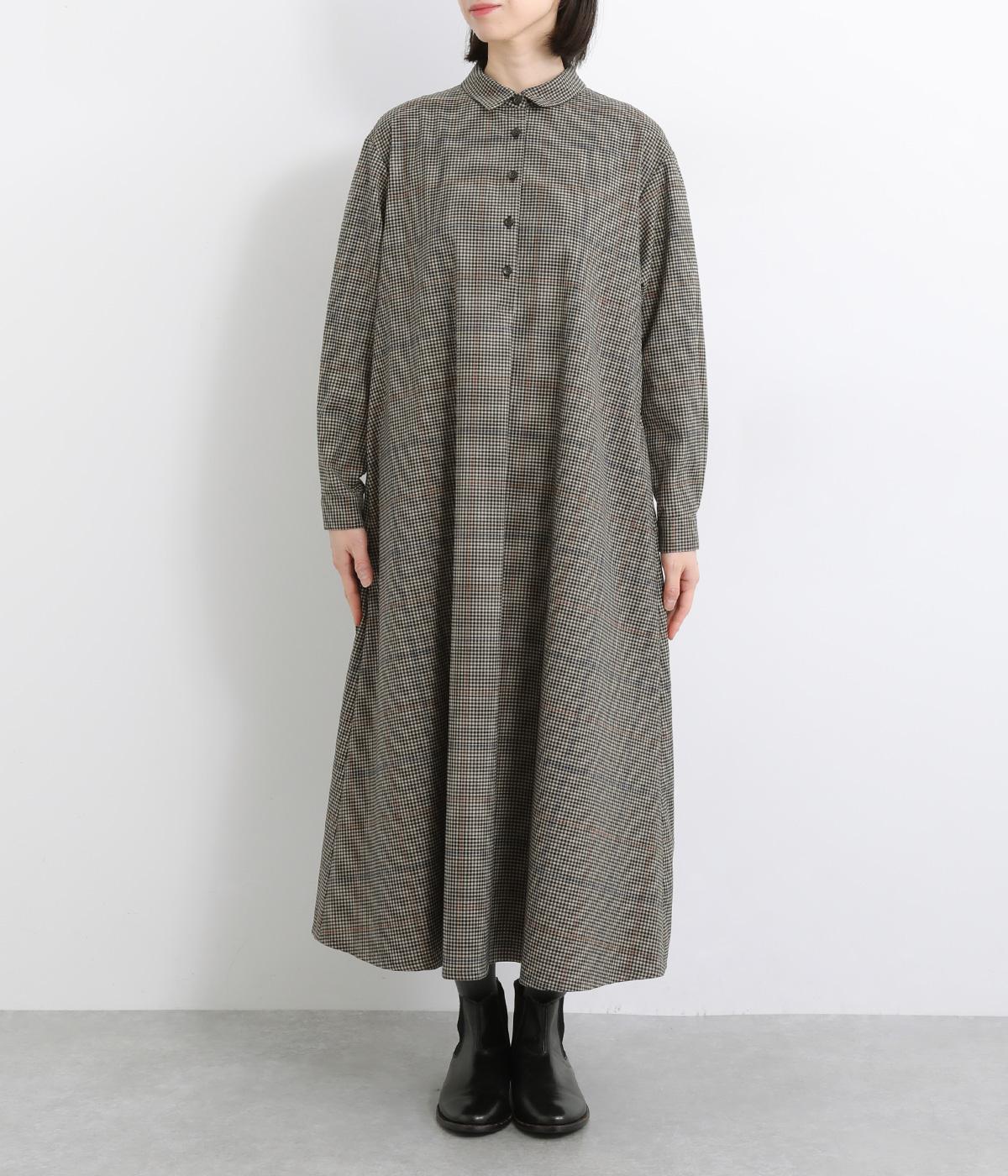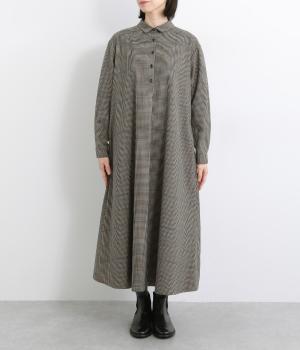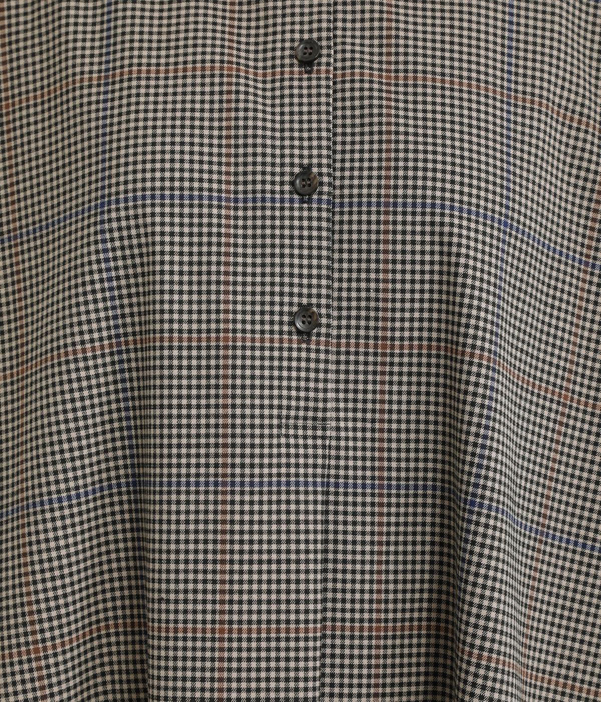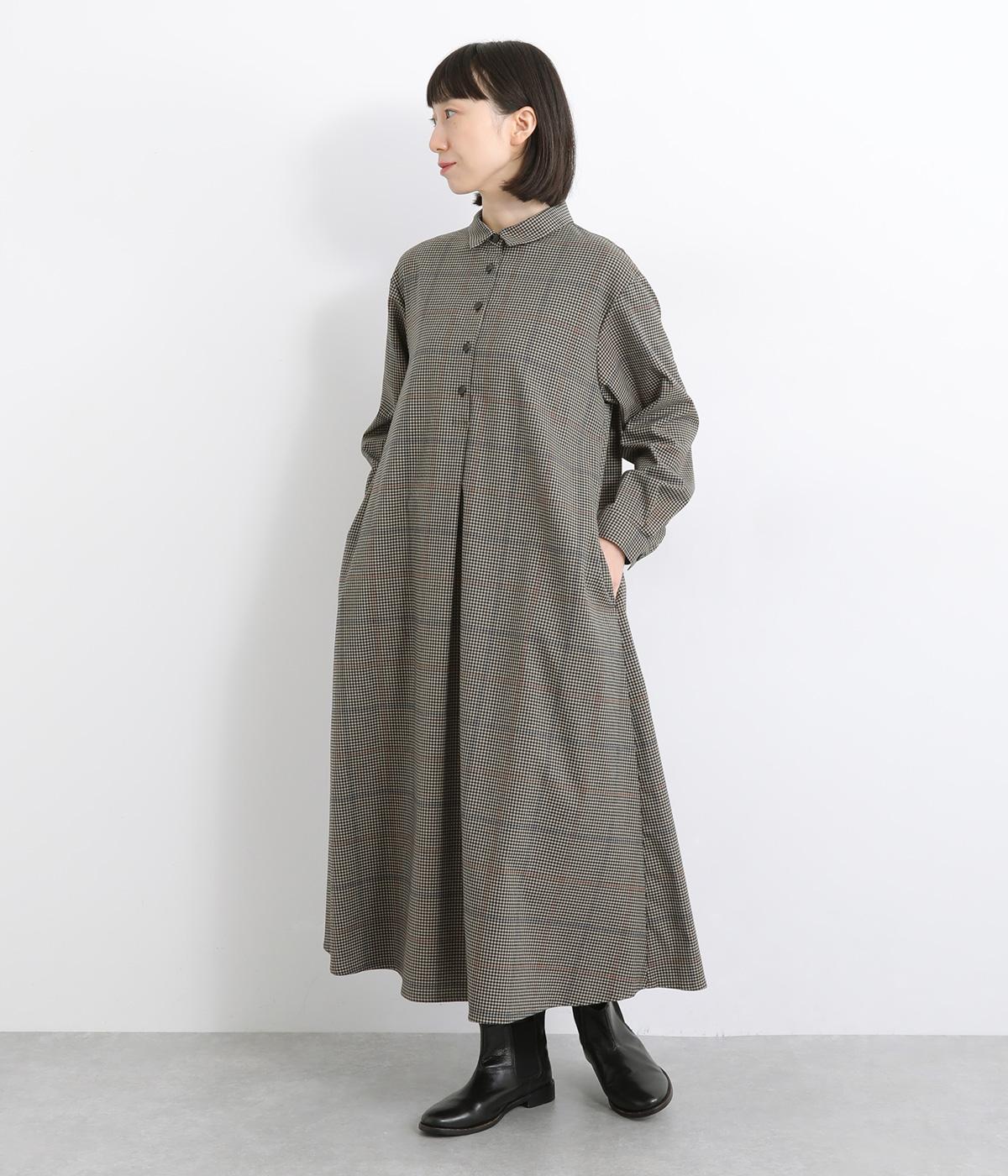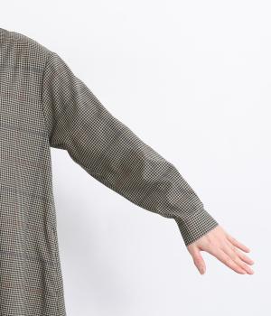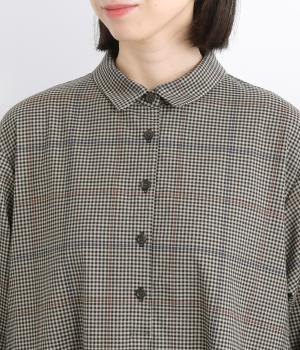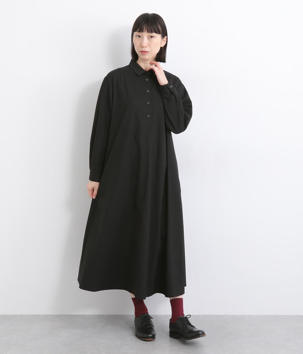 ボタン下にタックを入れて裾に向かってフレア感を出したシルエットが優雅な一着。小さめの襟やカフスつきの袖がクラシカルテイストなデザインで、レースアップブーツなどとも好相性。シンプルながらも素材感が良く、一枚着でも雰囲気のいい装いが完成します。