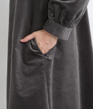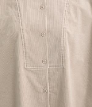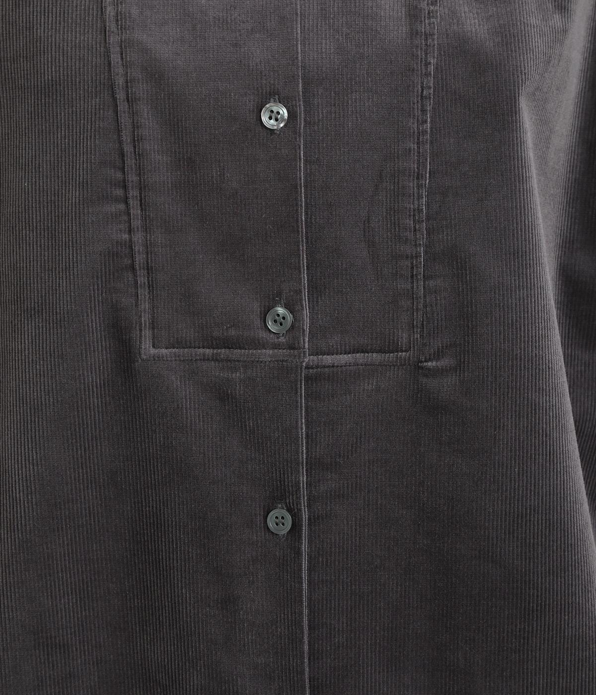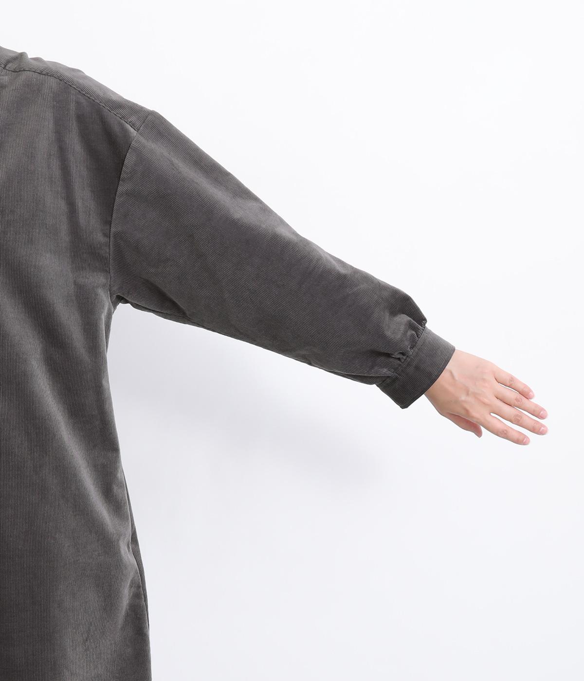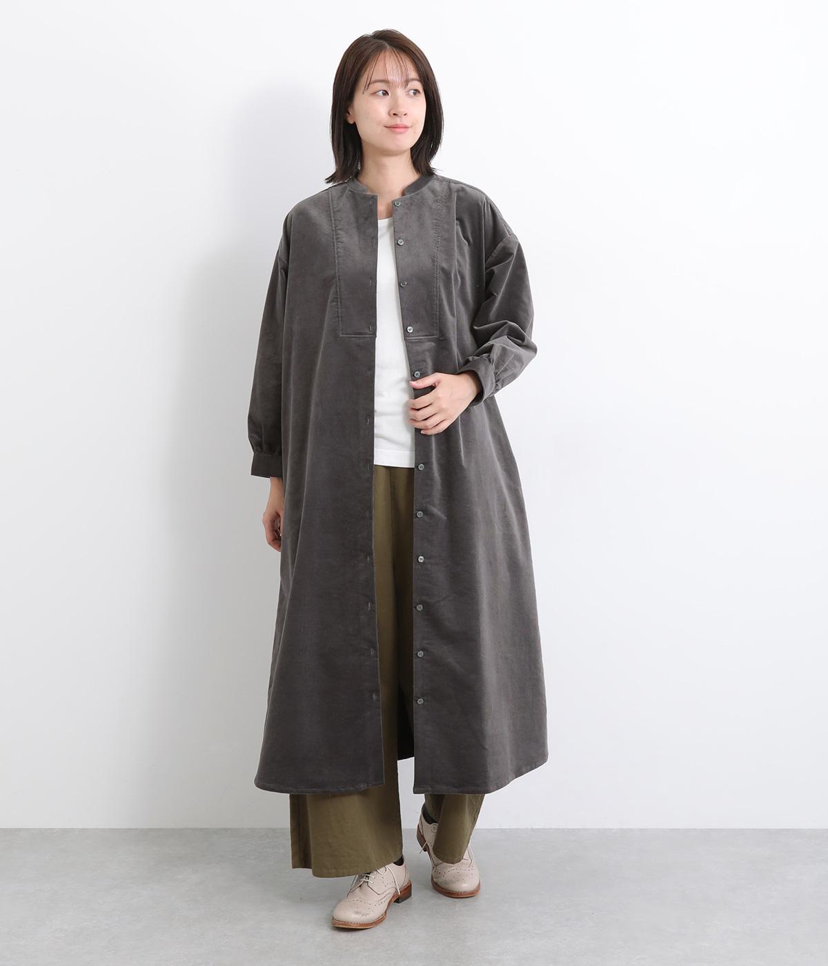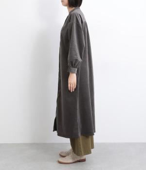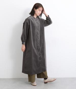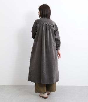タテ方向に畝のあるコーデュロイ生地にストレッチ性を持たせて着心地の良さを高めました。独特のあたたかみや光沢感のある表情が特徴で、ポリエステルなどもまぜて見た目以上に軽やかに仕上げました。