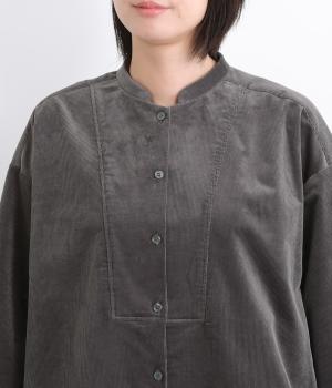 体を締めつけないゆったりとしたシルエットでリラックスムードな一着。ヨーク切り替えでさり気なくクラシカルなディテールを盛り込んでポイントに。バンドカラーや袖カフスですっきりとまとめ、羽織りやボトム合わせもたのしめる丈感に仕上げました。