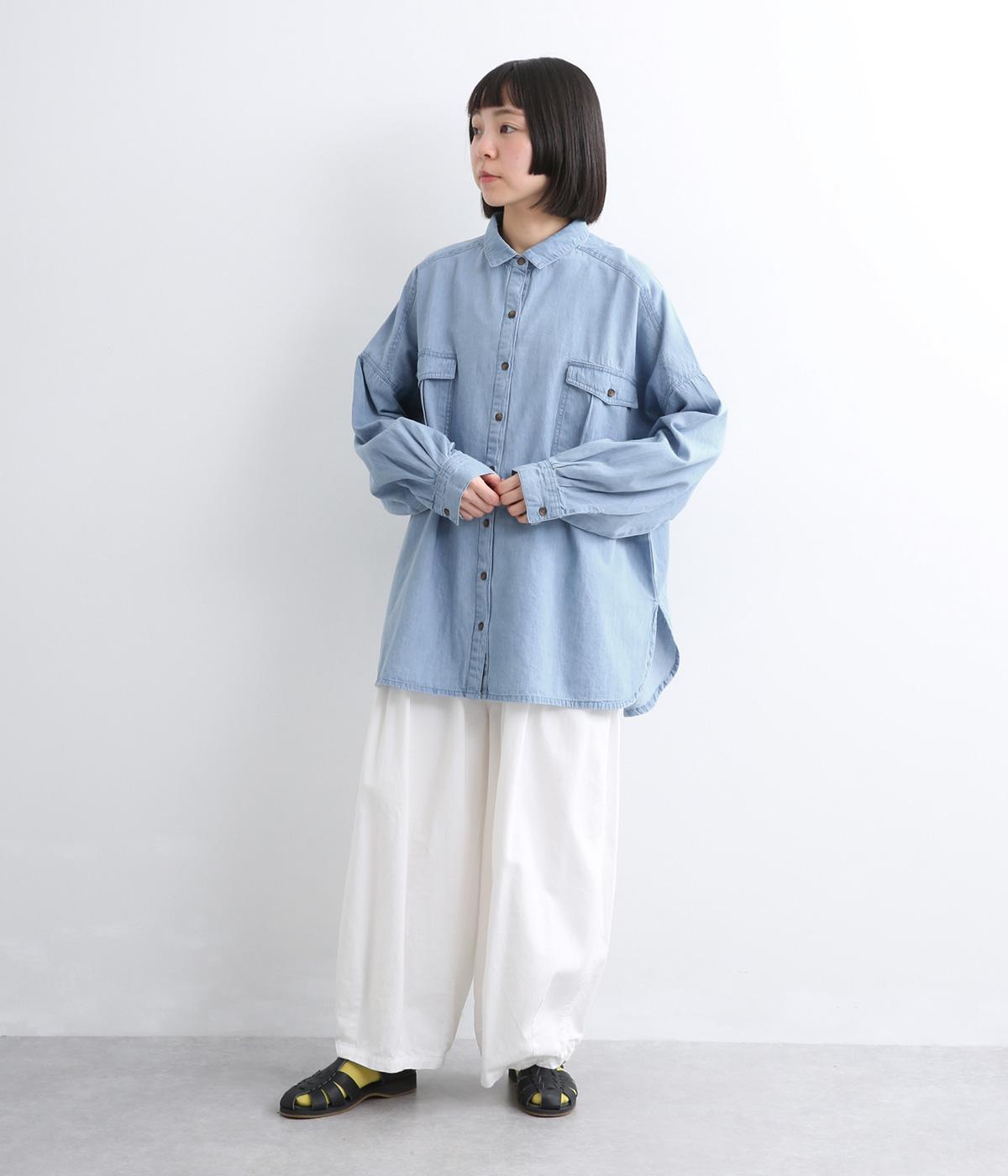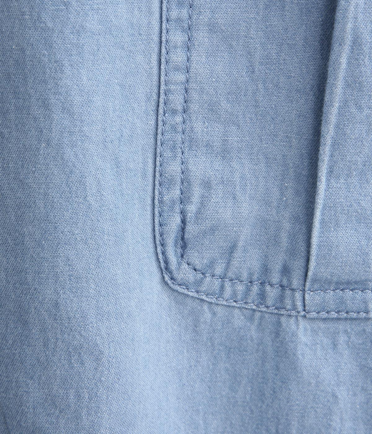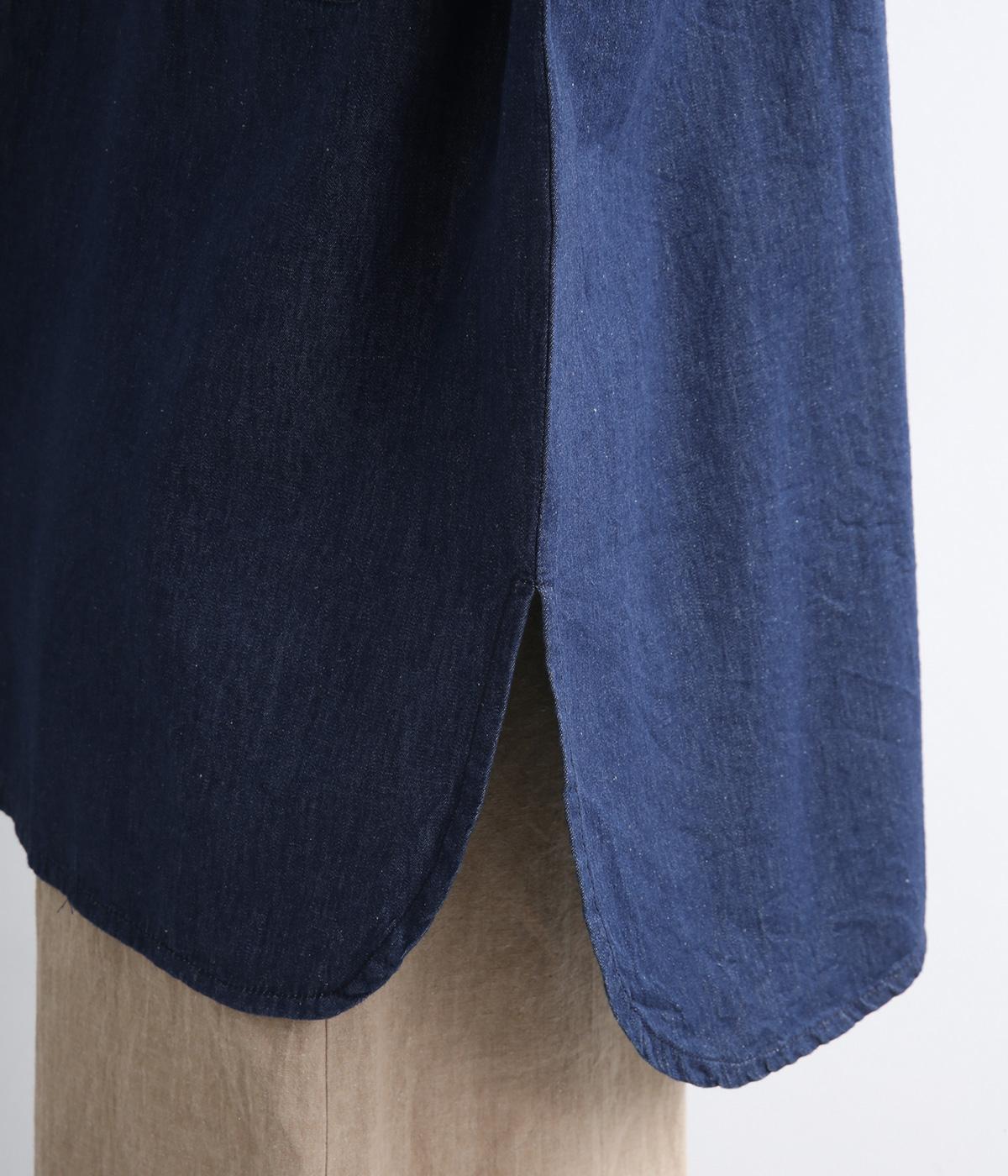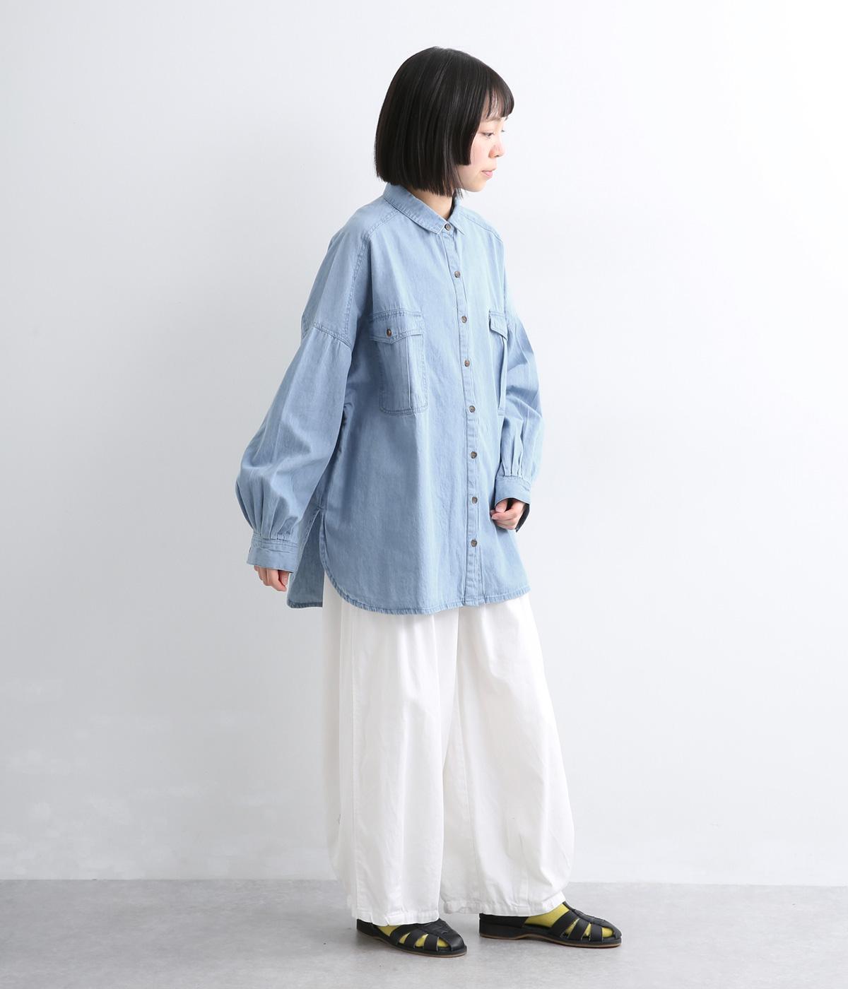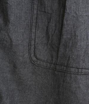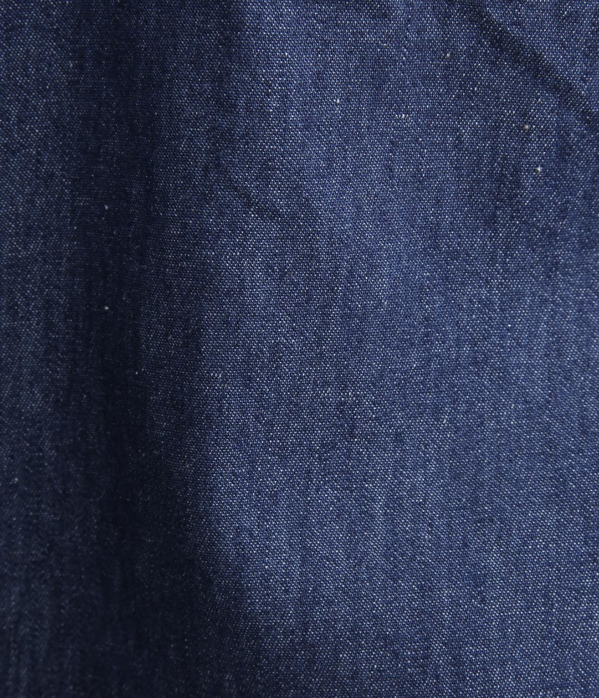 デニムにしては軽く、しなやかな落ち感が特徴的なコットン生地を採用。なめらかな表面感で、薄手ながらもほんのりとしたムラ感が奥行きを感じさせます。着るほどにやわらかさが増し、体になじんでいくのも魅力。