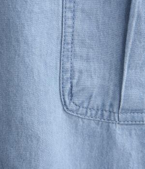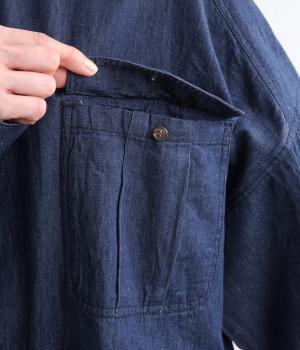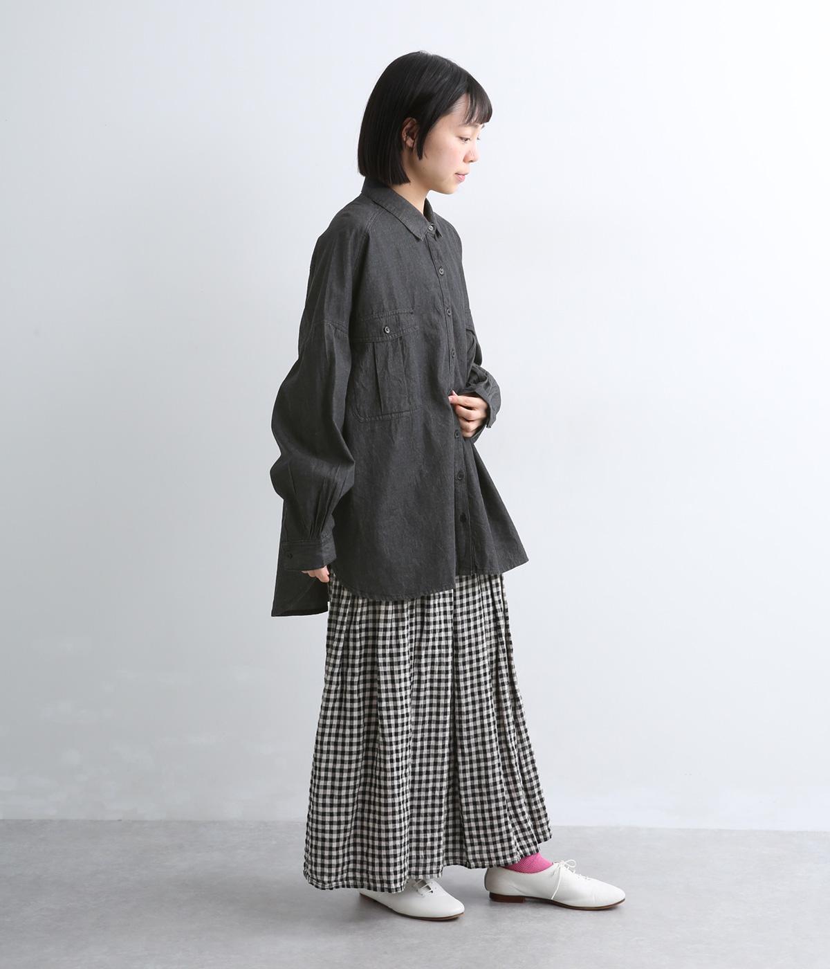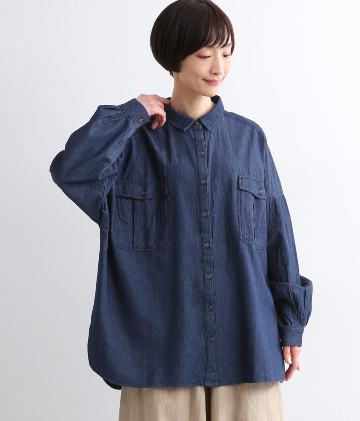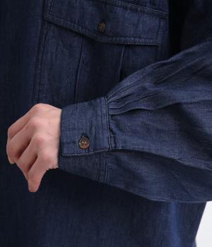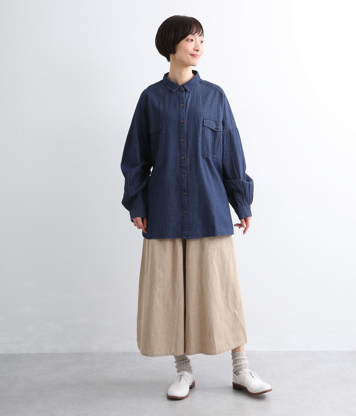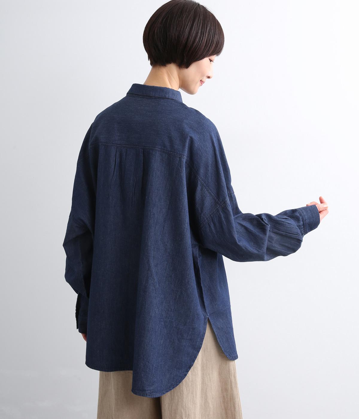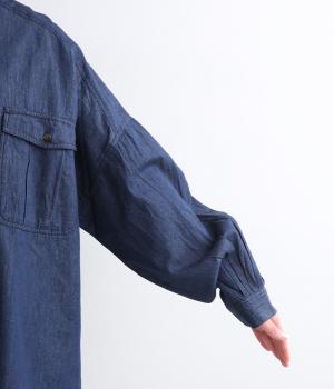 デニムにしては軽く、しなやかな落ち感が特徴的なコットン生地を採用。なめらかな表面感で、薄手ながらもほんのりとしたムラ感が奥行きを感じさせます。着るほどにやわらかさが増し、体になじんでいくのも魅力。