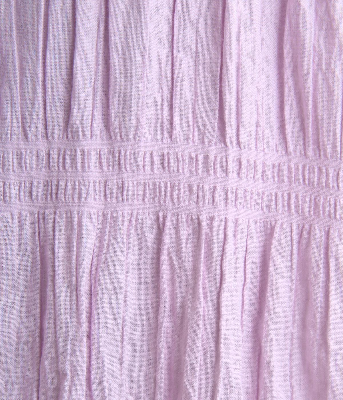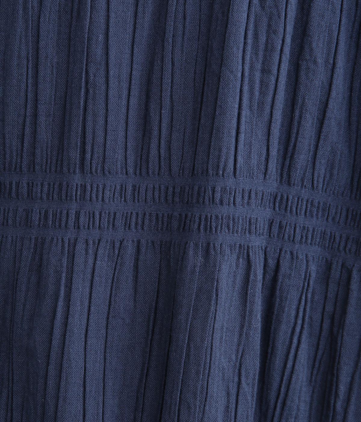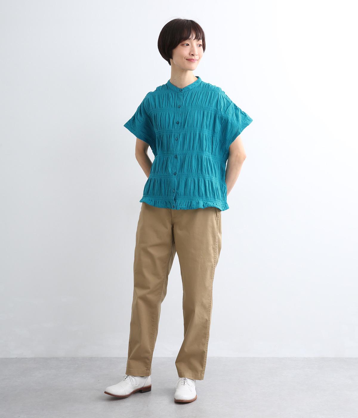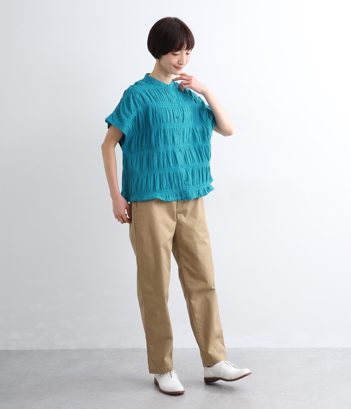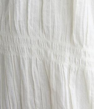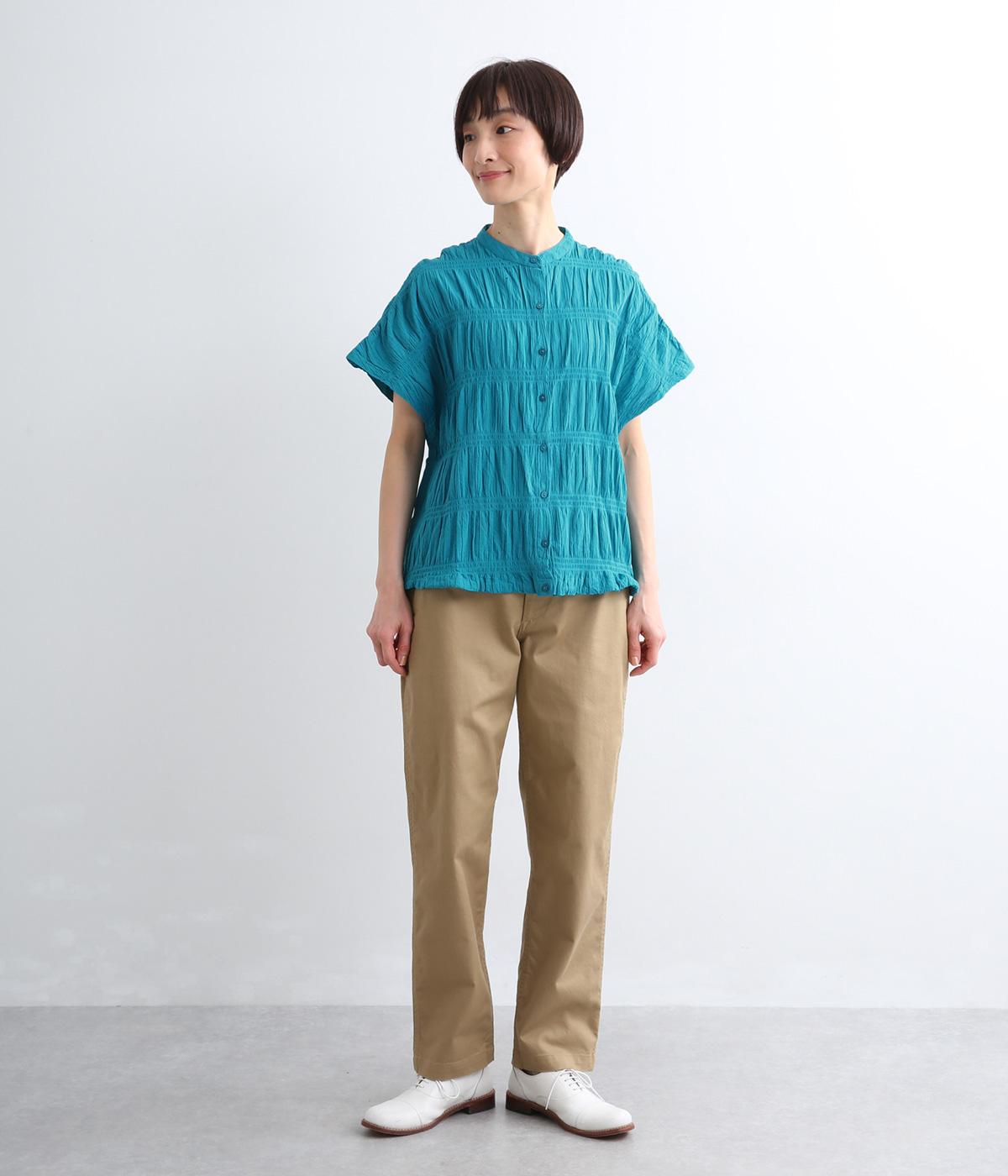 波打つような自然な凹凸感が特徴的な一枚。裾をしぼれるデザインで表情に変化をつけられます。ふわっと広がる袖は風通しがよく、適度な華やかさもプラス。前あき仕様でジレのようにレイヤードした装いも◎。