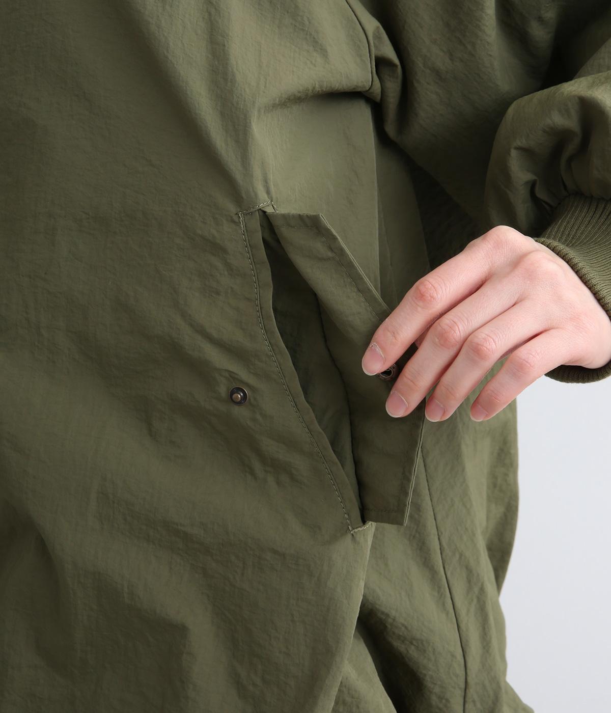 シャカシャカとした小気味いい肌触りやセミマットな質感が特徴的なナイロン生地を使用。タフでデイリー使いしやすく、軽量仕上げで羽織りやすい作りです。すべりのいい裏地つき。