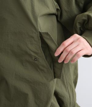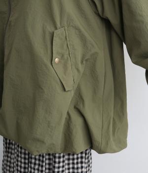 ラグラン袖に裾バルーンで全体的に丸みを持たせ、タフな中にもやさしさを感じさせる一着。袖口リブ仕様で肌あたり良くフィットし、防風効果も◎。ヒップにかかる長め丈にシワも気になりにくい質感で、畳んで持ち歩き用としても重宝。
