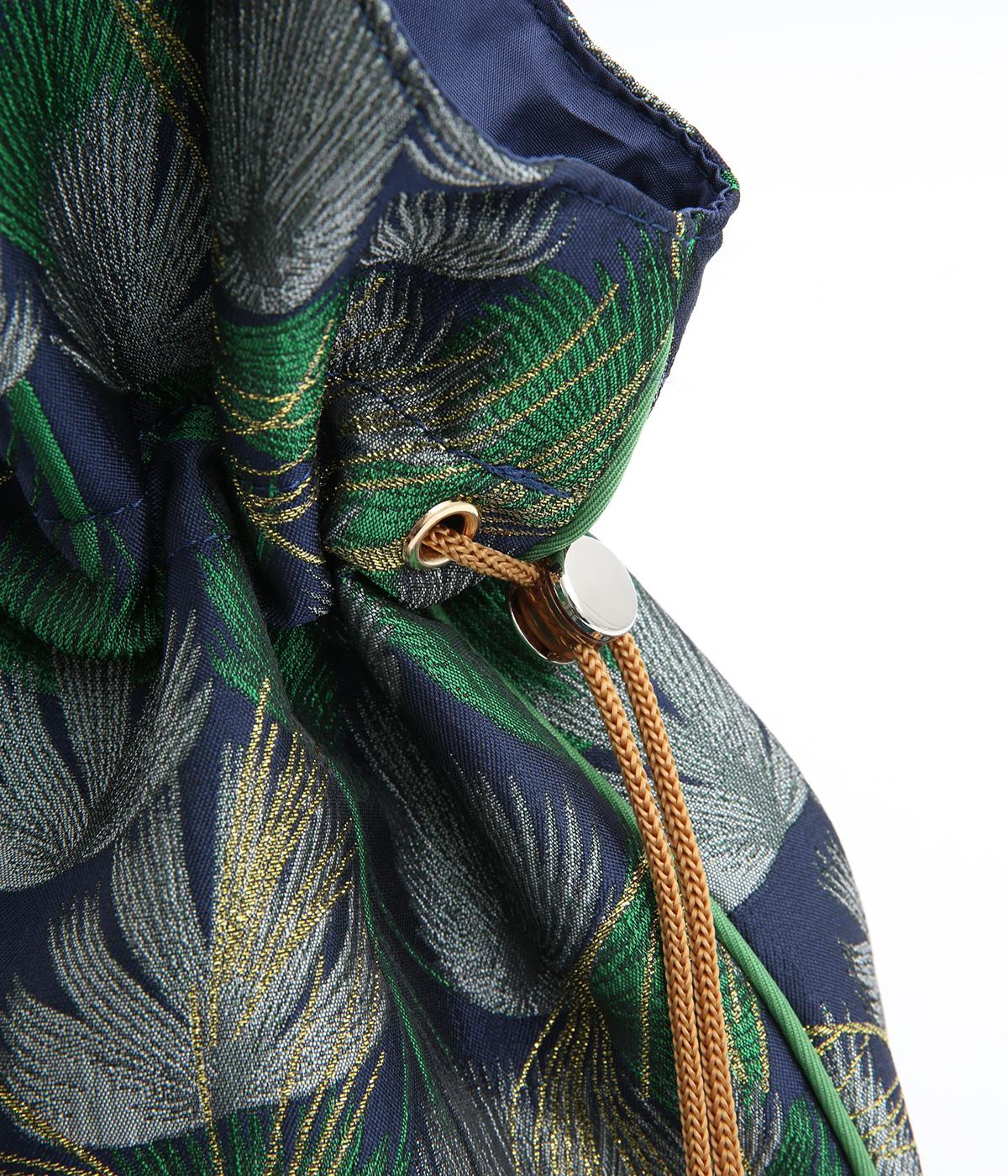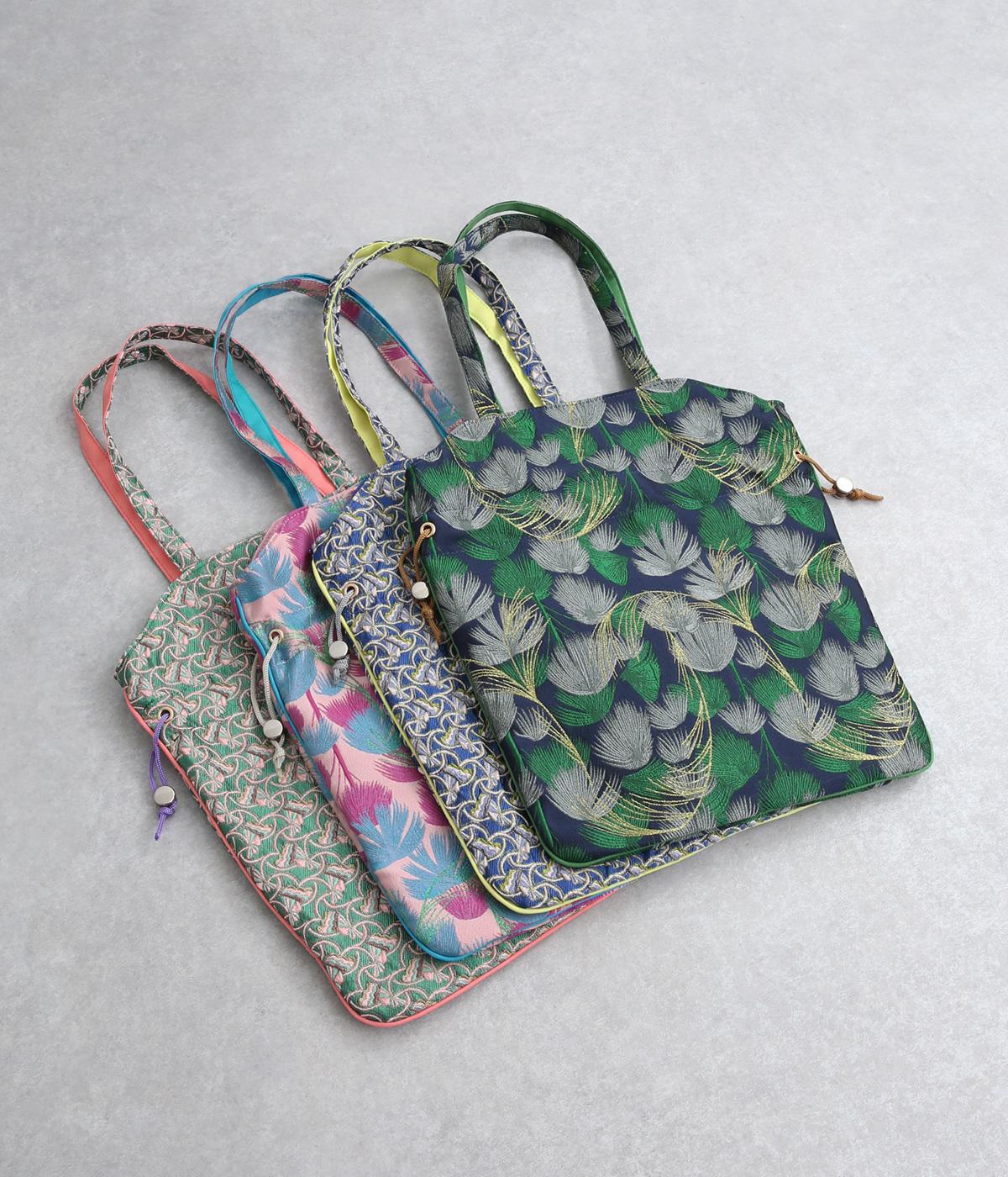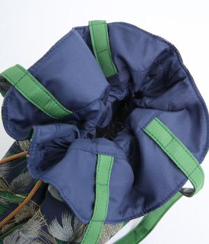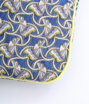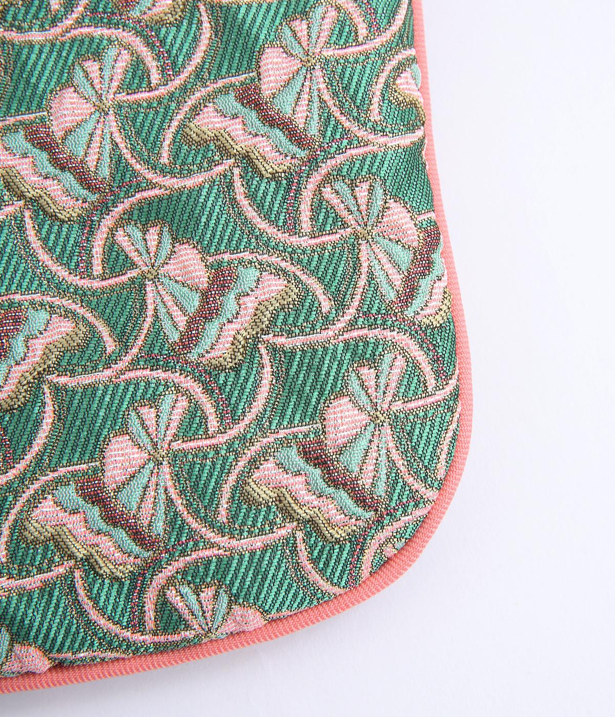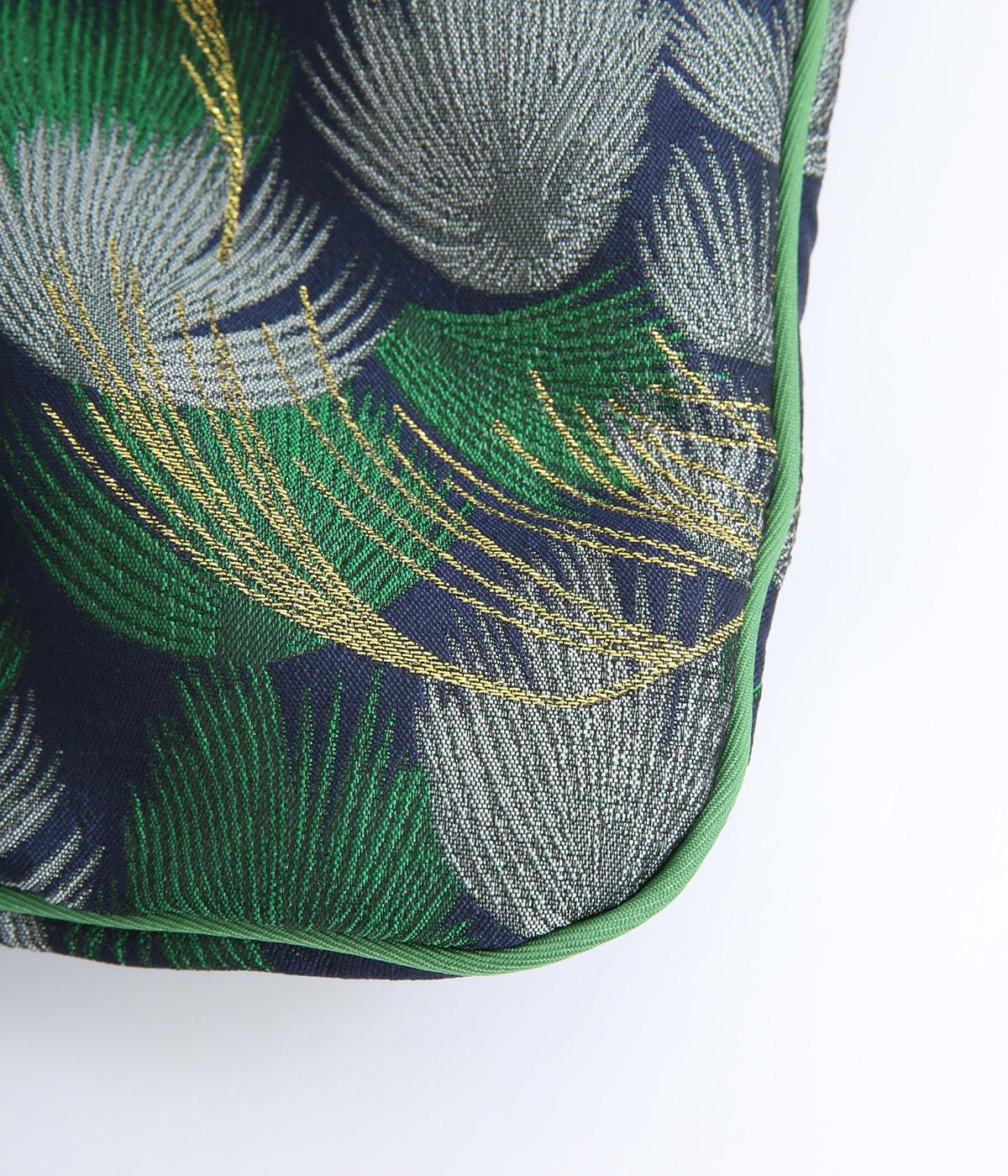 ラメ糸をまじえて鮮やかに仕上げたジャカード生地を贅沢に使用しています。ポリエステル製なので耐久性にも優れていて、お洒落感がありながらも実用性も◎。