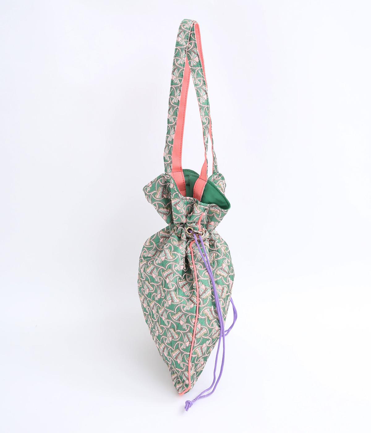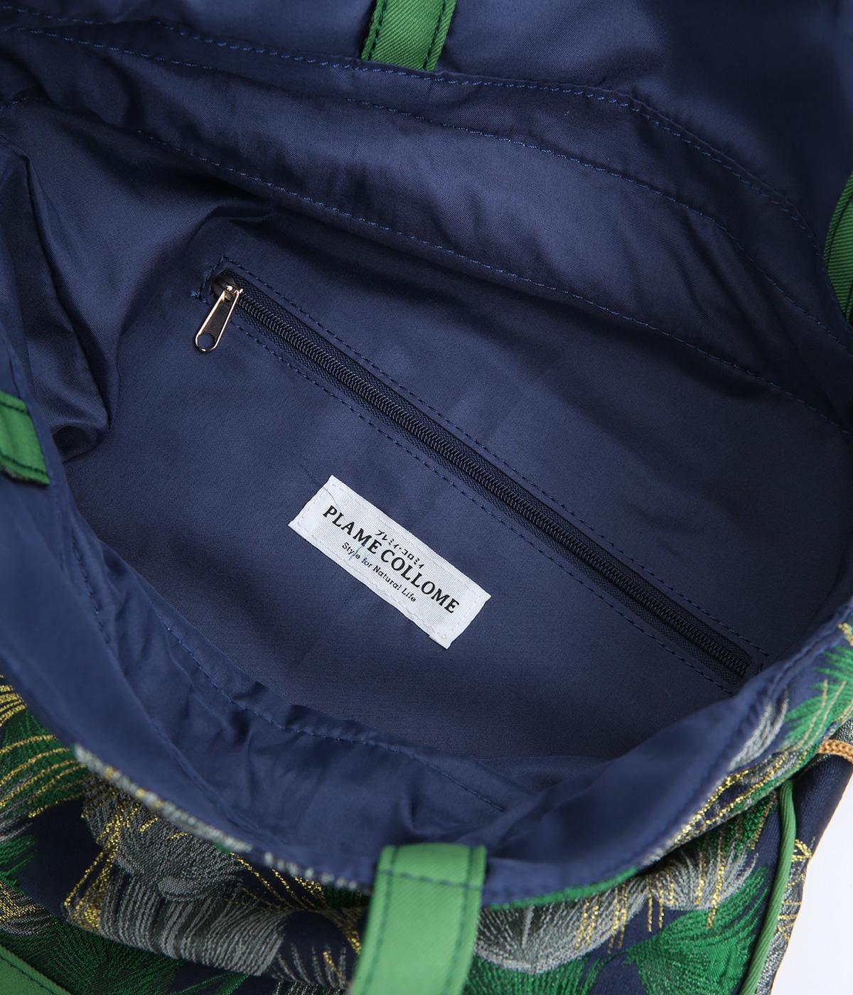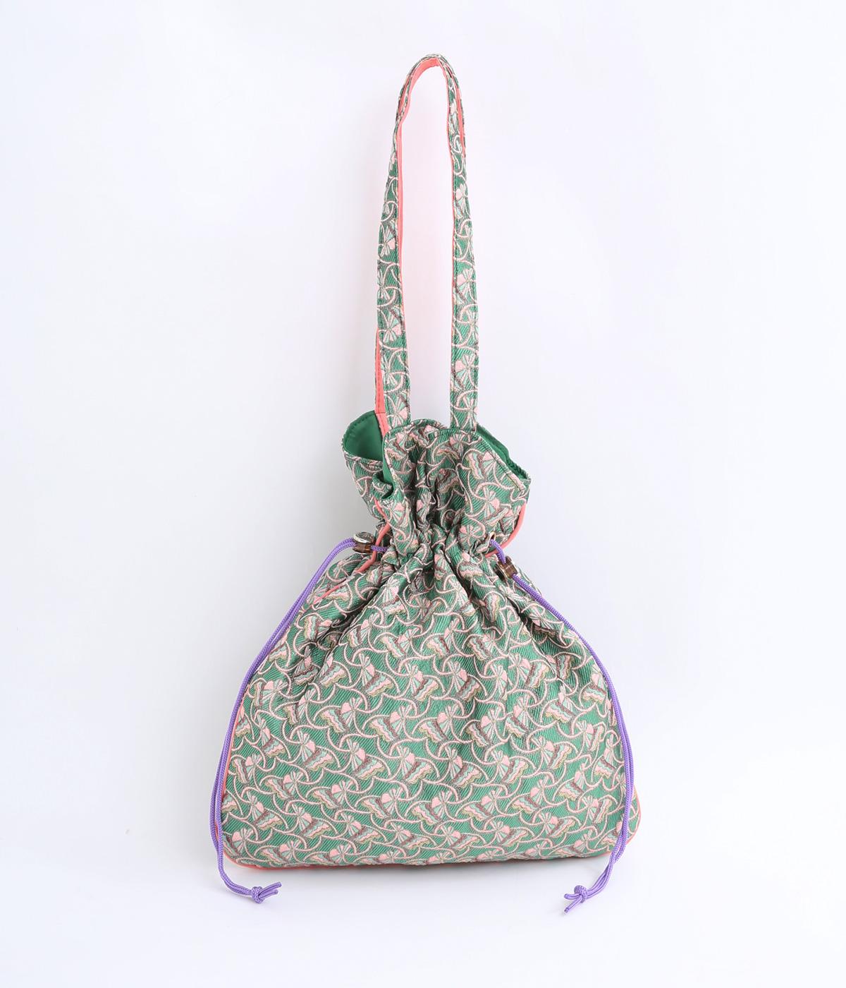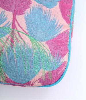 ラメ糸をまじえて鮮やかに仕上げたジャカード生地を贅沢に使用しています。ポリエステル製なので耐久性にも優れていて、お洒落感がありながらも実用性も◎。