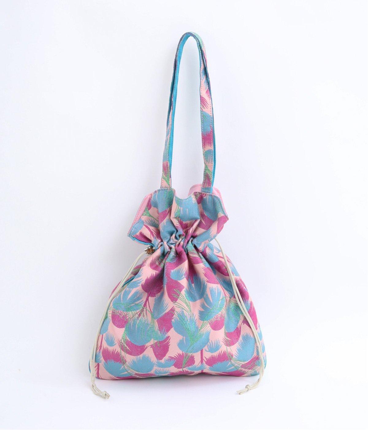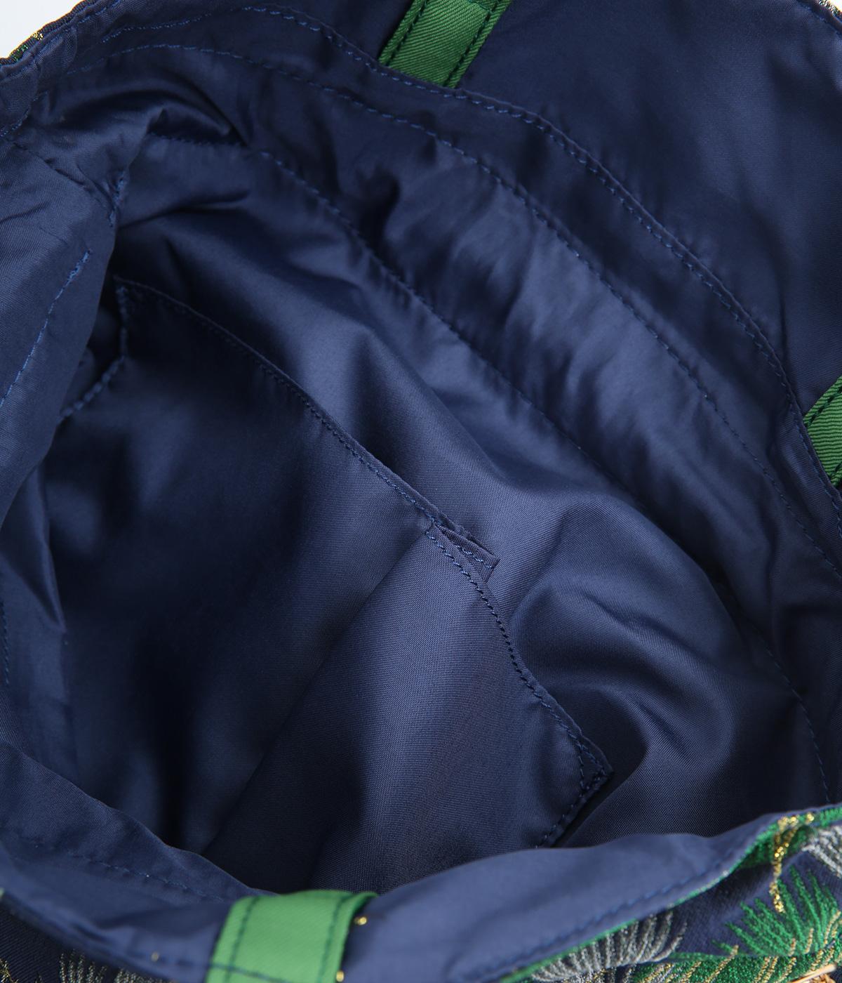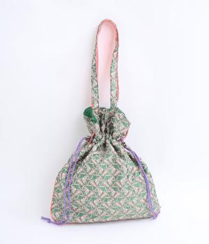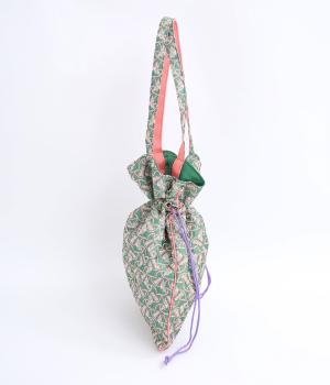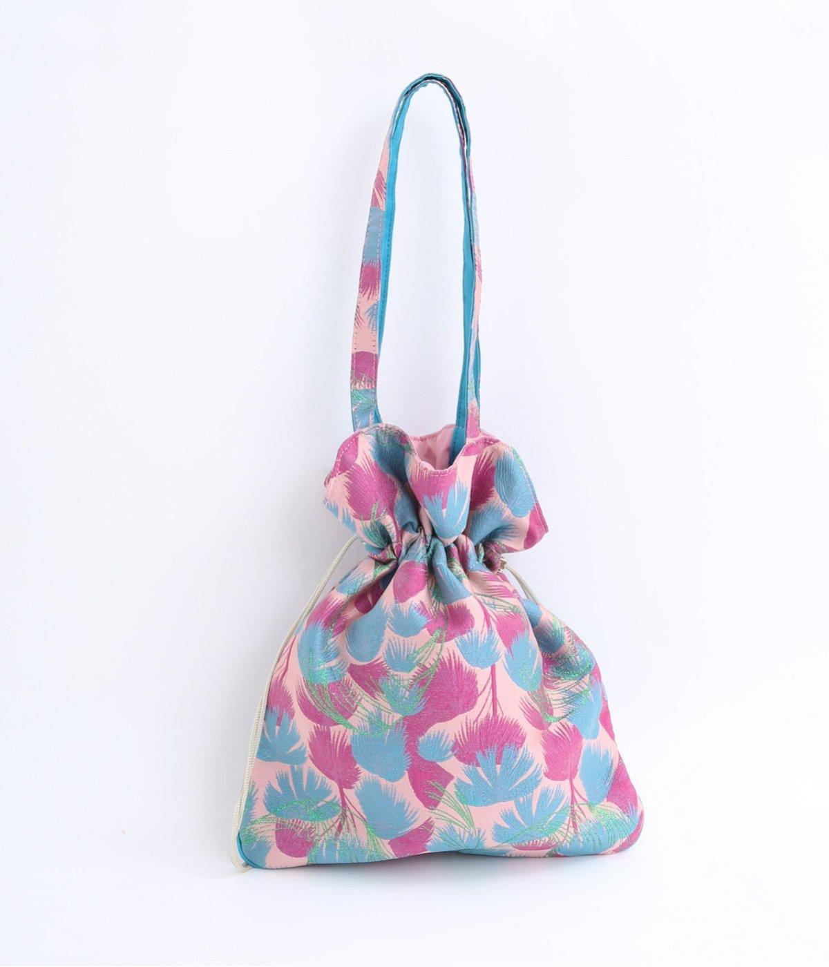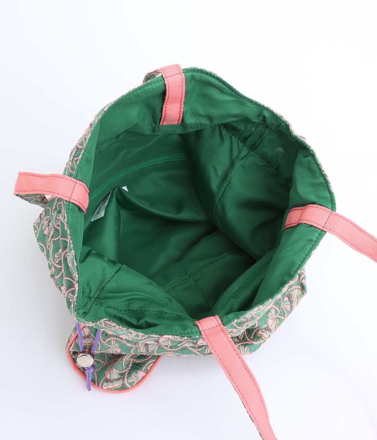 ラメ糸をまじえて鮮やかに仕上げたジャカード生地を贅沢に使用しています。ポリエステル製なので耐久性にも優れていて、お洒落感がありながらも実用性も◎。