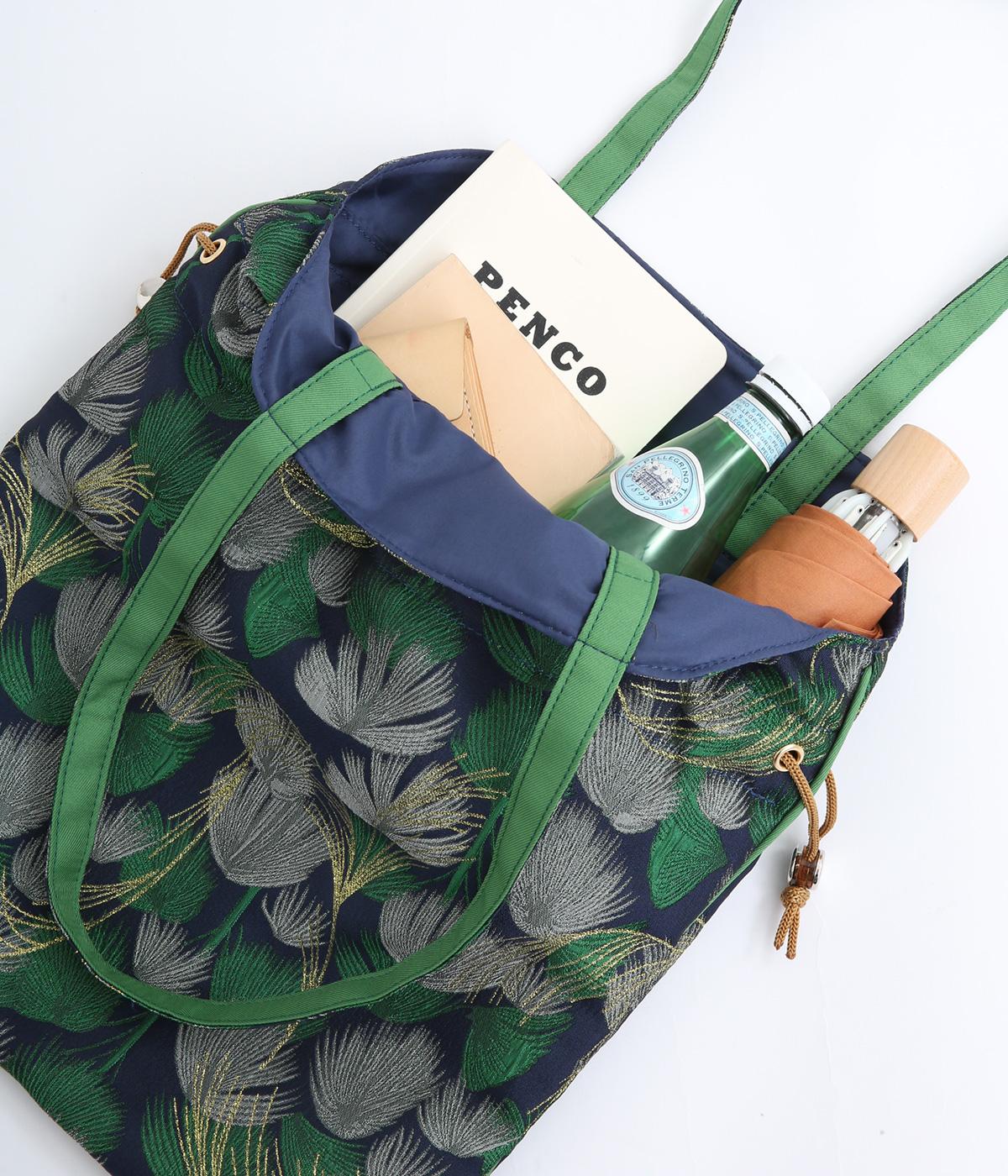 スタンダードなスクエア型にも、きゅっと絞って巾着型にもなるトートバッグです。巾着紐はストッパーもついているので、荷物をしっかり収納してくれます。内ポケットもついていて使い勝手が良く、お洒落を楽しみながらデイリーに活躍してくれます。