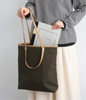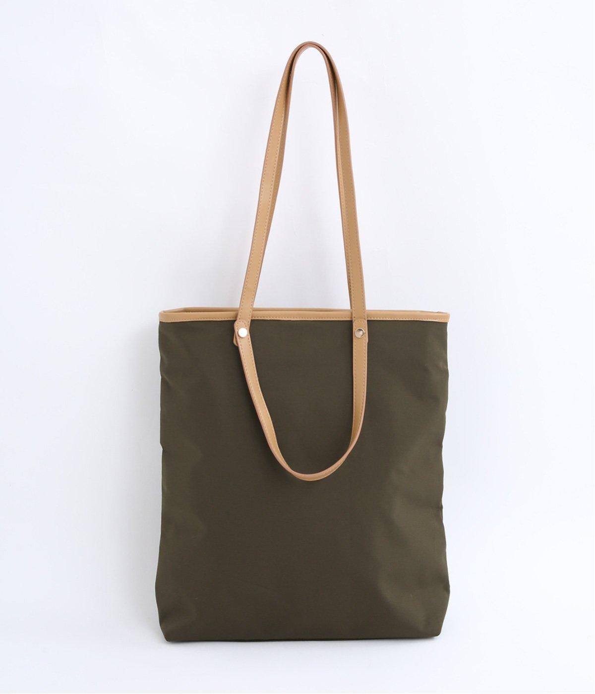 ほんのりとした光沢がリッチ感のある生地ですっきりと仕上げました。ポリエステル製なので耐久性も高く、ハンドルはヴィーガンレザーで使い勝手も◎。