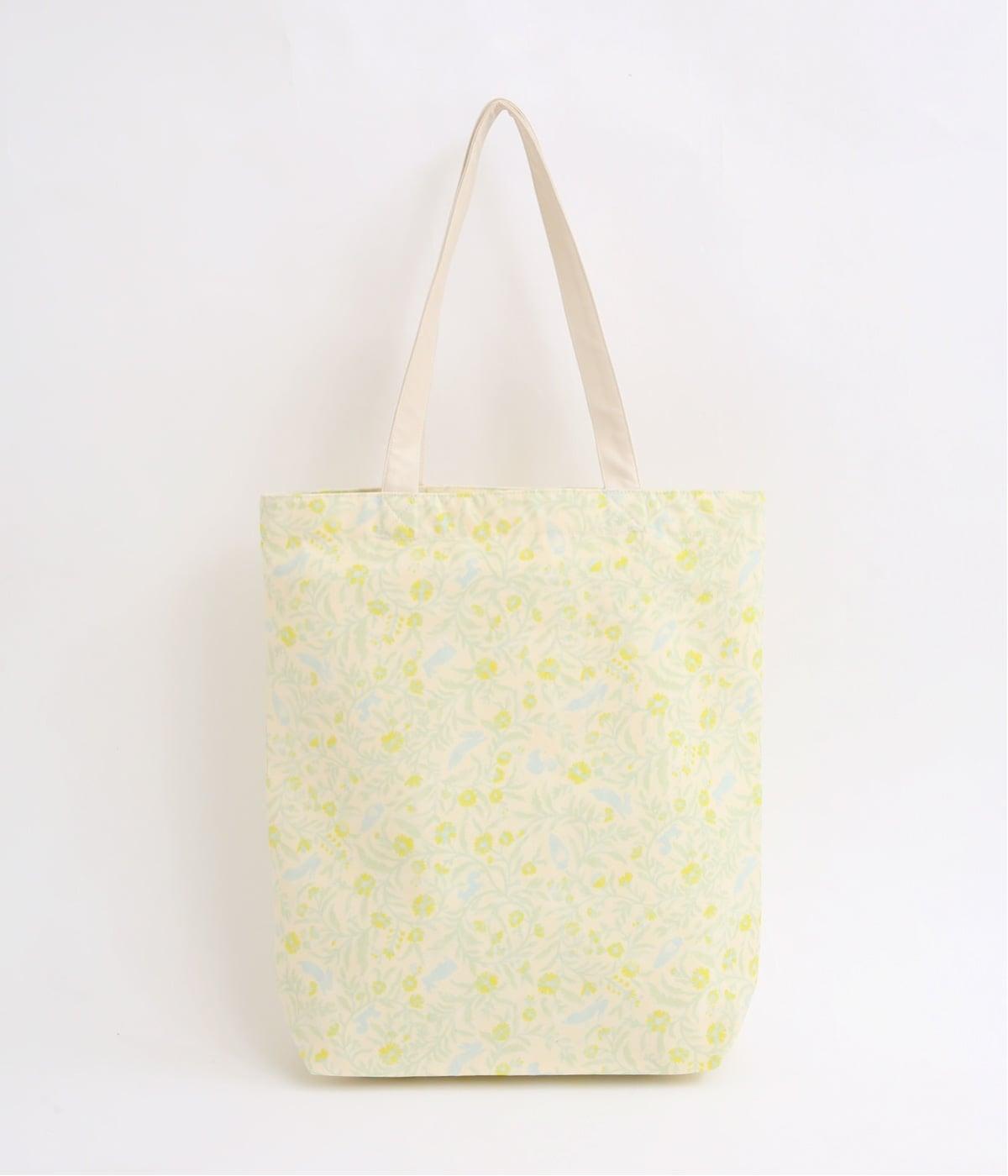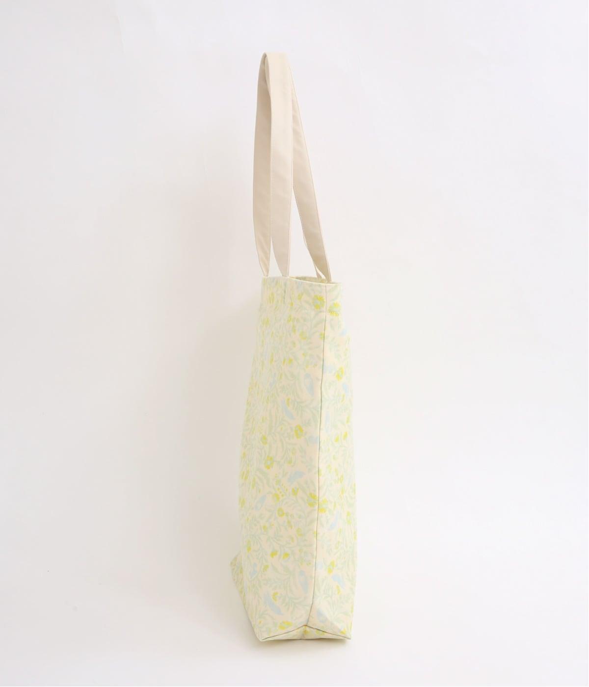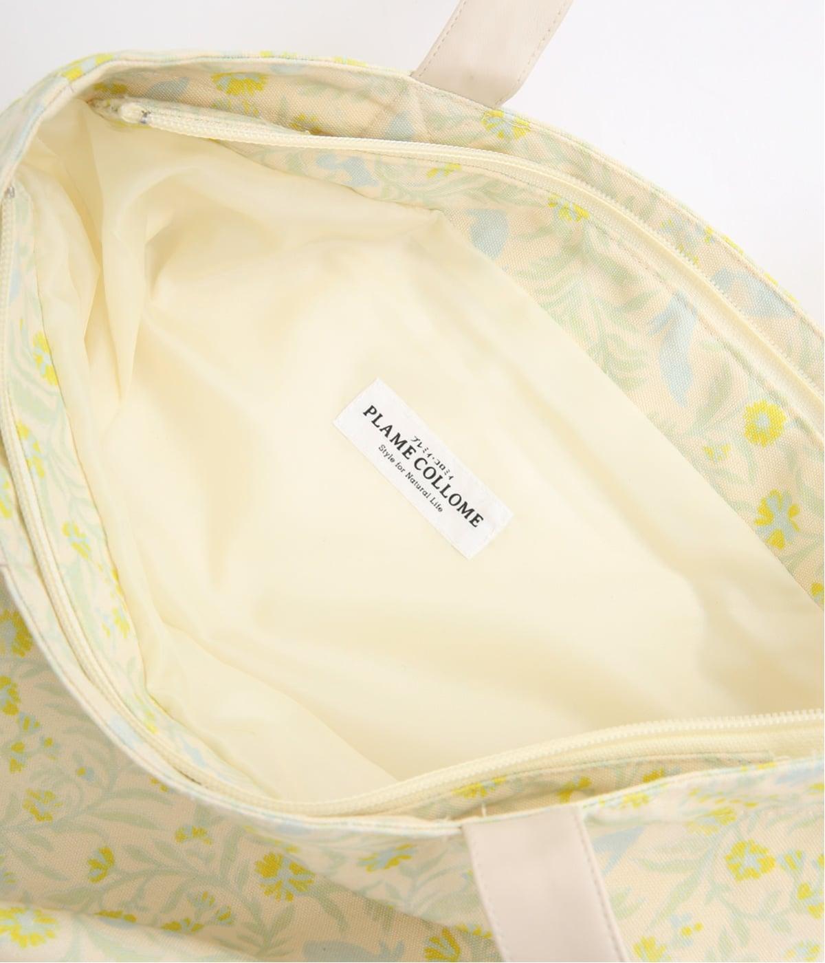 キャンバスのようなナチュラル感がありながらも、やわらかくなじみのいいプリント生地を使用。ハンドルや内布には光沢感のある生地を配してさり気ないコントラストに。
