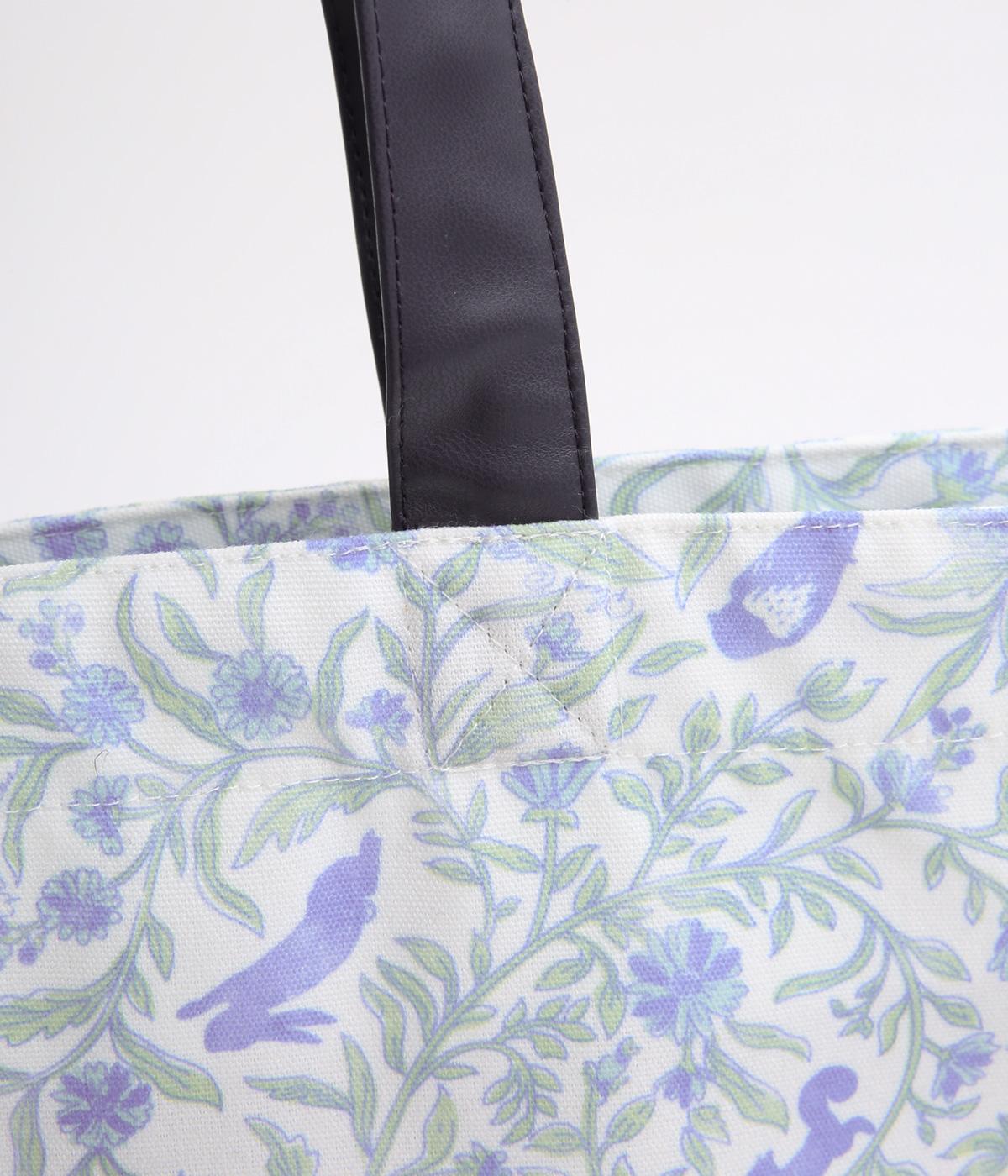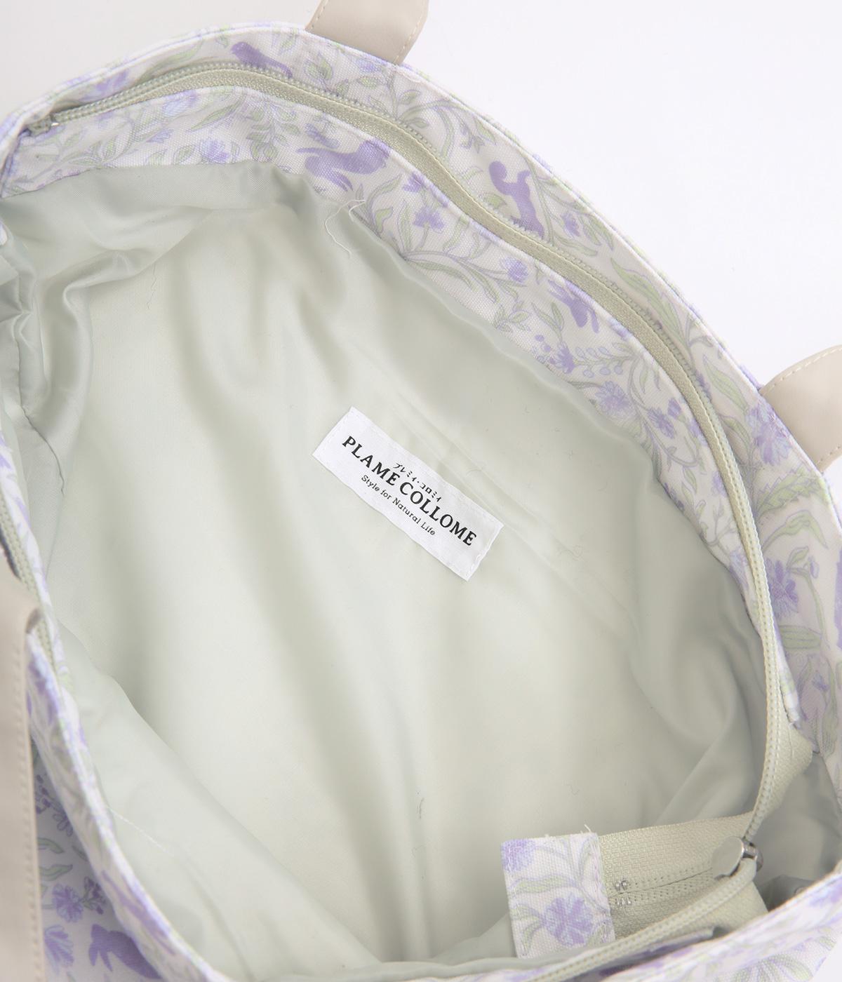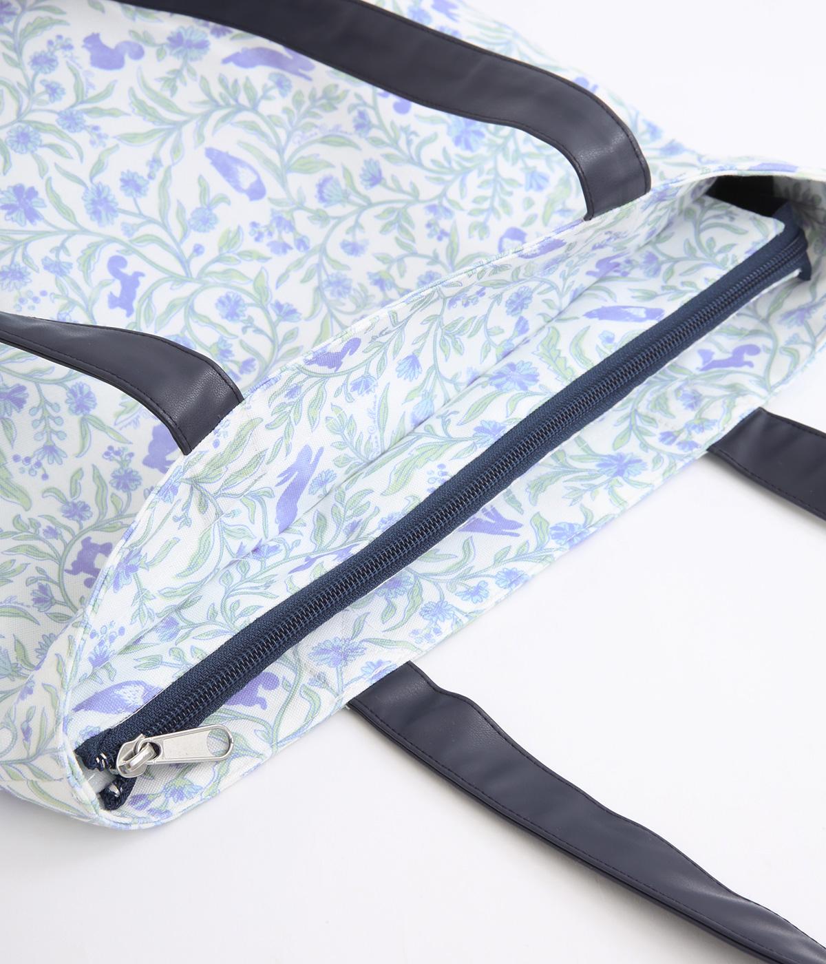 森の仲間たちが集まった、やさしい色あいのプリントが乙女心をくすぐるトートバック。ナチュラルスタイルに取り入れやすく、ほどよくポイントになるカラー展開です。トップはファスナーつきで中身が見えない安心設計。