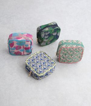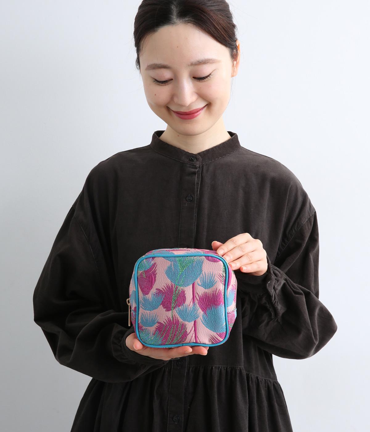 すっきりとしたシンプルなスクエア型が使い勝手のいいポーチです。ファスナーがしっかり開くコの字タイプなので中身の出し入れもスムーズ。内ポケットもついているので整理しやすく、メイクアイテムや裁縫道具などさまざまな用途で活躍します。