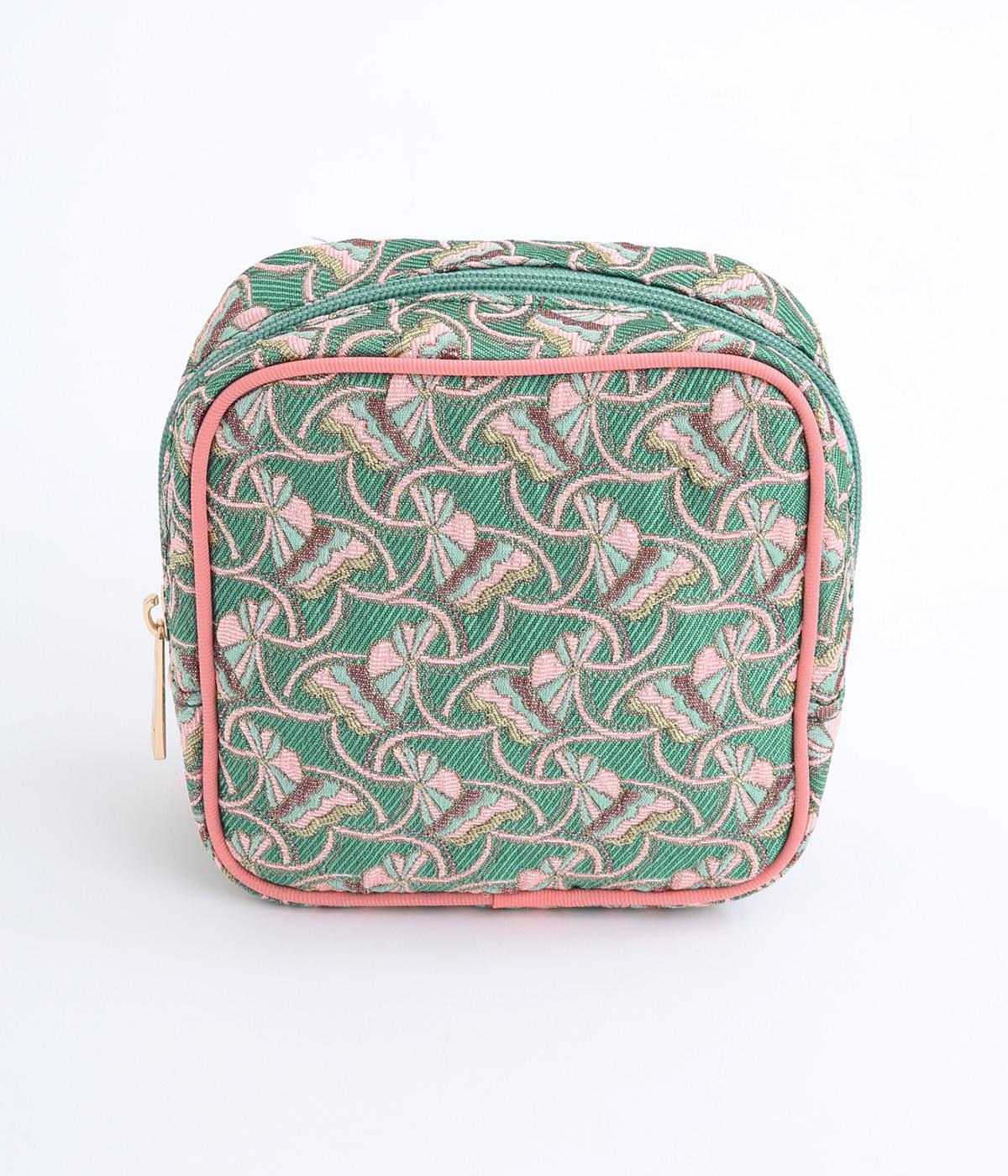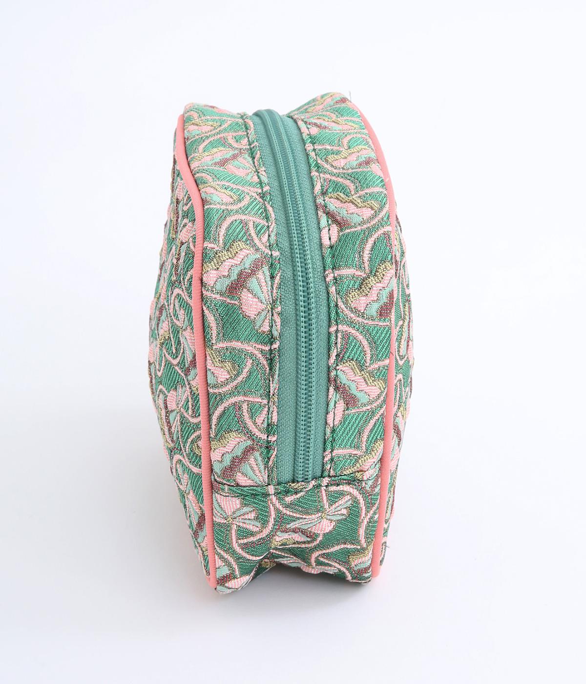 ラメ糸をまじえて鮮やかに仕上げたジャカード生地を贅沢に使用しています。ポリエステル製なので耐久性にも優れていて、お洒落感がありながらも実用性も◎。