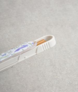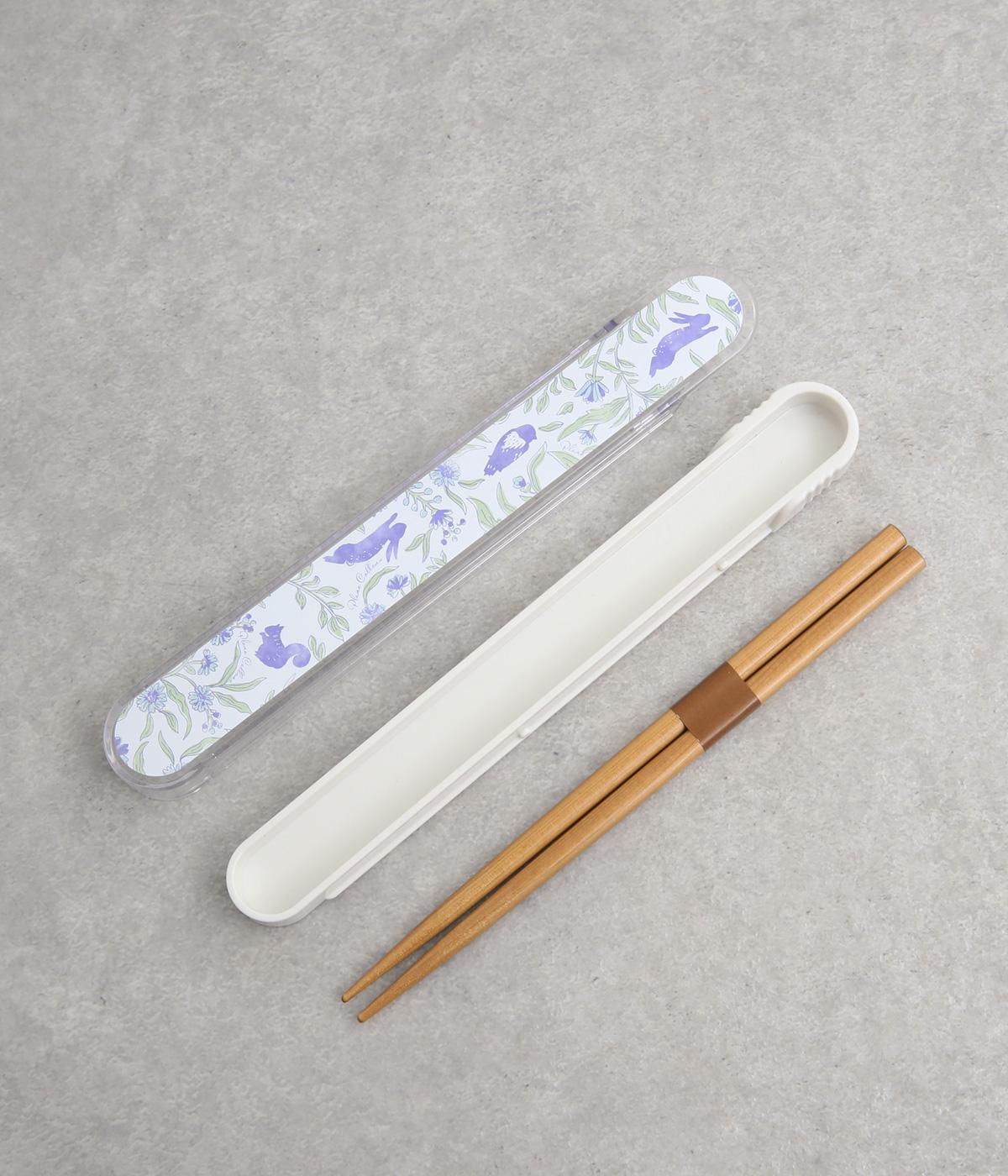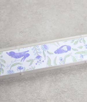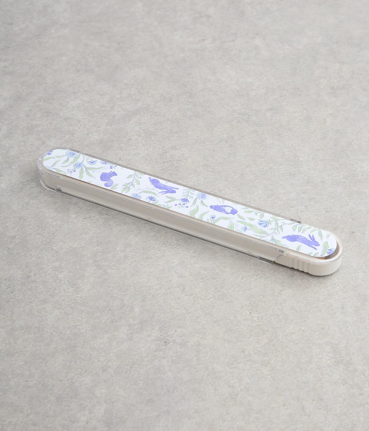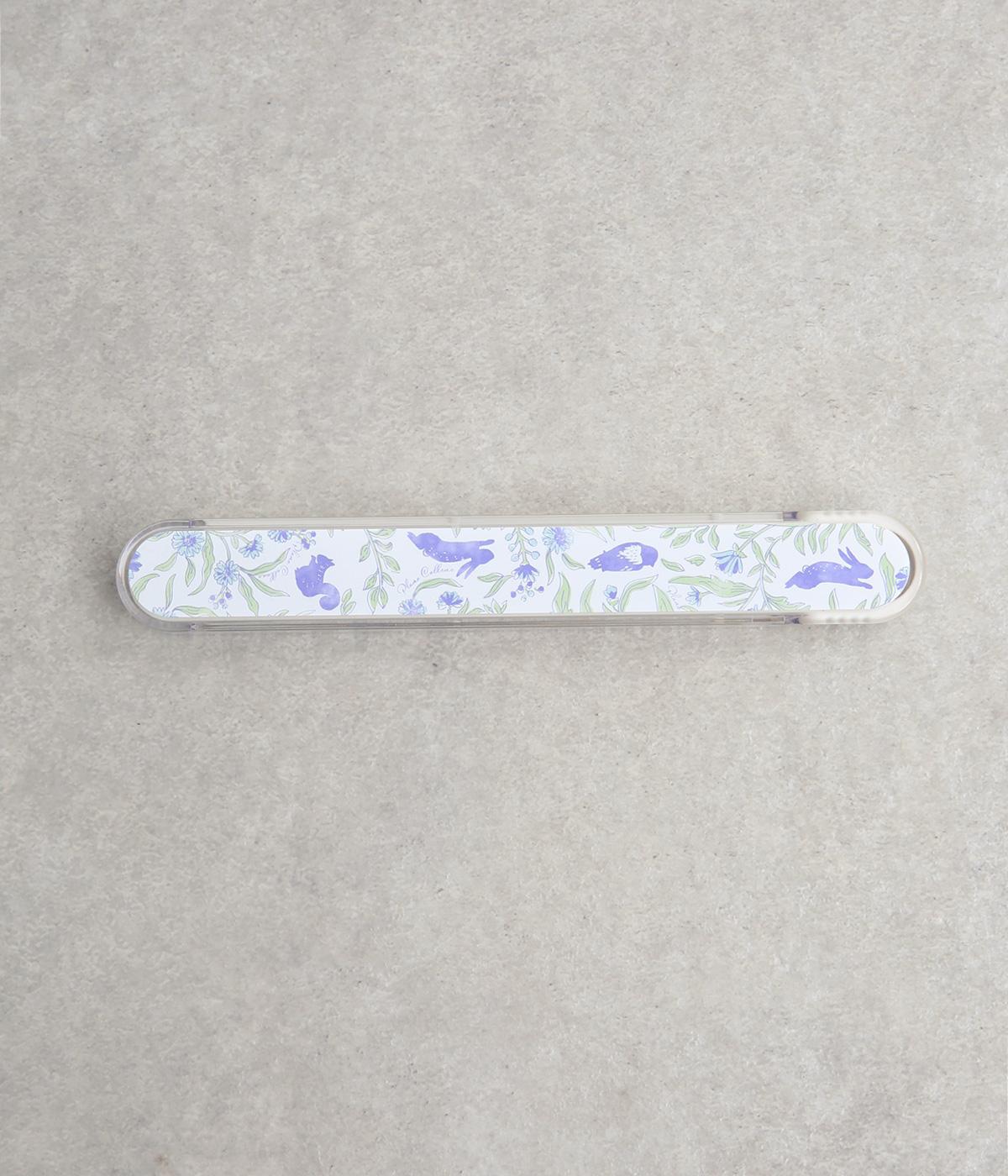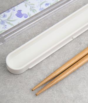森の仲間たちを描いたブルーのプリント柄が可愛らしさとさわやかさのあるお箸箱。グリップしやすい先端設計のスライド式なので開閉しやすくなっています。箱とフタも独立して食器洗いもイージー。