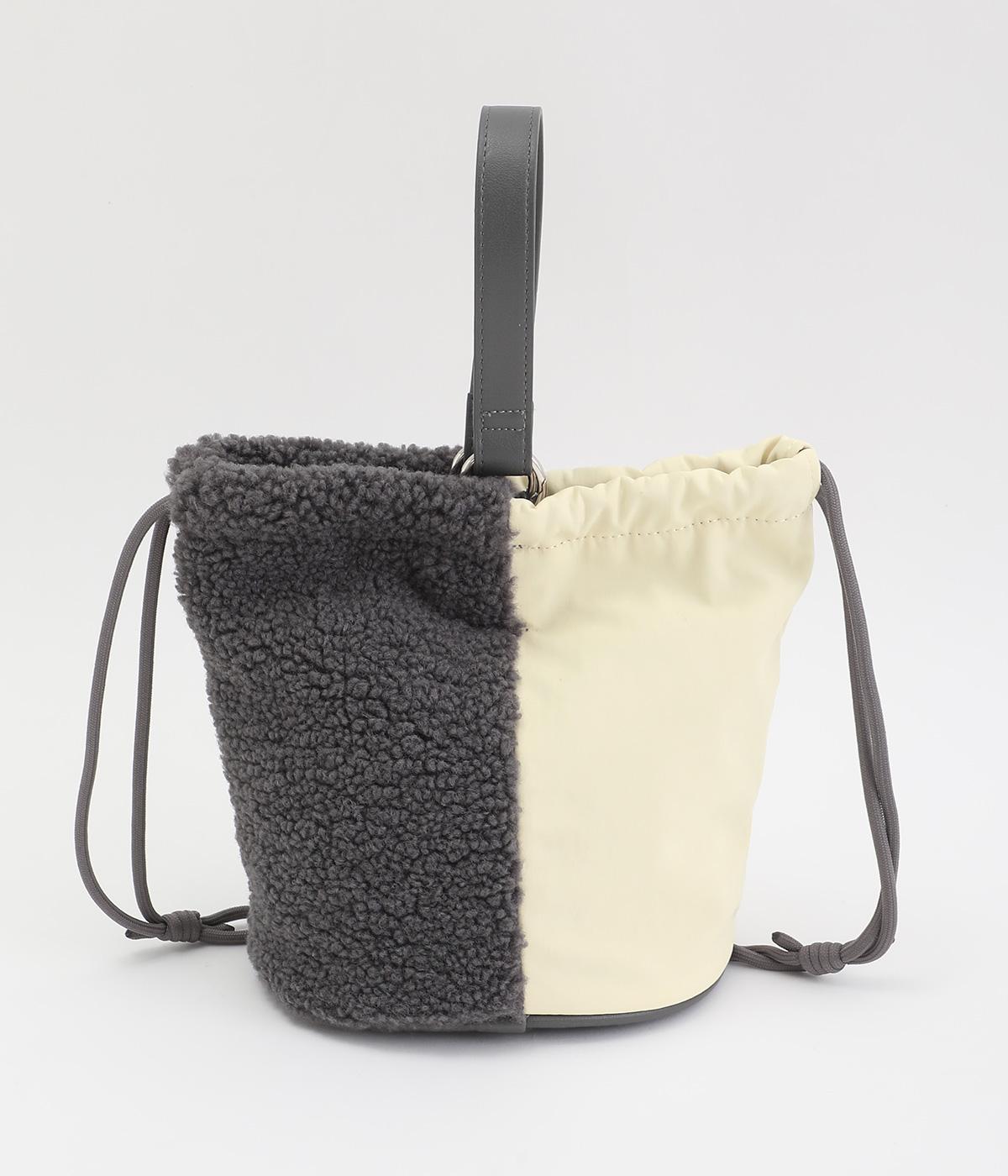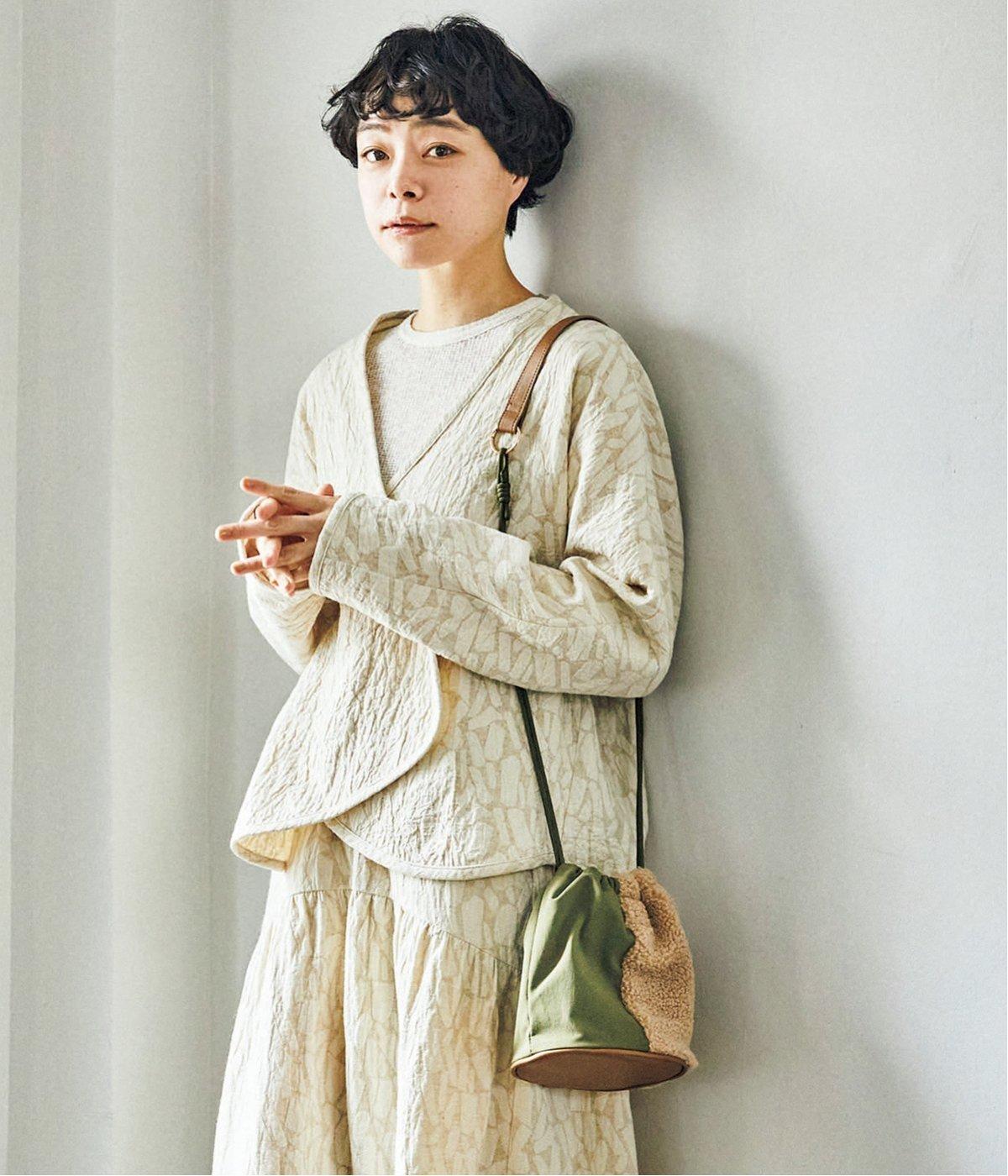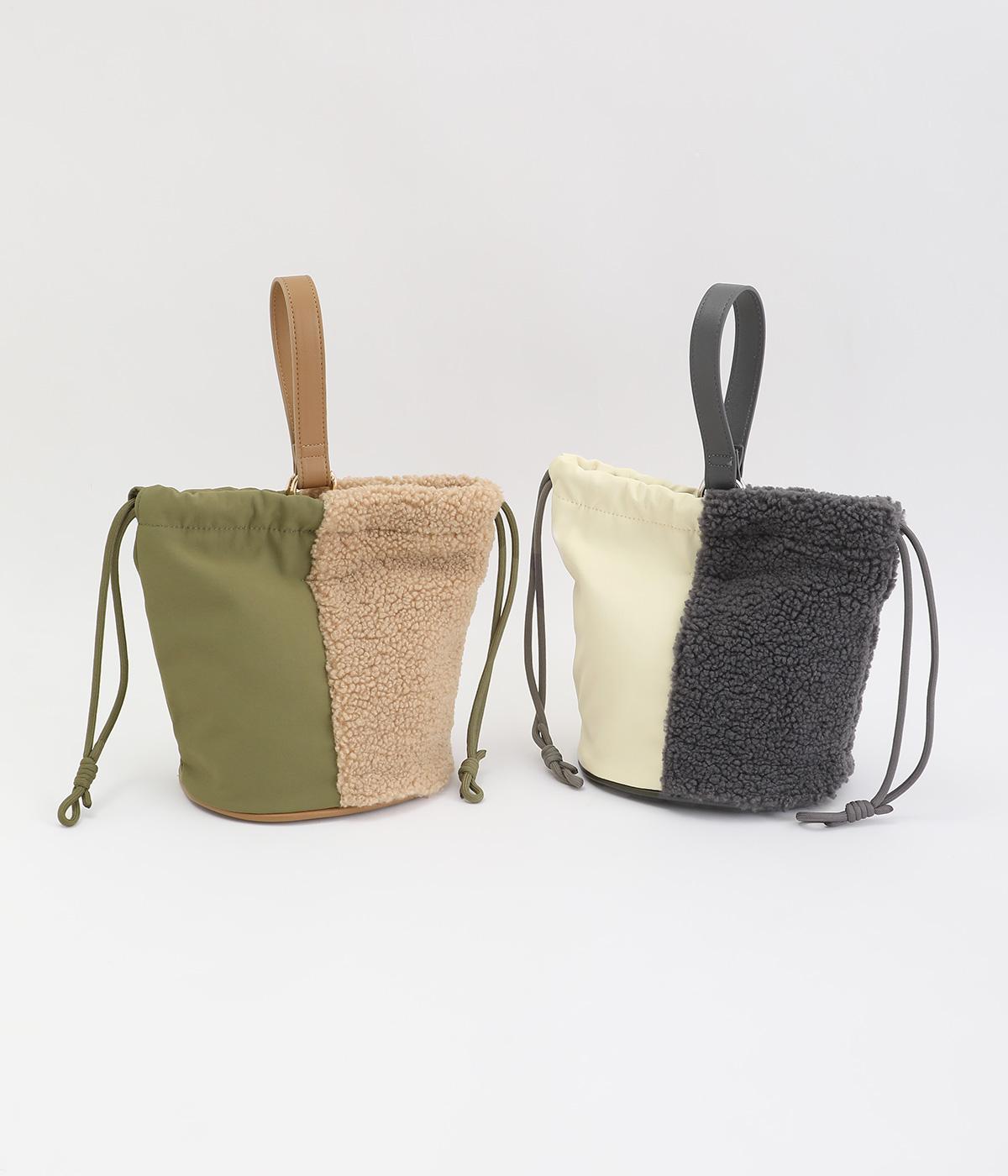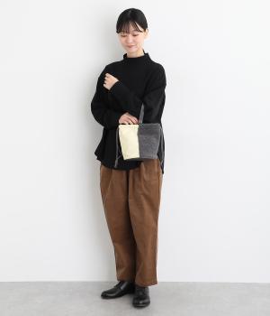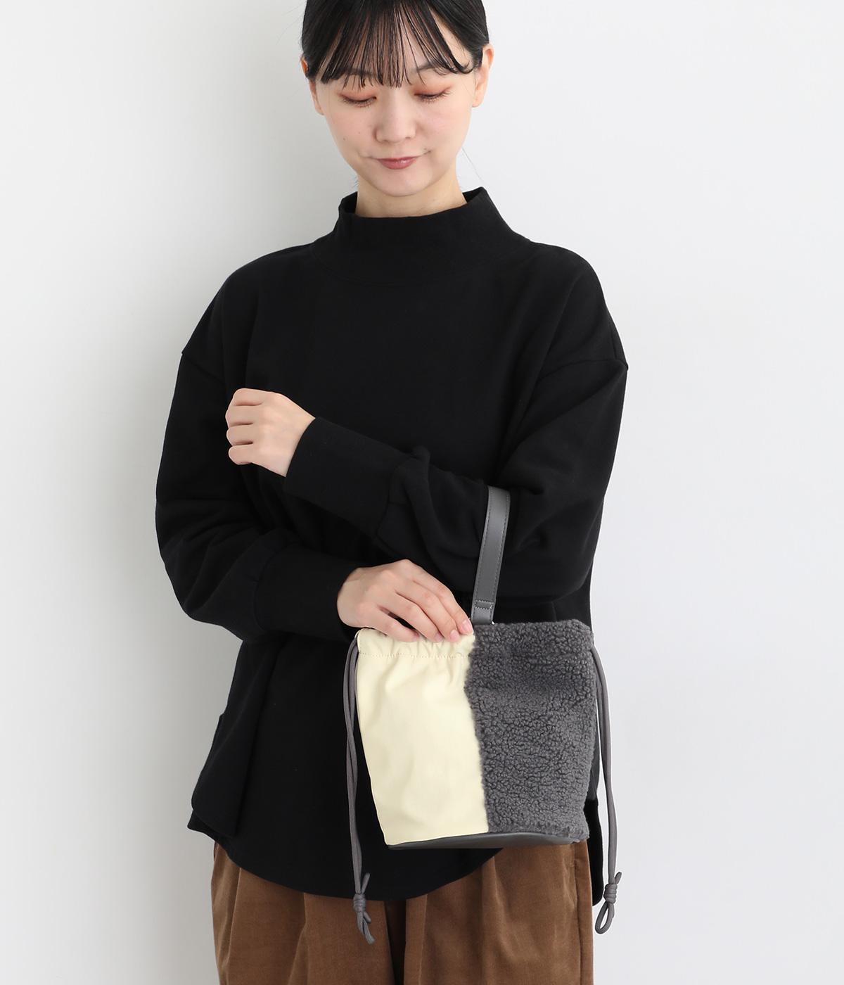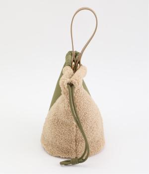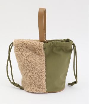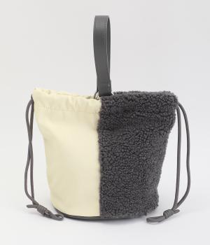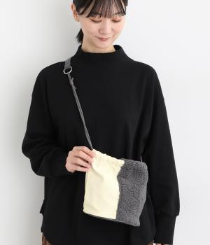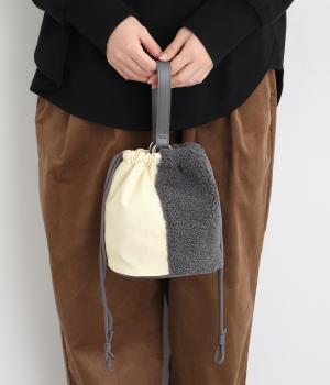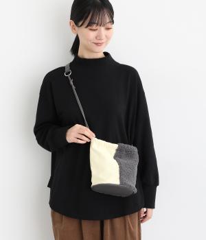 左右で異素材を組み合わせたアシンメトリーなデザインが目を惹きます。洗練された印象を与えるワンハンドルは取り外し可能で、巾着紐につなげれば肩掛けも可能な2way仕様になっています。マチつきでちょっとしたお出掛けの必需品もすっぽり収納。
