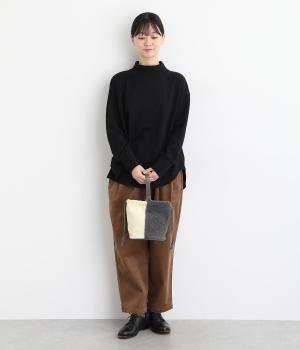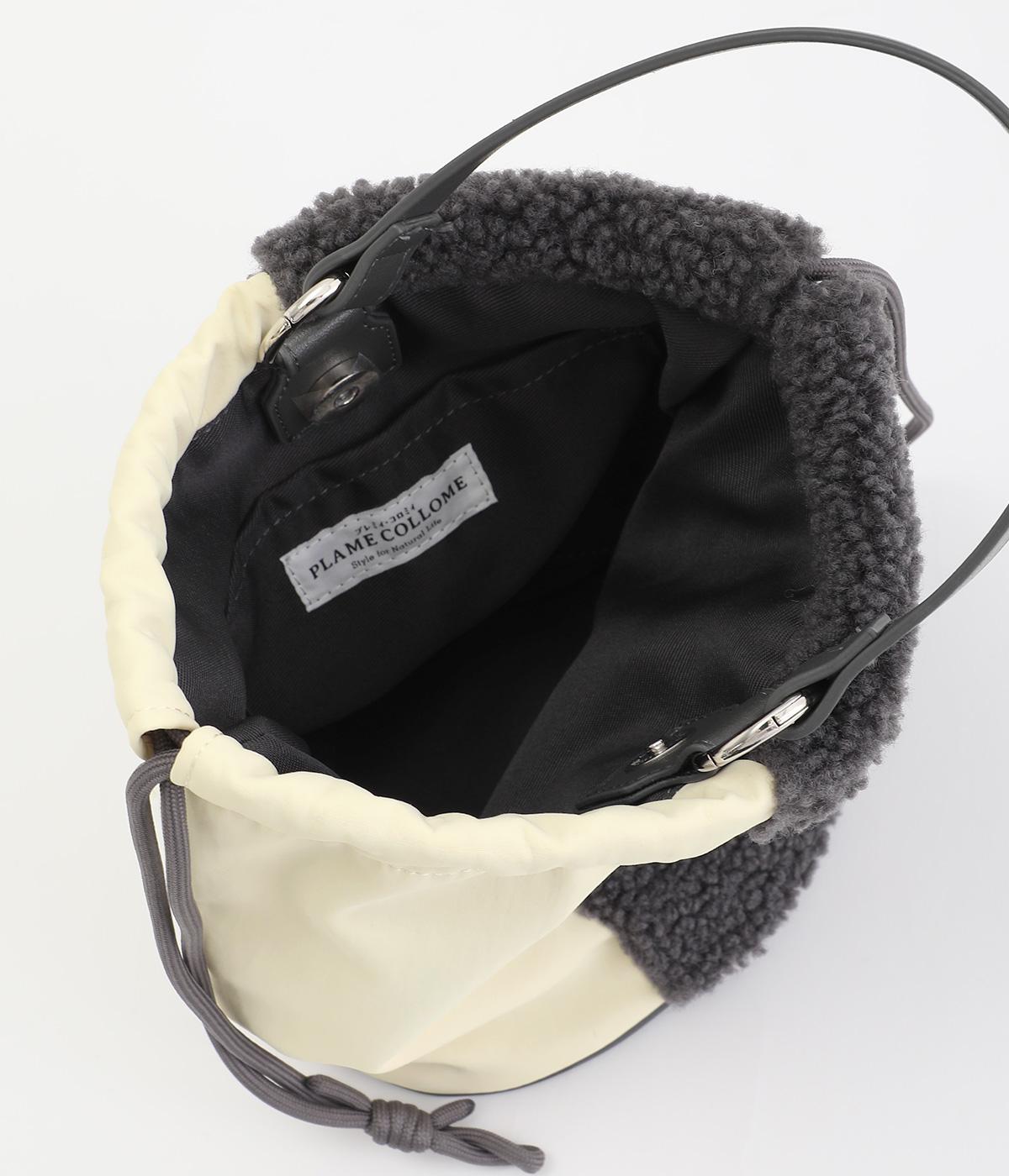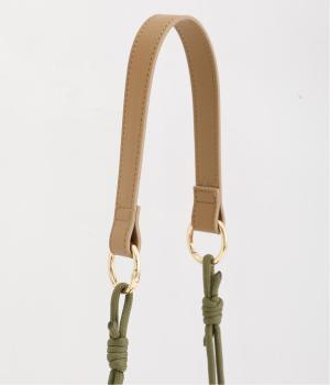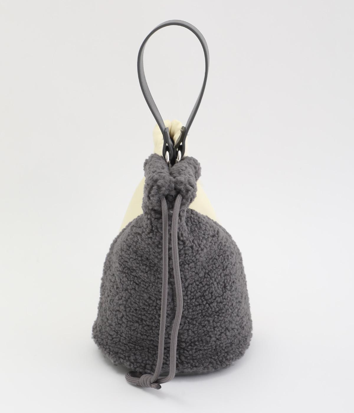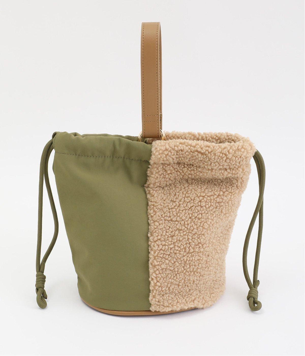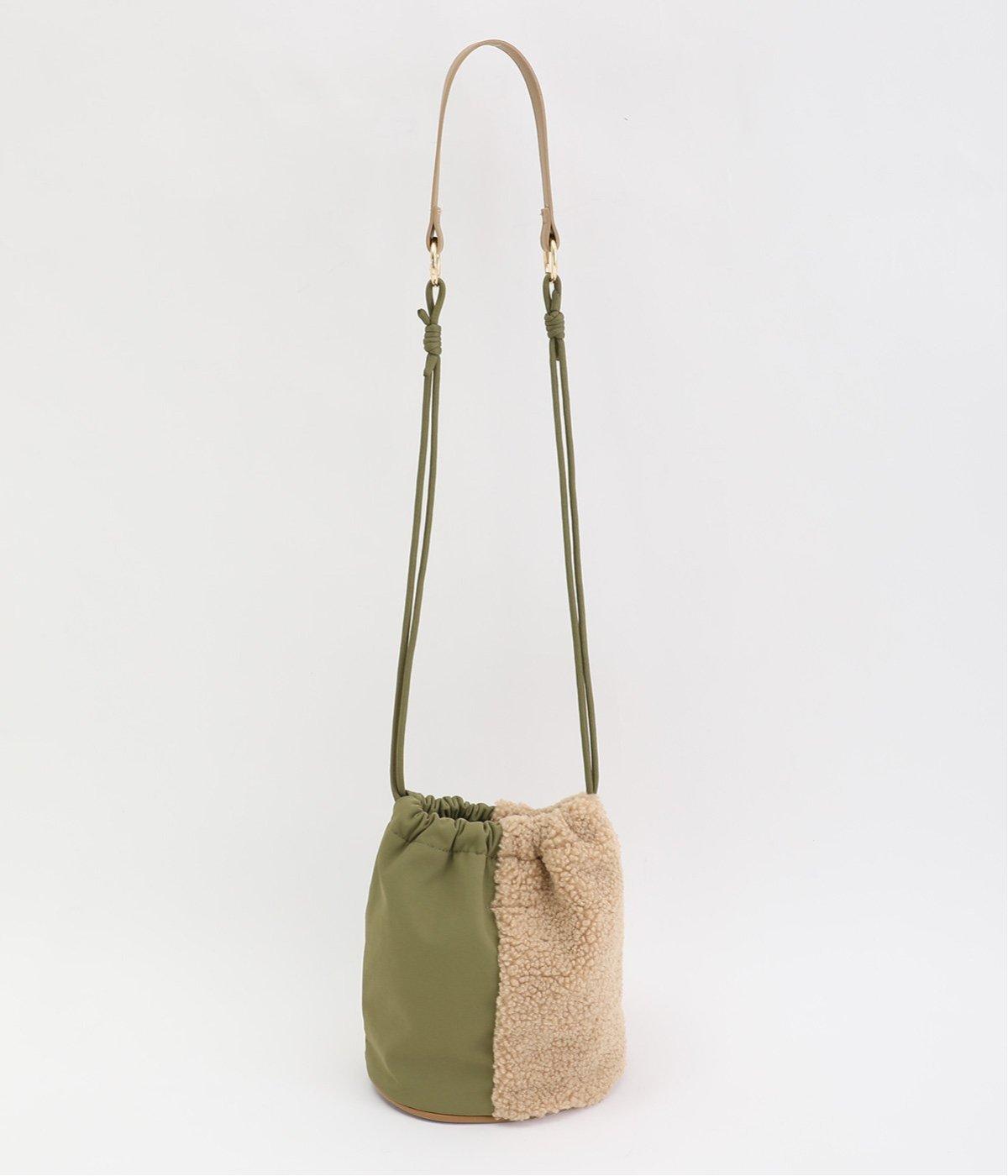 左右で異素材を組み合わせたアシンメトリーなデザインが目を惹きます。洗練された印象を与えるワンハンドルは取り外し可能で、巾着紐につなげれば肩掛けも可能な2way仕様になっています。マチつきでちょっとしたお出掛けの必需品もすっぽり収納。