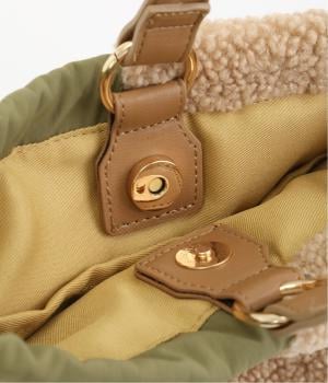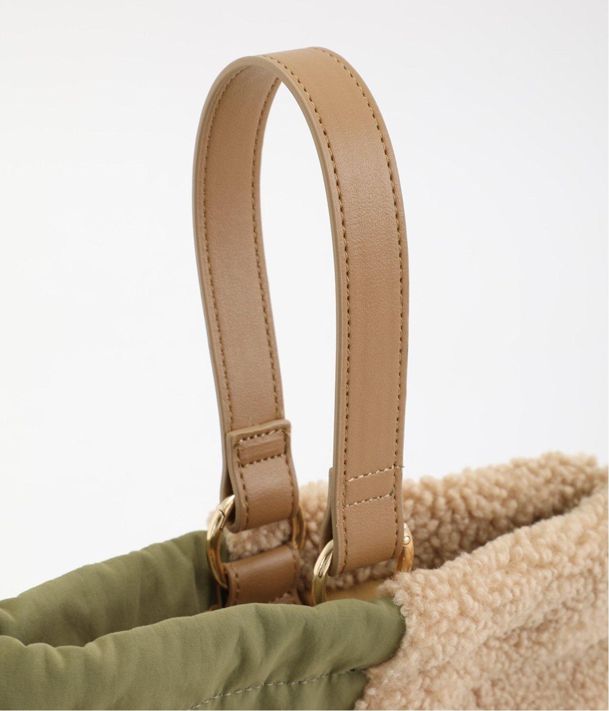 タフな印象を与えるナイロンと可愛らしい印象を与えるポコポコとした異素材を組み合わせました。合皮のハンドルや内生地つきで使い勝手のいい仕上がりです。