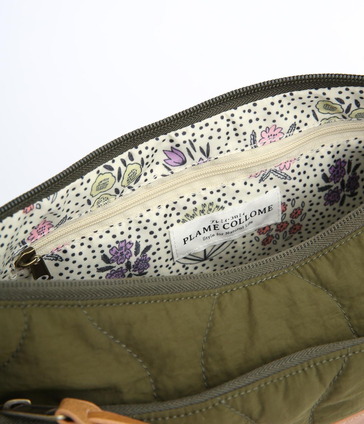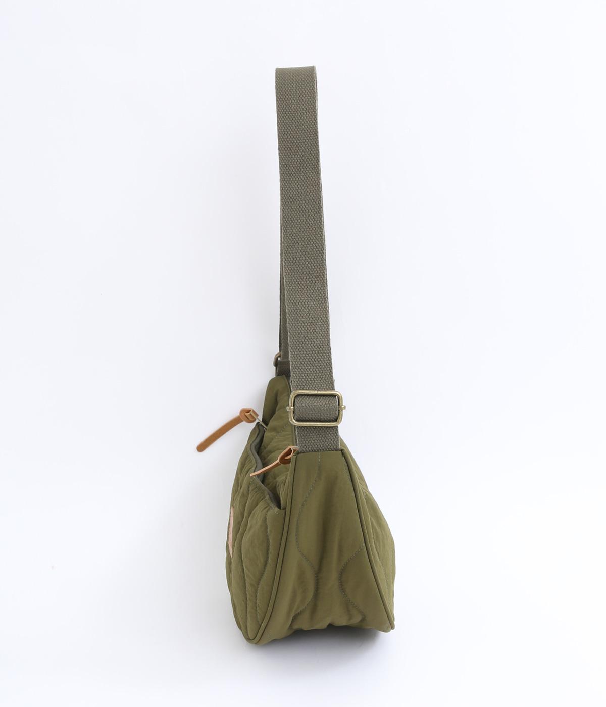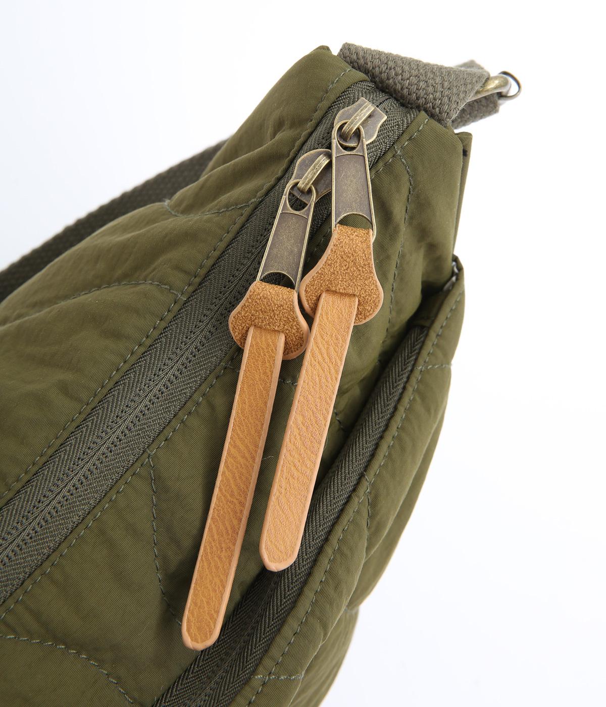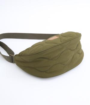 耐久性や形状保持に優れているポリエステル生地でタフに仕上げました。ひょうたん型のキルティング生地でさり気なく表情をつけています。