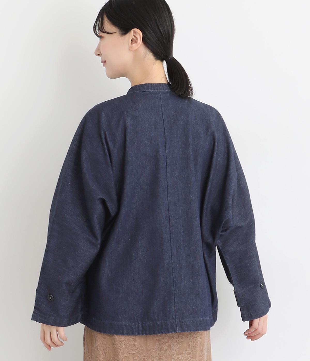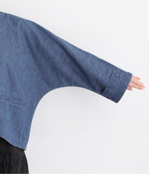 身頃つづきのゆったりとしたドルマンスリーブが特徴的なデニムジャケットです。独特なリラックスムードが漂い、カジュアルスタイルもやさしい印象にまとめます。着丈は前がやや短く後ろにむかって流れるようなシルエットも◎。