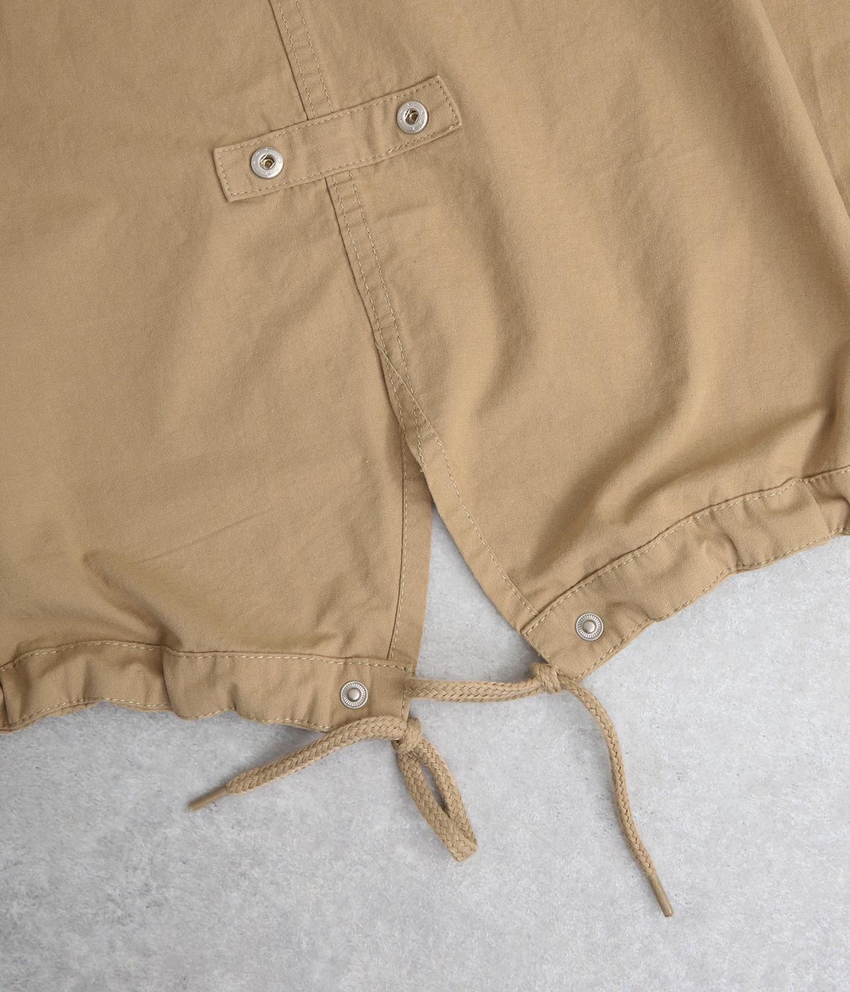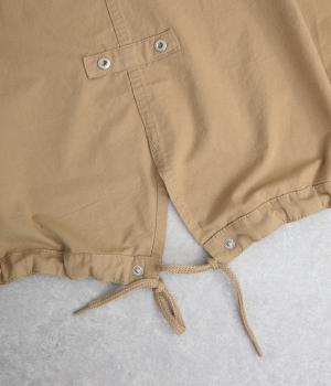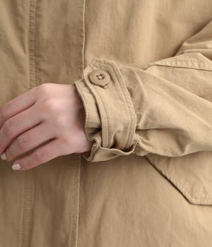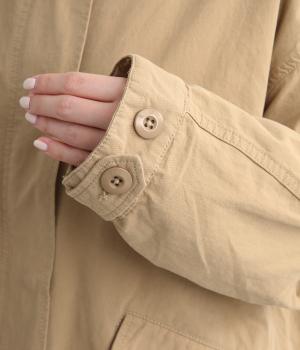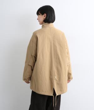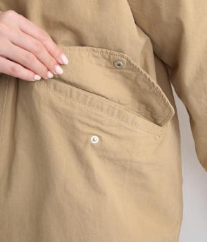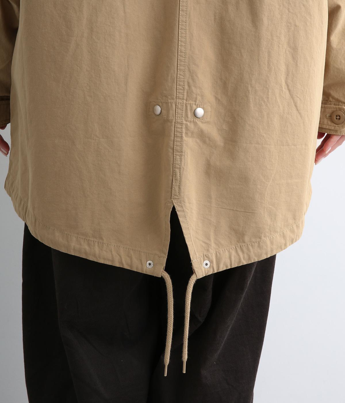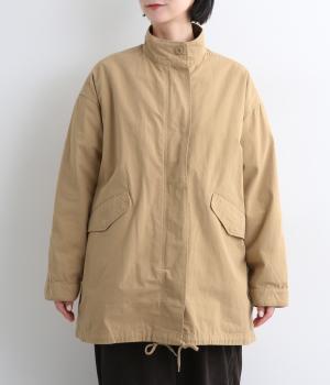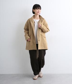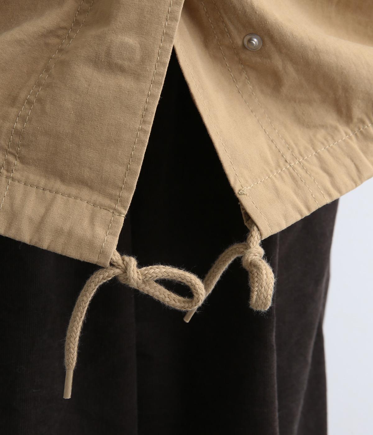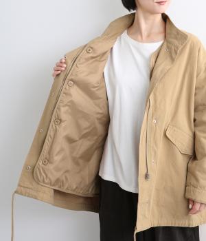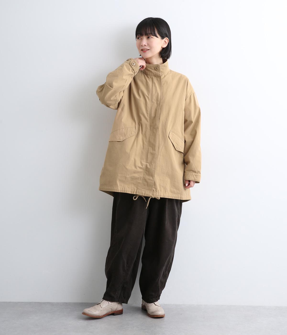 タフなコットン生地でミリタリーテイストに仕上げたミドルコートです。スタンドネックやフラップポケットでデザイン性を持たせ、裾コードでシルエットのアレンジも可能に。ライナーつきで防寒力も高く、ライナー単体で軽く羽織っても◎。