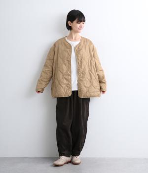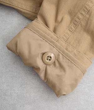 軽いシャリ感があり、しっかりとしたコットン生地で仕立て、ライナーのつけ外しでロングシーズン活躍します。ました。袖つきのライナーはポリエステルのキルティング生地で軽く、防寒性も◎。