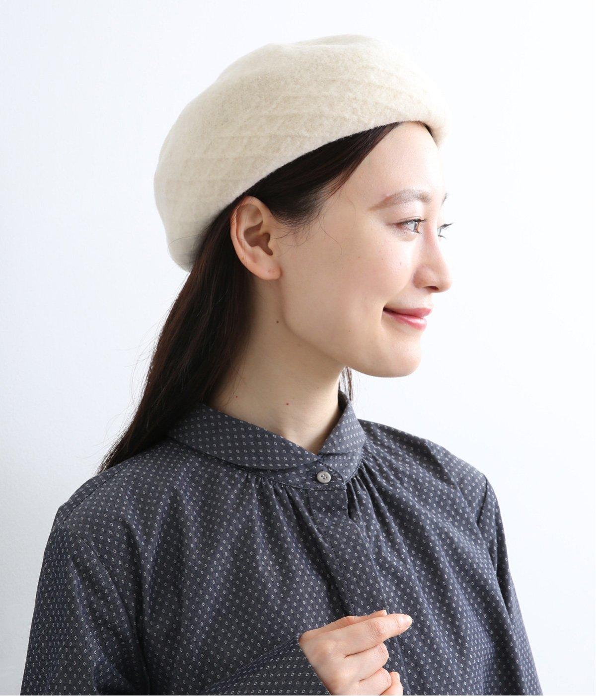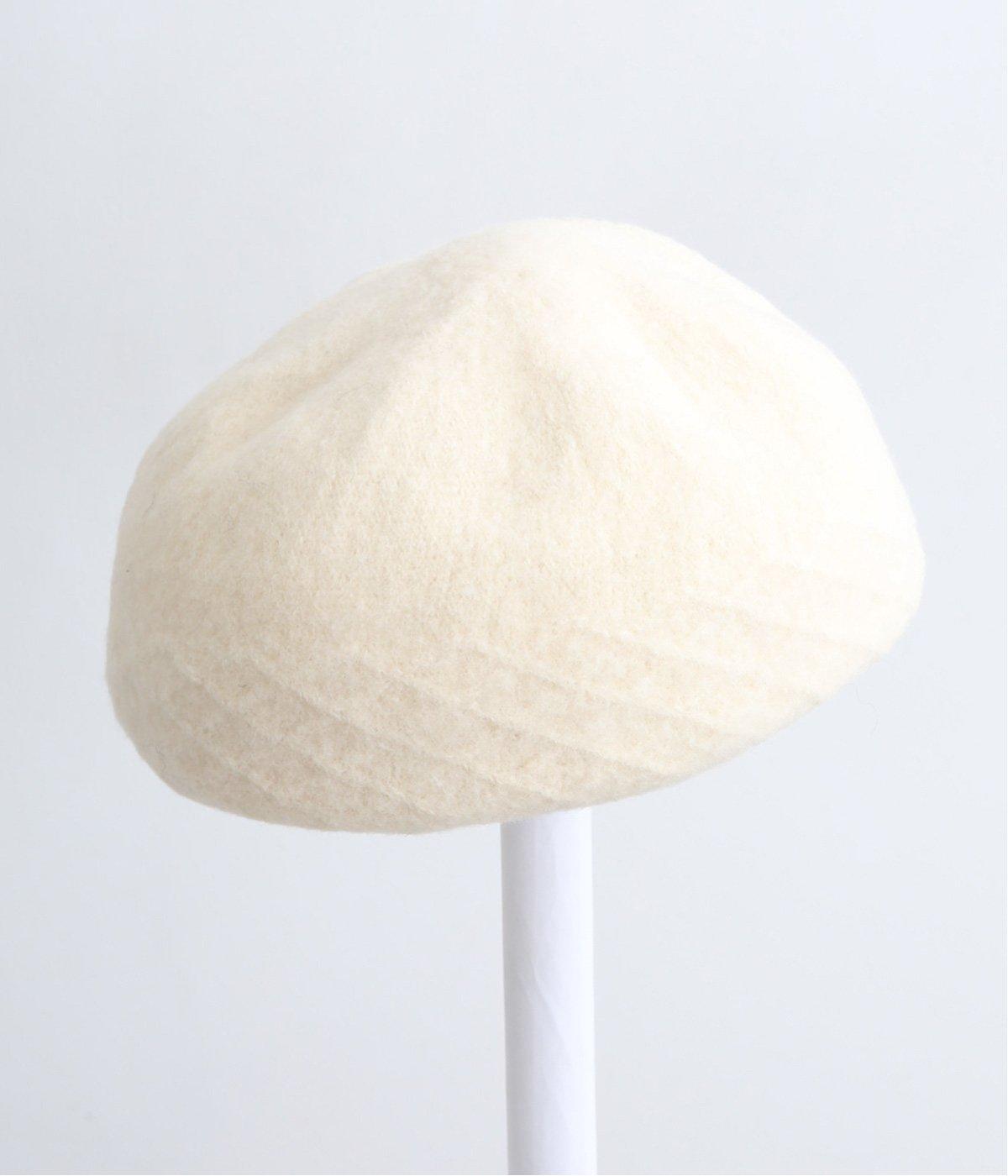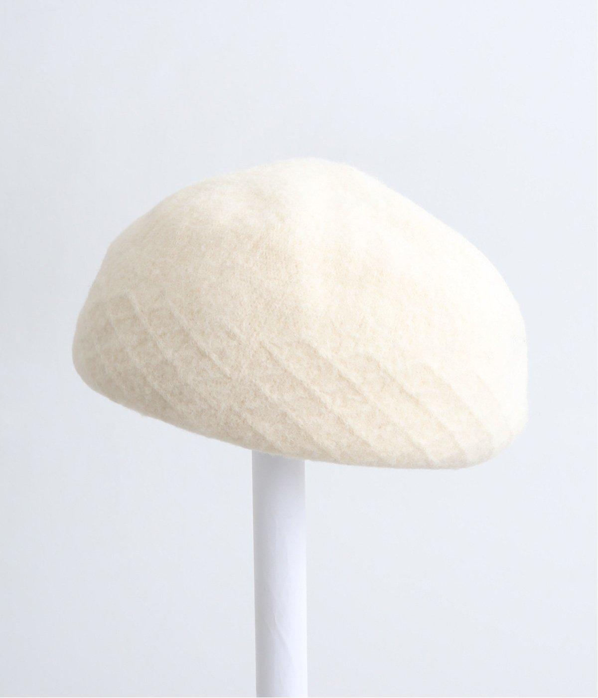 さり気なく編み立て柄を入れて表情をつけたベレー帽です。一見シンプルながらも見映えのいいデザインで、スタイリングにも取り入れやすく重宝します。やさしいカラーリングも魅力で、カジュアルからガーリーまで対応。
