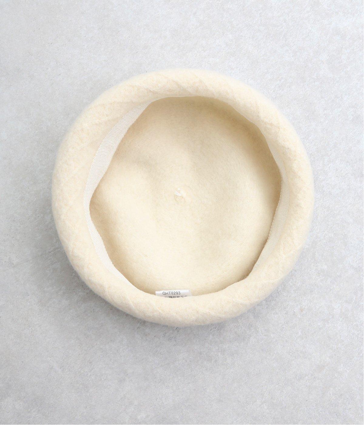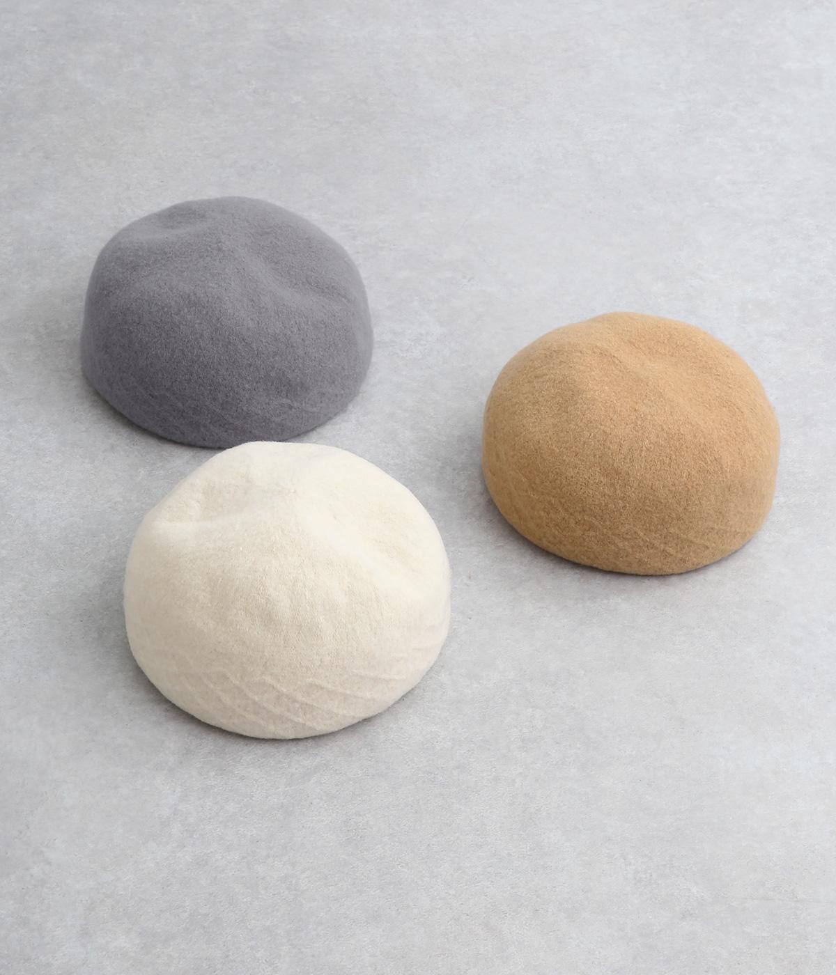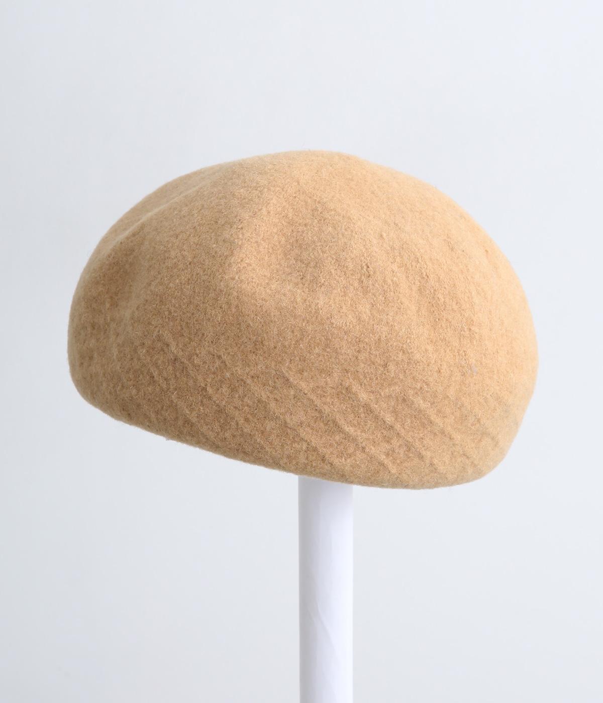 さり気なく編み立て柄を入れて表情をつけたベレー帽です。一見シンプルながらも見映えのいいデザインで、スタイリングにも取り入れやすく重宝します。やさしいカラーリングも魅力で、カジュアルからガーリーまで対応。