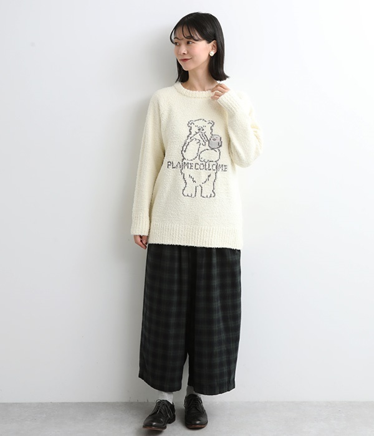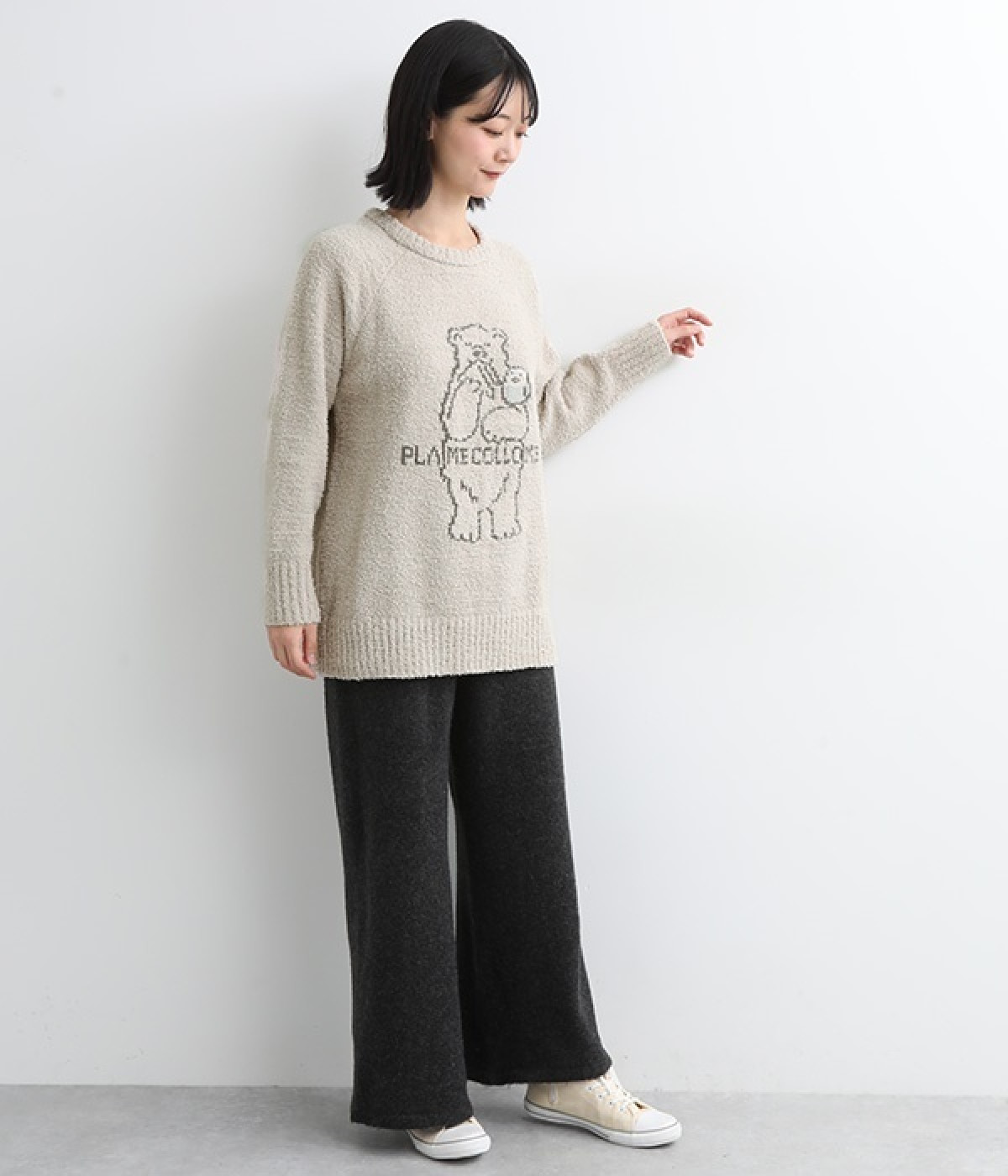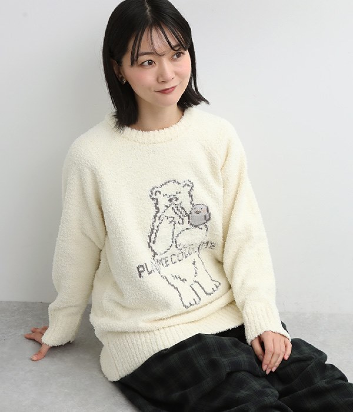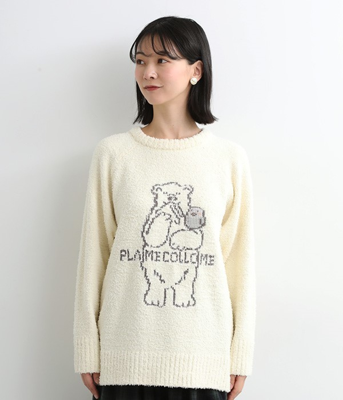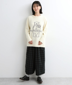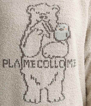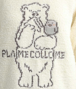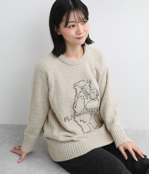 もこもこのモールニットで仕立てた、触り心地抜群のニットプルオーバー。くまのキャラクター「メルるん♪」にコトリが乗ったデザインがほっこりとした気分にしてくれます。モールニットがやさしく体をあたため、寒い季節のルームウェアに最適。肩が動かしやすいラグランスリーブでおやすみ時間も心地良く過ごせます。